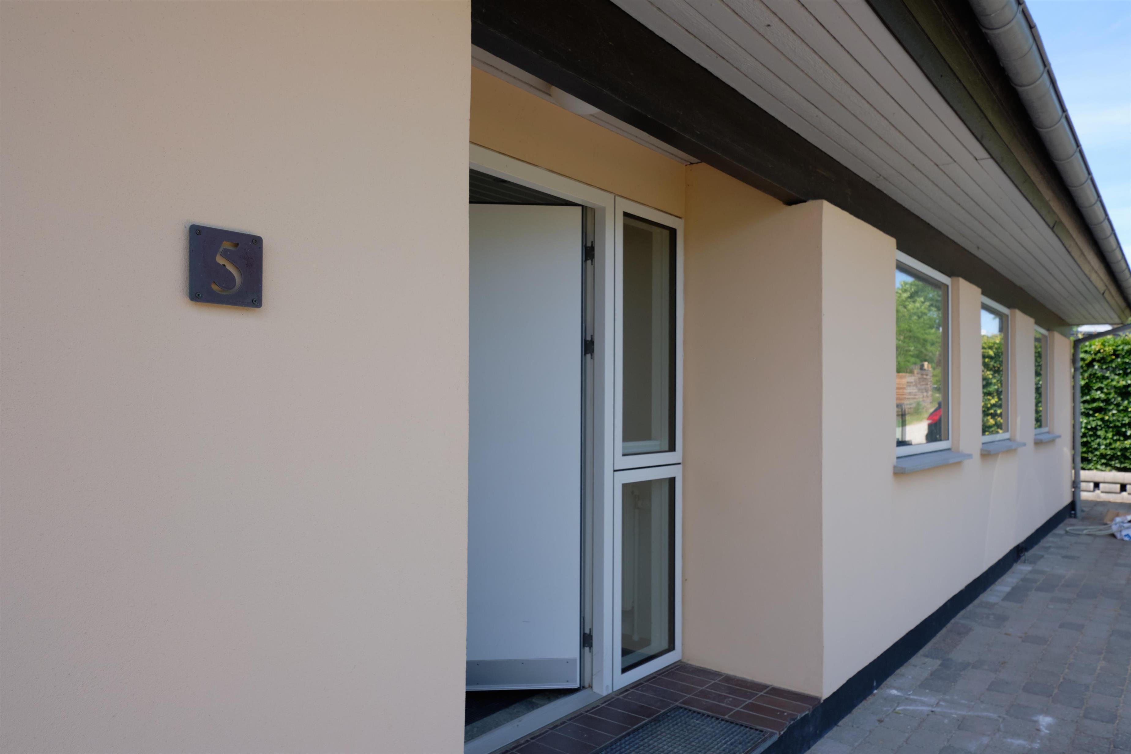 Both the spacious entrance hall and the living room and kitchen feature beautiful tiled floors, which, together with the décor, create an almost Mediterranean atmosphere. The large, bright living room, open to the kitchen, has panoramic windows and access to the terrace. It is furnished with cozy seating and a dining area for 12 people. The lovely new kitchen offers plenty of workspace, ceramic cooktops, a built-in oven, a large fridge/freezer, and a dishwasher. The house has 5 lovely bedrooms, 4 with wide double beds and 1 with two good bunk beds, offering a total of 12 sleeping spaces. The large, beautiful bathroom includes two sinks, a shower area, and a spa bath, as well as a guest toilet. Additionally, there is a utility room with a washing machine and dryer. Internet access is available.