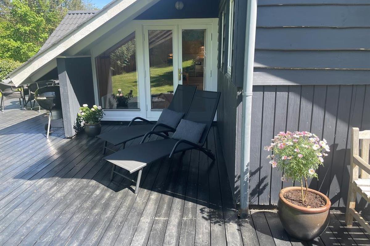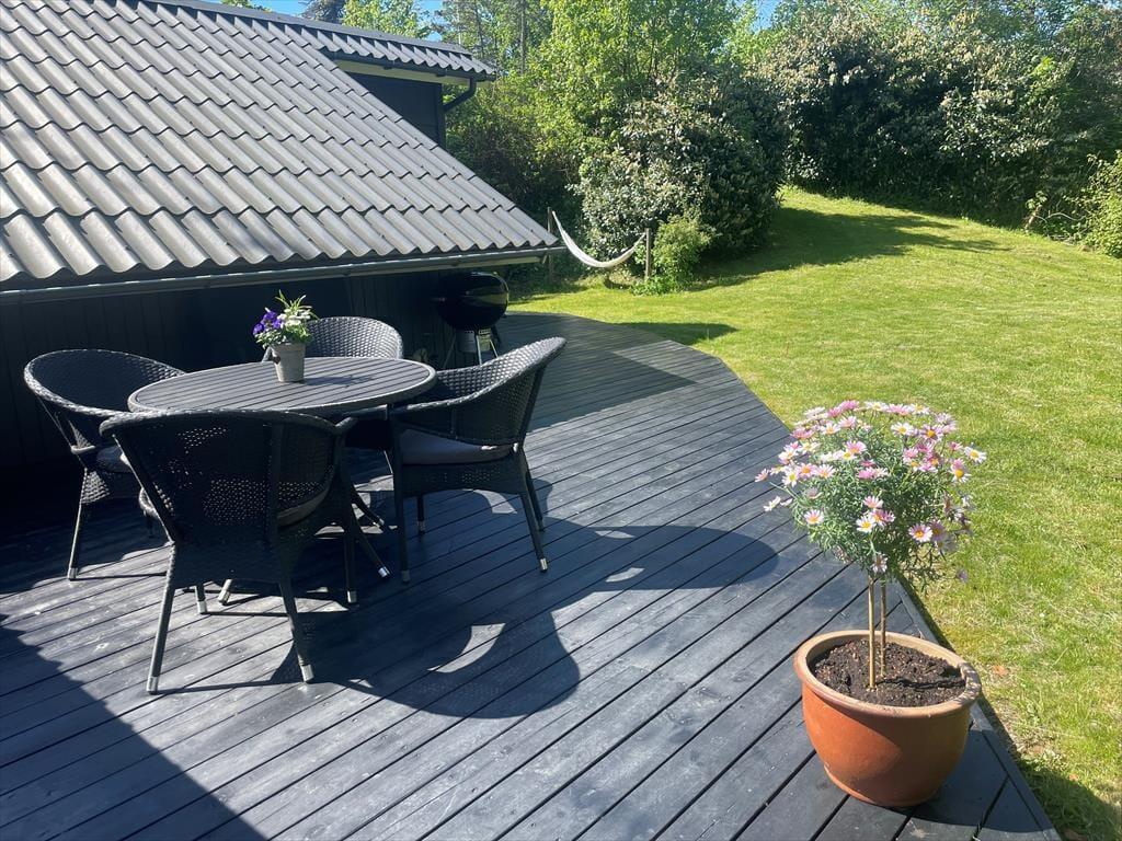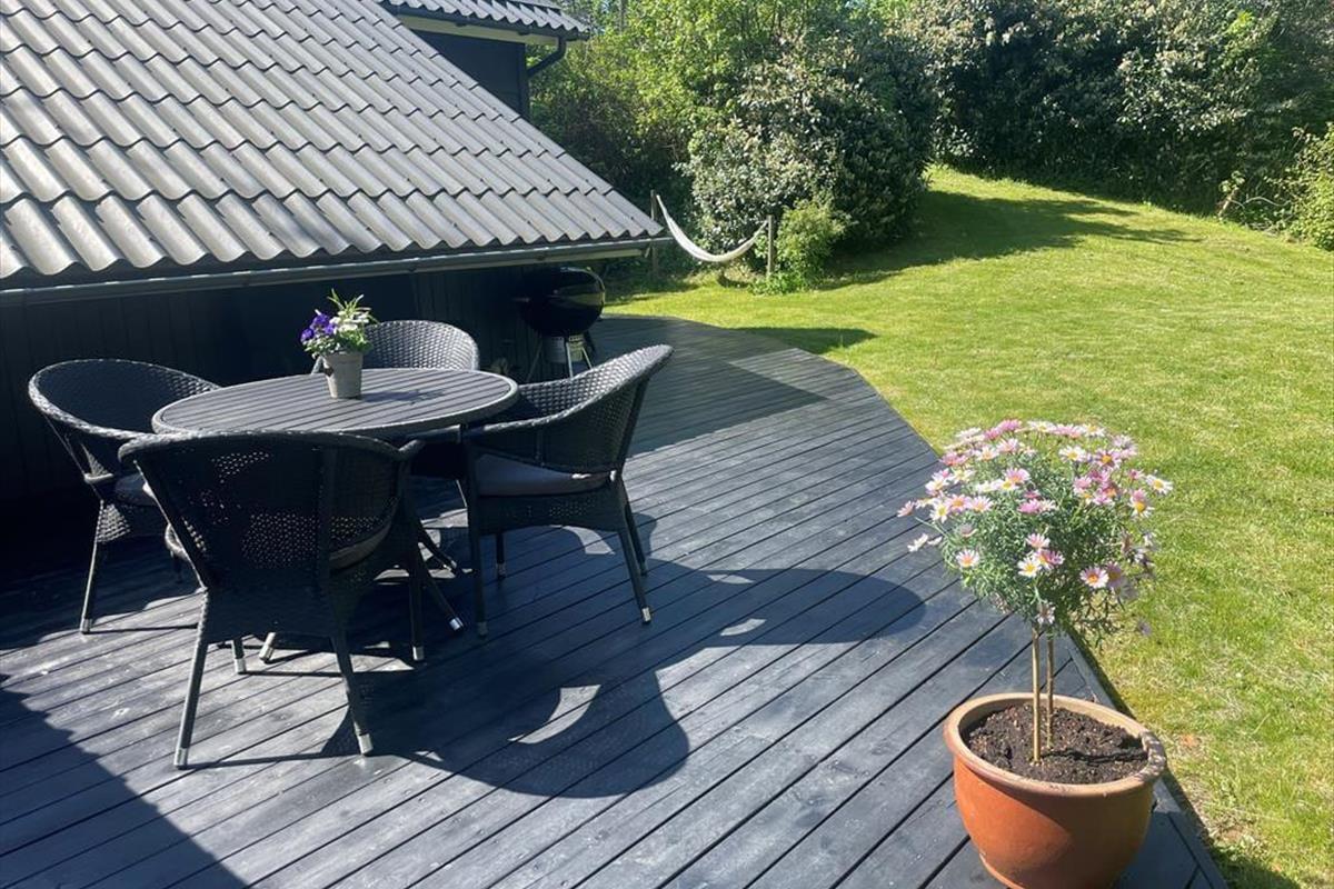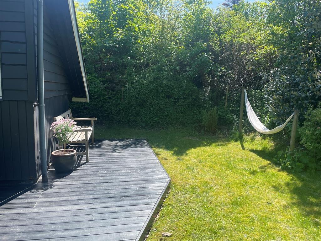 Dein Ferienhaus liegt auf einem großen umzäunten Naturgrundstück, das dir und deiner Familie viel Platz zum Spielen, Umhertollen und Entspannen bietet. Die Terrasse ist mit komfortablen Gartenmöbeln und einem Grill ausgestattet - perfekt für lange, stimmungsvolle Sommerabende unter freiem Himmel. Dank der Lage am Ende einer Sackgasse kannst du die Stille der Natur genießen. Nach nur fünf Minuten erreichst du zu Fuß den beliebten Wanderweg "Italienske Sti" und die spektakuläre Landschaft des Nationalparks "Mols Bjerge".