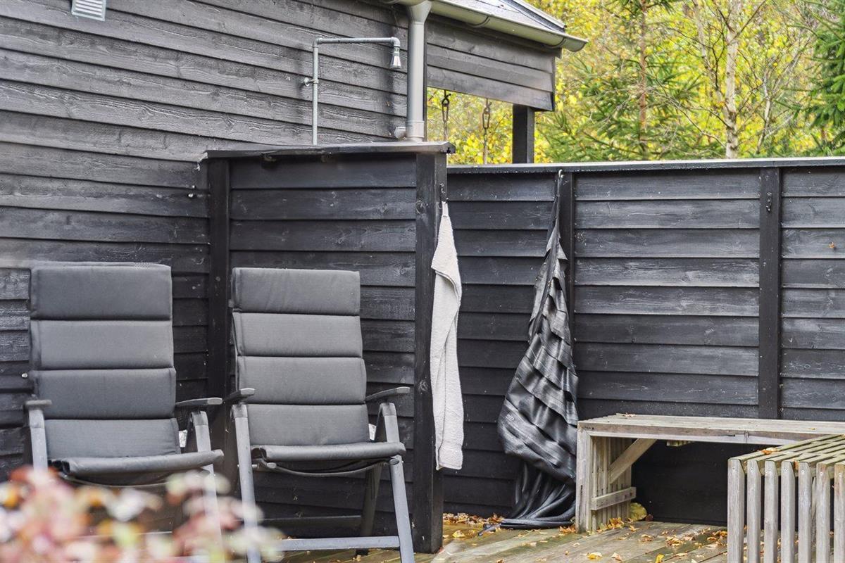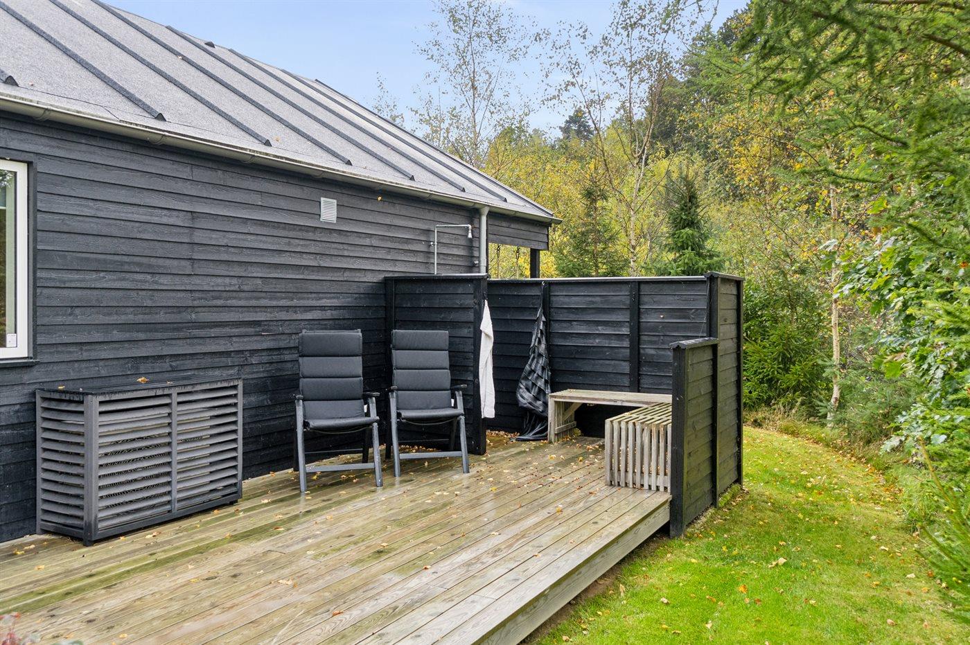 De vakantiewoning is gelegen op een 1700 m² groot natuural grond. Afstand tot de zee 2100 m. Dichtstbijzijnde winkel 3500 m. Bij de vakantiewoning hoort 35 m² terras. Daarnaast is er een 15 m² groot overdekt terras. Gereedschapsruimte. Schommel. Buitendouche. Barbecue. Het huis heeft een stopcontact voor het opladen van een elektrische auto. Oplaadstekker type 2. Met 11 kW-laadvermogen. Parkeerplaats bij het huis.