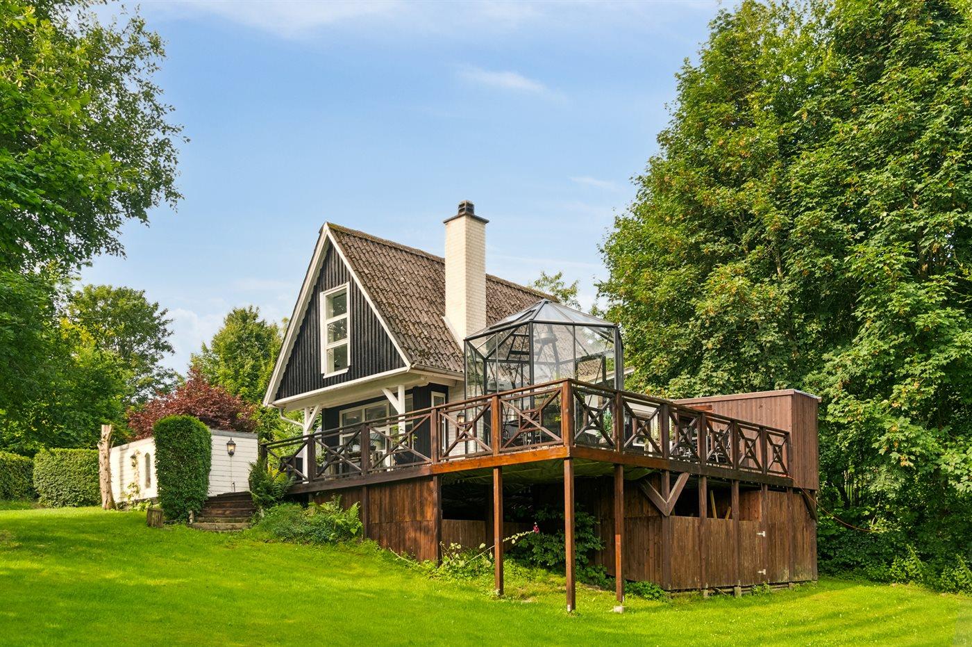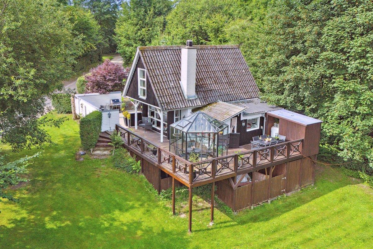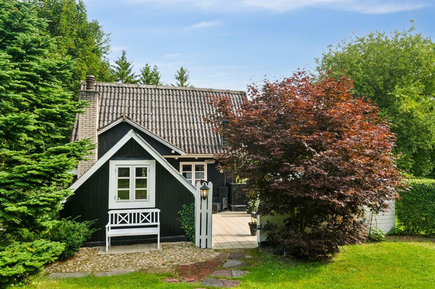 Comfortabel vakantiehuis met 2 slaapkamers, houtkachel en overdekt terras in Ebeltoft, Denemarken.