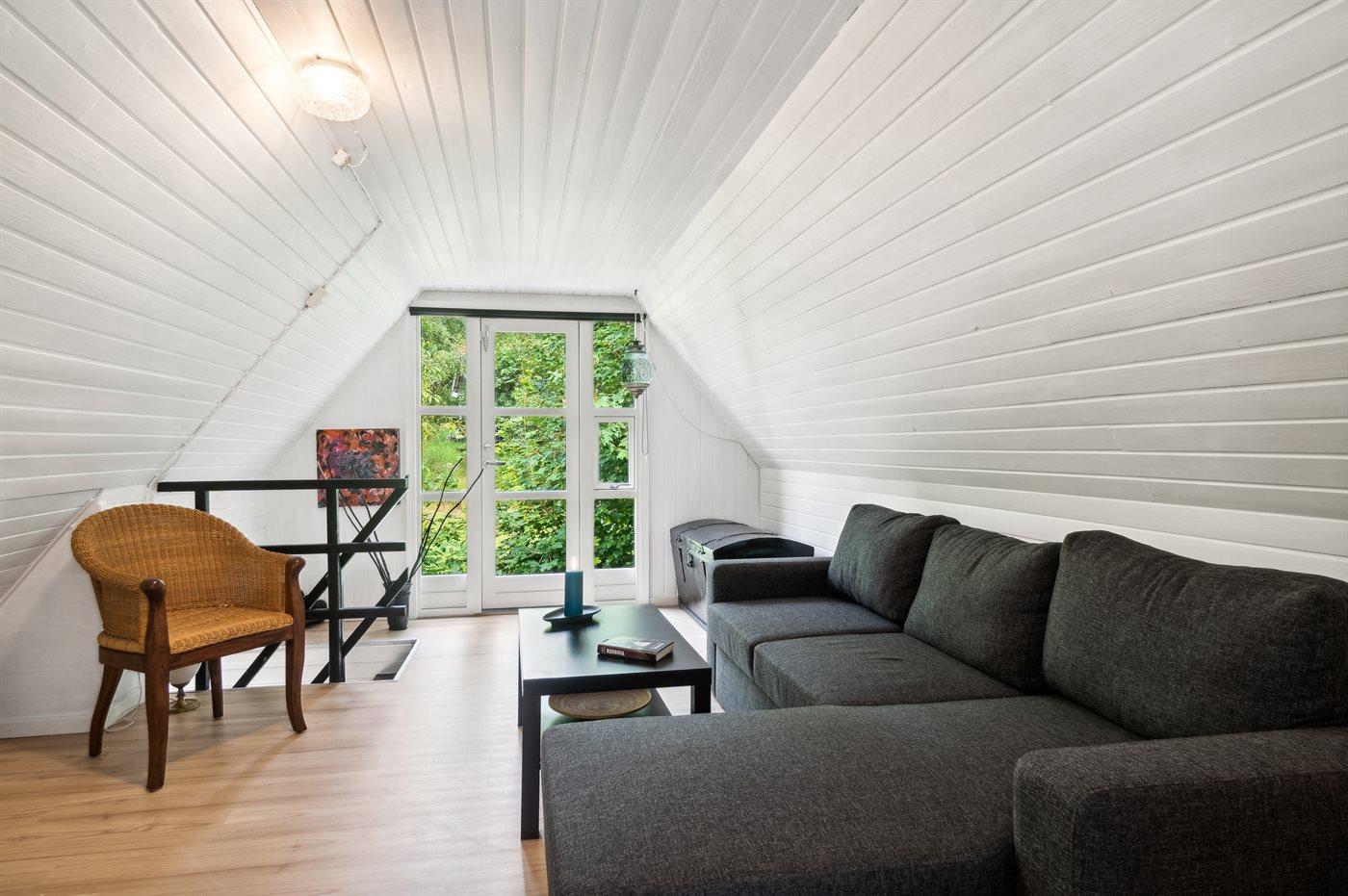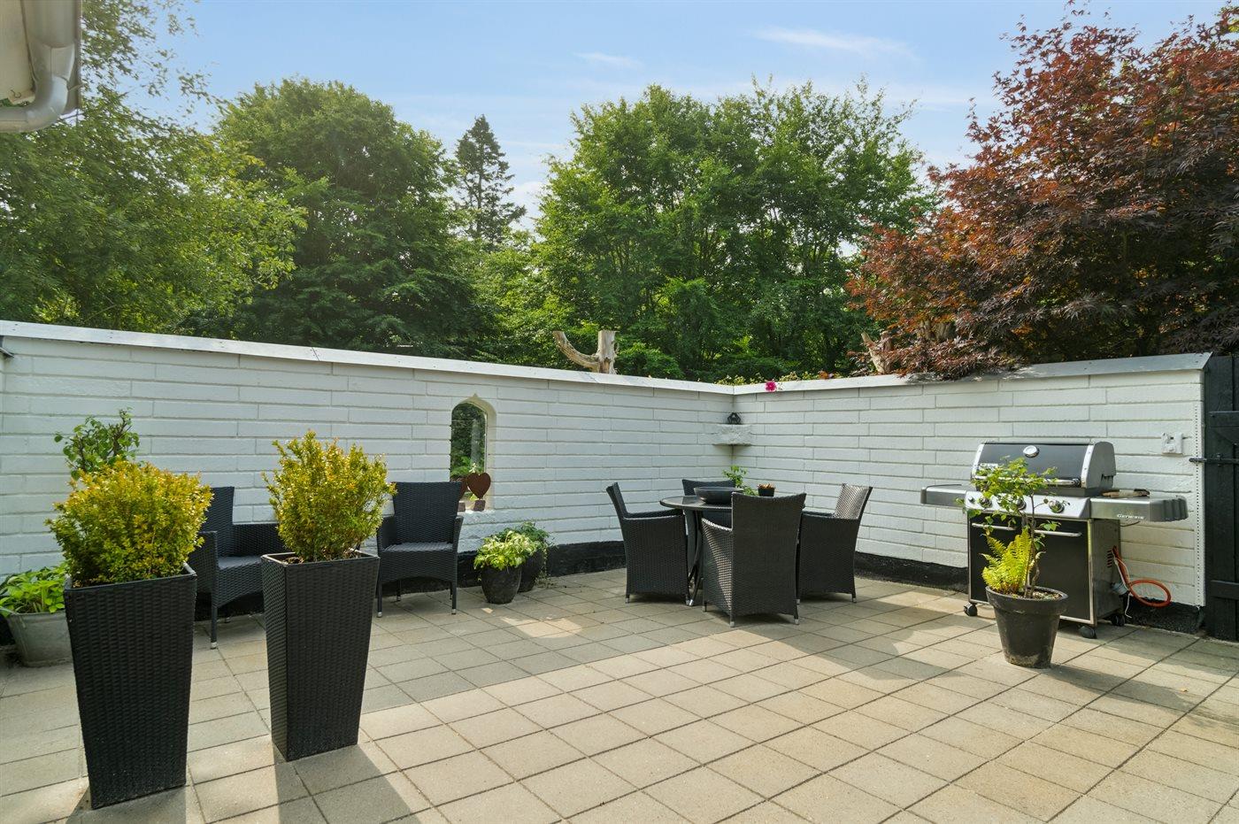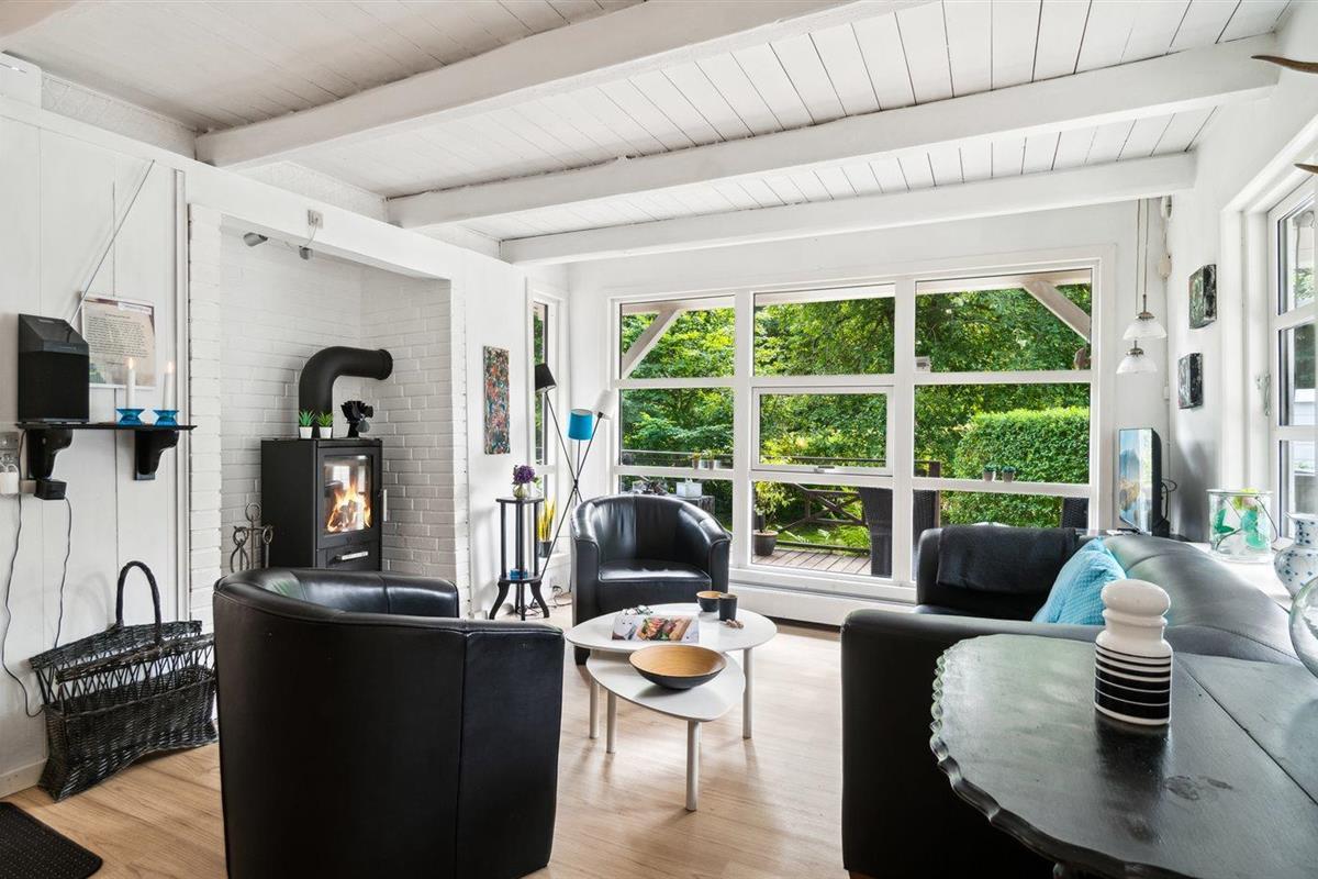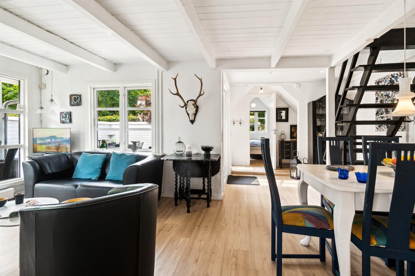 Comfortabel vakantiehuis met 2 slaapkamers, houtkachel en overdekt terras in Ebeltoft, Denemarken.