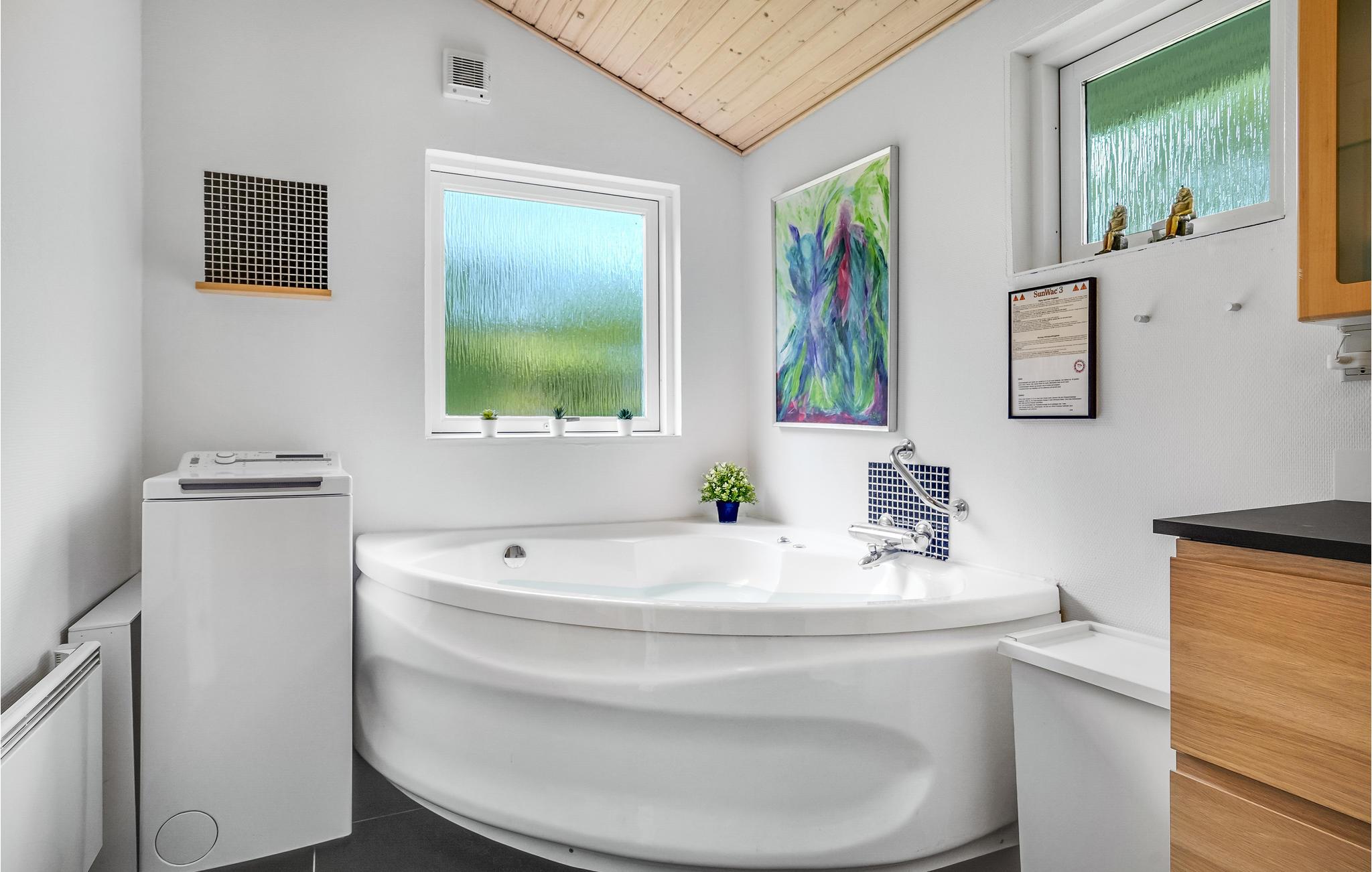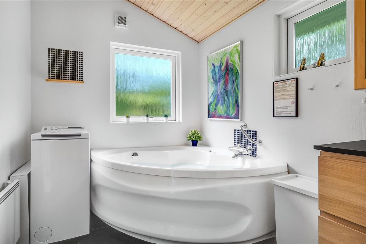 Het hart van het huis is de prachtige woonkamer met open keuken, eethoek en zithoek, waar je heerlijke momenten kunt doorbrengen met familie of vrienden. De grote ramen laten veel daglicht binnen en de alkoof is een gezellige plek om te dutten of te lezen. Je hebt ook drie slaapkamers en een badkamer tot je beschikking. Zowel de whirlpool in het huis als het Finse houten bad op het terras bieden ontspanning na een actieve vakantiedag.