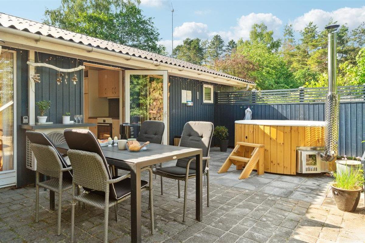 De omgeving van het huis is een prachtig natuurgebied met gemengde bossen en ligt dicht bij het Nationaal Park Mols Bjerge. Het dichtstbijzijnde strand ligt op 3 km van het huis. Bezoek ook het charmante Ebeltoft, waar je kunt wandelen langs mooie geplaveide straatjes en het fregat Jylland kunt bewonderen.