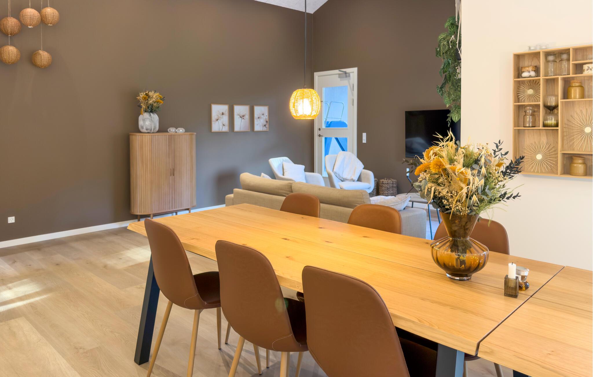 Dit huis verwelkomt je met een combinatie van helder design, subtiele kleuren en modern meubilair. Hier vind je een plek waar je tot rust kunt komen en ontspannen dagen kunt doorbrengen, of je nu een leuke spelletjesavond hebt, een podcast streamt of geniet van uren speelplezier in het zoutwaterzwembad.