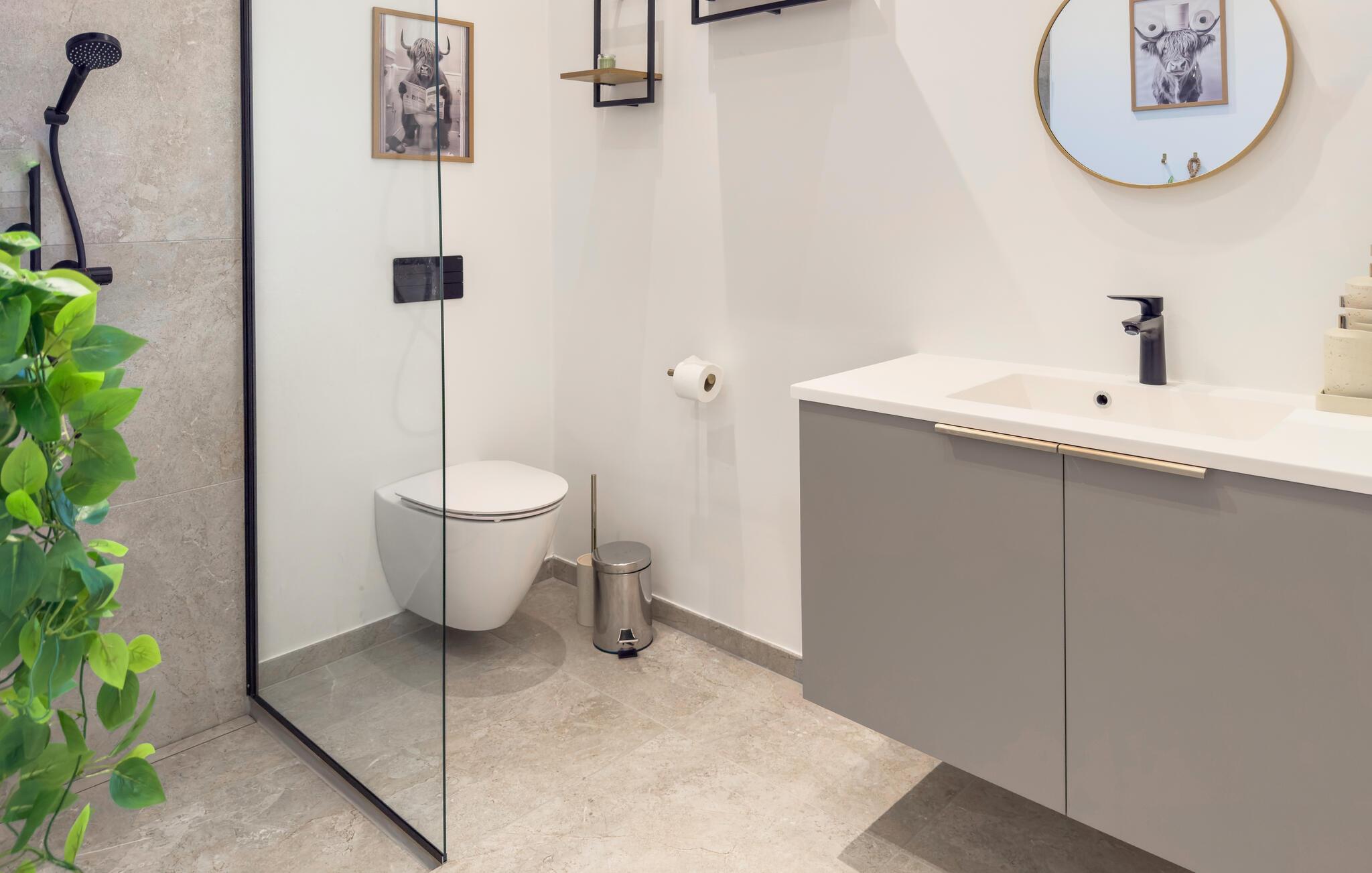 Badkamer (nr. 1) - Toilet: warm en koud water. Douche