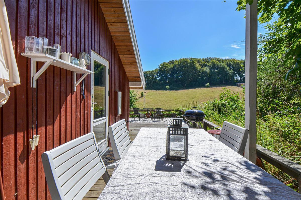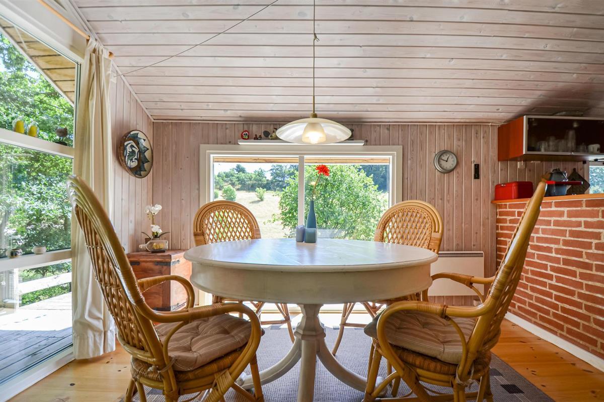 De woning, die op een helling ligt, is een beplant, natuurlijk gebied. Het huis wordt daarom niet aanbevolen voor mensen die slecht ter been zijn. Het is het meest geschikt voor een stel of een klein gezin die de voorkeur geven aan een rustige omgeving voor hun vakantie. Hier heeft u veel mogelijkheden om te wandelen en te joggen. U bent ook dicht bij de ingang van het Nationaal Park Mols Bjerge. De inrichting van het huis is erg mooi en gezellig. Grote slaapkamers. Geniet hier van de rust en het feit dat u Ebeltoft in slechts 10 minuten met de auto kunt bereiken.