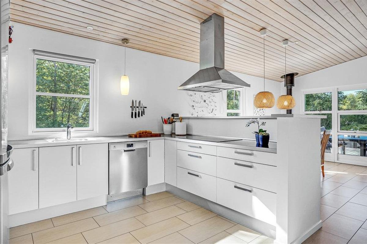 Prachtig gelegen vakantiehuis op een groot natuurgrondstuk. Het heeft vier goede slaapkamers, een badkamer en een gastentoilet, waardoor er voldoende ruimte is voor zowel één als twee gezinnen. Het huis is zeer modern, licht en heeft een goed uitgeruste keuken. Door de goede isolatie kunt u hier bij elk weer en op elk moment van het jaar een fijne vakantie doorbrengen. Het gebied aan de voet van de 'Mols Bjerge' biedt prachtige natuur met veel bos, gevarieerd terrein en open plekken die zeer geschikt zijn om te wandelen. Het strand en de stad Ebeltoft liggen op slechts 5-10 minuten rijden van het huis.