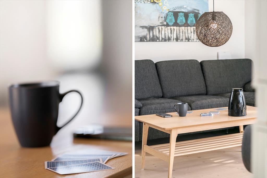 Step inside to a modern and inviting interior where cosiness and functionality go hand in hand. The colour palette and materials have been carefully chosen to create a warm and welcoming atmosphere, making it easy to unwind and feel at home. The open-plan living space brings together the kitchen and living room, forming a natural hub for everything from shared cooking and board games to movie nights and long conversations around the dining table. Subtle decorative touches give the house character, and the smart layout makes it easy to enjoy time together – whether you're travelling as a family, with friends, or as a couple. There's room for both togetherness and peaceful moments, and the overall vibe invites you to slow down and enjoy the present.
