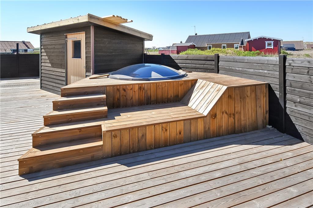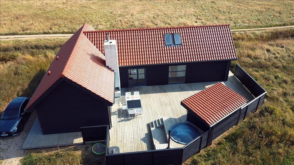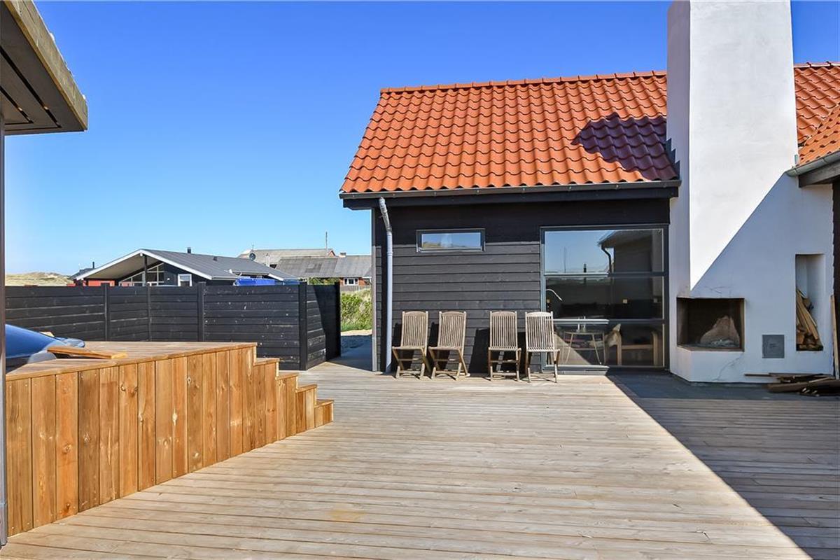 Outdoor living at Stranden 20 is in a league of its own. The 200 m² wooden terrace feels like an extra living room under the open sky and offers everything you could wish for in an outdoor holiday setting. Start your day with coffee in the morning sun, light the outdoor fireplace when evening falls – and sink into the warm wilderness hot tub as the stars appear above Ferring Strand. The surrounding nature and nearby dunes provide both views and shelter, making the terrace an ideal spot for meals, relaxation and time together. Children have plenty of space to play, and with such generous outdoor space, life in shorts and bare feet from morning till night feels completely natural.