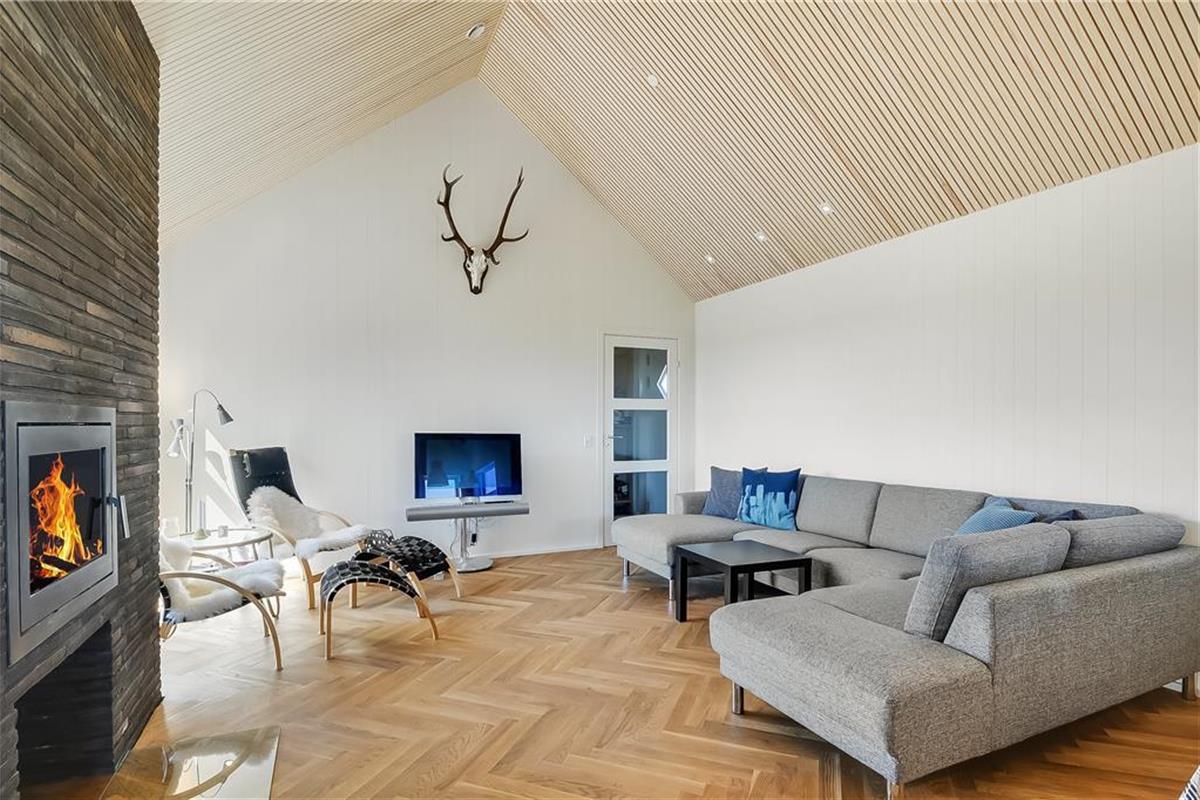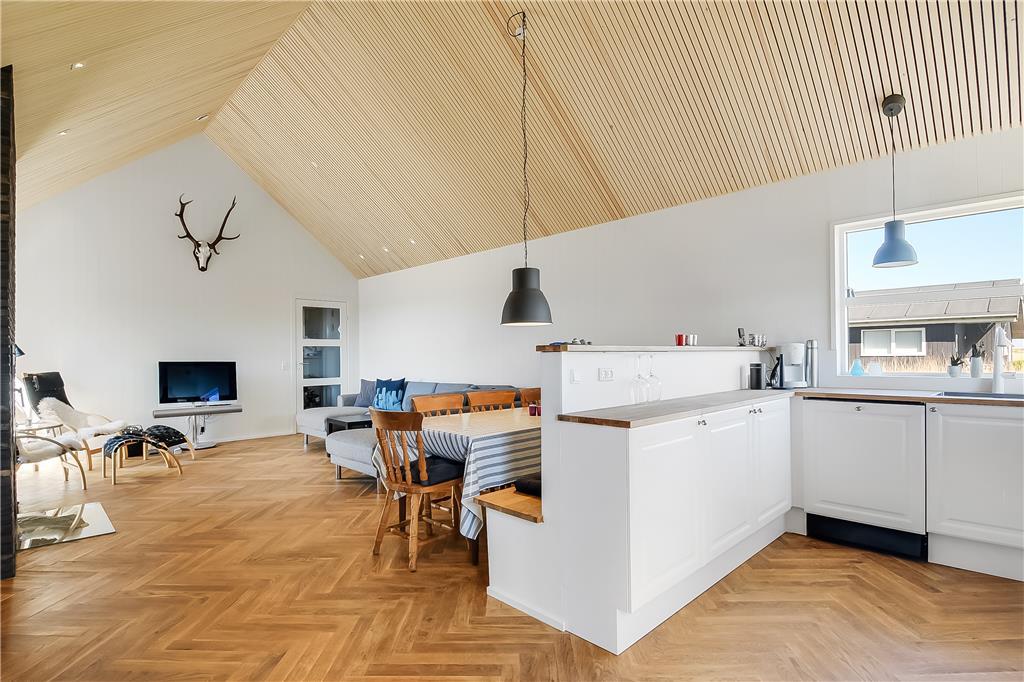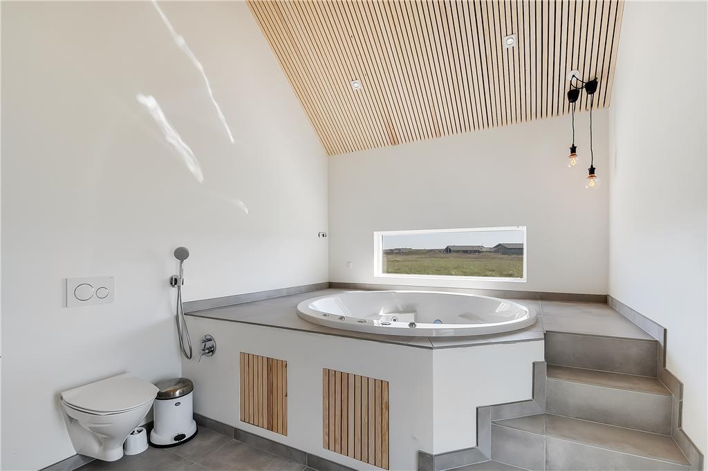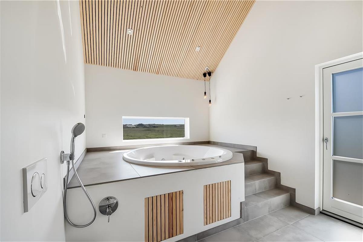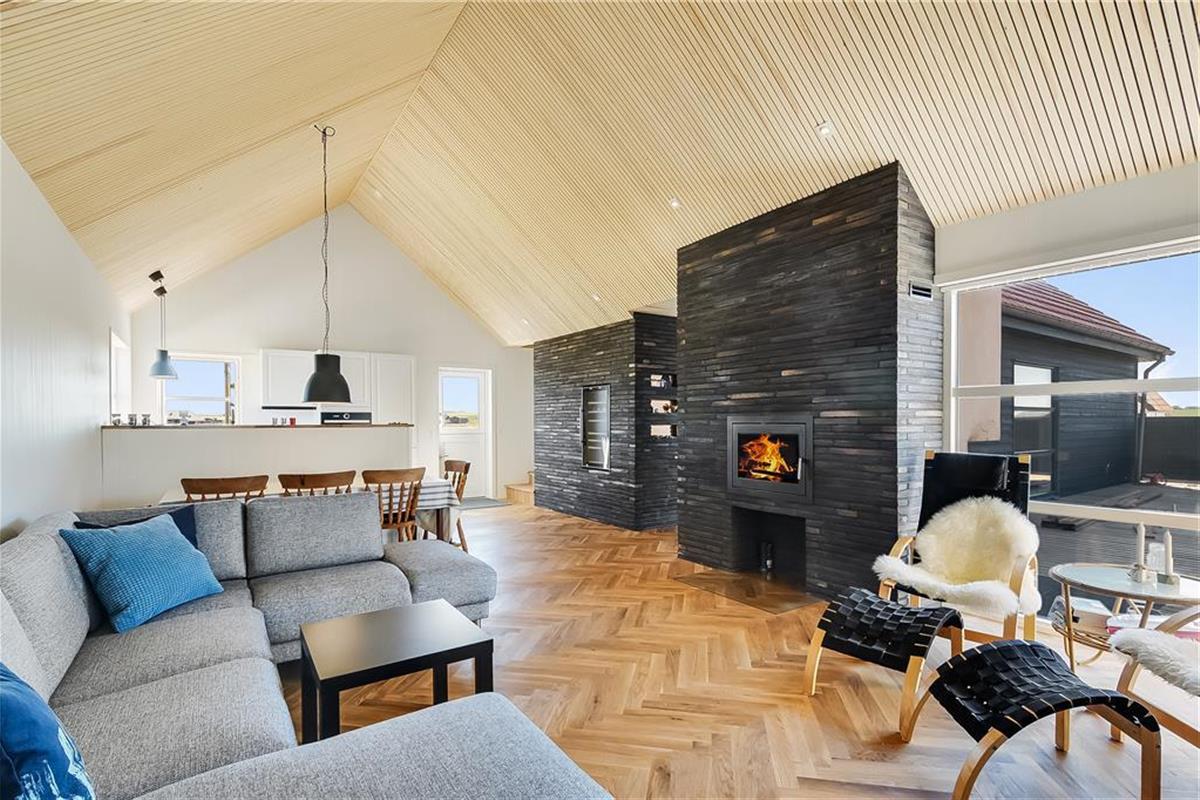 If your holiday calls for both luxury and scenic surroundings, the holiday home at Stranden 20 in Ferring Strand is the perfect choice. Here, you’ll be staying close to both the roaring North Sea and the tranquil Ferring Lake – and inside, a stylish holiday home awaits, where every detail has been carefully considered and high-end materials like herringbone parquet flooring and elegant ceiling mouldings set the tone. Whether you're seeking wellness in the indoor spa, relaxation in front of the fireplace, or long evenings on the expansive terrace with a wilderness hot tub and outdoor fireplace, this is a place where calm and indulgence go hand in hand.