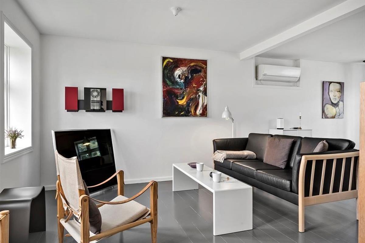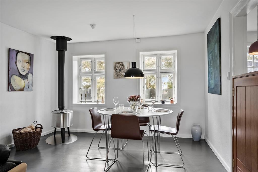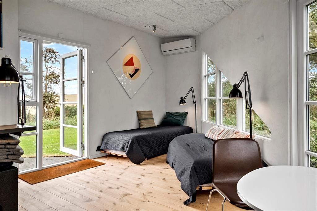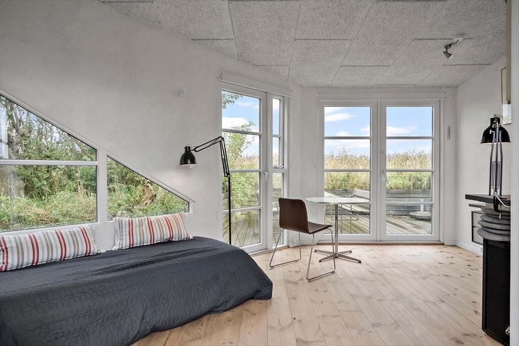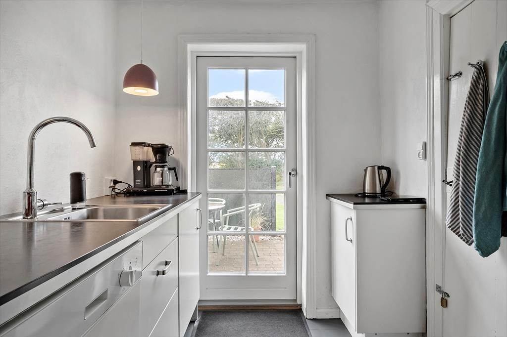 The holiday home was renovated in 2021 and offers a bright and friendly atmosphere with everything you need for a relaxing holiday. You’ll find an open and connected living and kitchen area, where the windows invite natural light and the landscape inside. The wood-burning stove adds warmth and cosiness on cooler evenings – perfect for quiet moments with tea and a blanket on the sofa. If you're bringing guests or just want a bit of extra privacy, the annex is a real asset. It features its own small bathroom and a modern heat pump to ensure year-round comfort. There’s room here for both connection and peace.