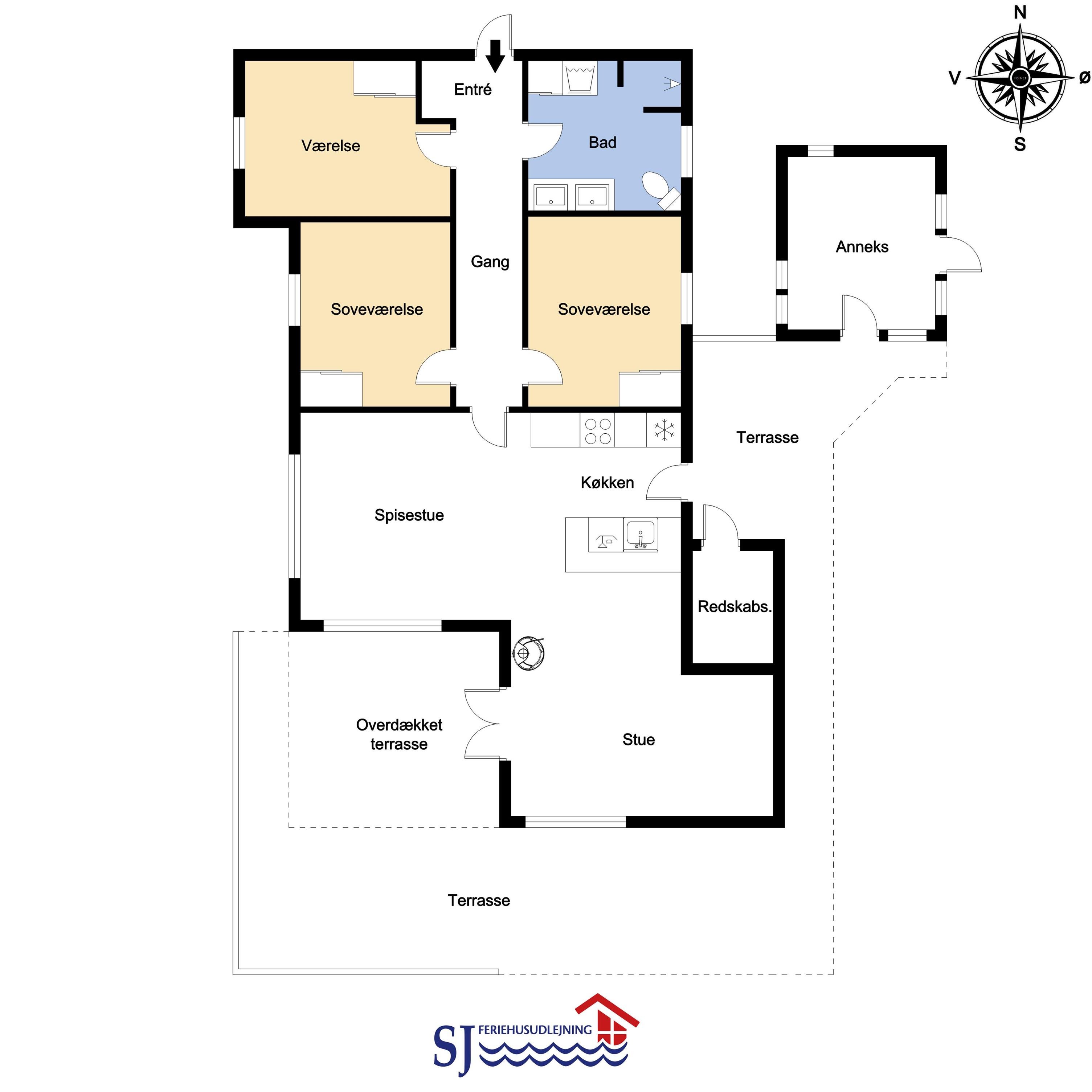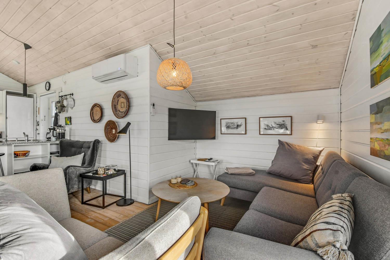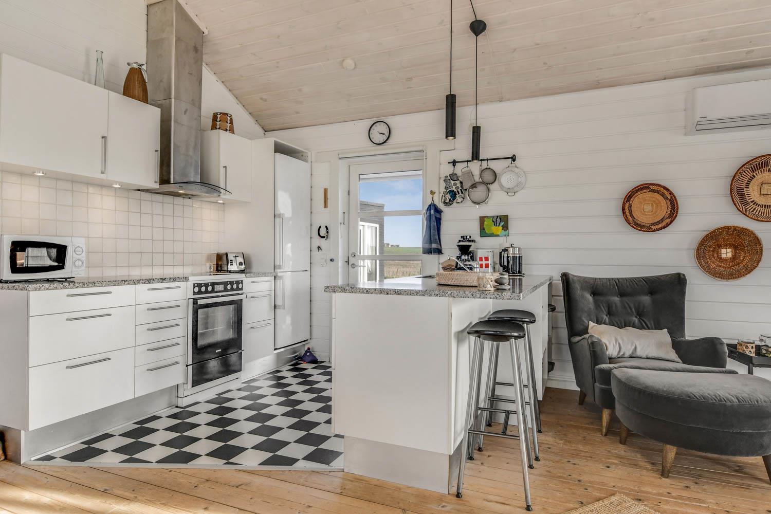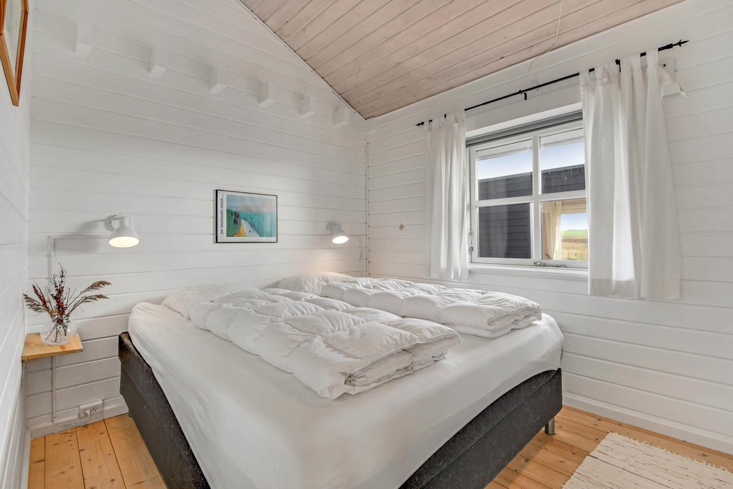 Gut und sehr gemütlich eingerichtetes ganzjähriges Ferienhaus aus Holz und sehr gut isoliert. Das Haus ist hell und einladend eingerichtet mit große Fensterpartien mit gutem Blick zu den Dünen und dem Ferring See mit seiner reichen Vogelwelt. Wohnzimmer und Küche sind kombiniert; es gibt einen großzügigen gemütlichen Raum wo Freunde oder Familien die Urlaubszeit zusammen genießen können. Im Wohnraum gibt es einen Kaminofen und eine Wärmepumpe, die beide für eine gemütliche Wärme sorgen und außerdem auch dabei helfen die Nebenkosten niedriger zu halten. Es gibt F-TV mit Parabol und Sie können deutsche und eine begrenze Anzahl dänischer Programme sehen. Außerdem gibt es einen DVD-Player und freies WLAN. Chromecast kann mitgebracht werden. Schöne helle sehr gut ausgestattete Küche mit Ceranfeld-Kochplatte, Abzugshaube, Kühl-/Gefrierschrank, Geschirrspüler und Mikrowelle. Das Haus hat 3 Schlafräume: 1DB + 1DB + 2B. Badezimmer: Toilette, Dusche, 2 Waschbecken, Fußbodenheizung und Waschmaschine und Trockner. Für die kleinsten Gäste gibt es Kinderbett und Kinderstuhl. Im Wohnraum, Flur und den Schlafräumen gibt es Holzböden. Elektroauto oder einen Plug-in-Hybrid haben, verfügt das Haus über eine Ladegerät, Type 2 die bis zu 11 kWh aufladen kann. 1 Haustier ist erlaubt. Nichtraucher-Haus.