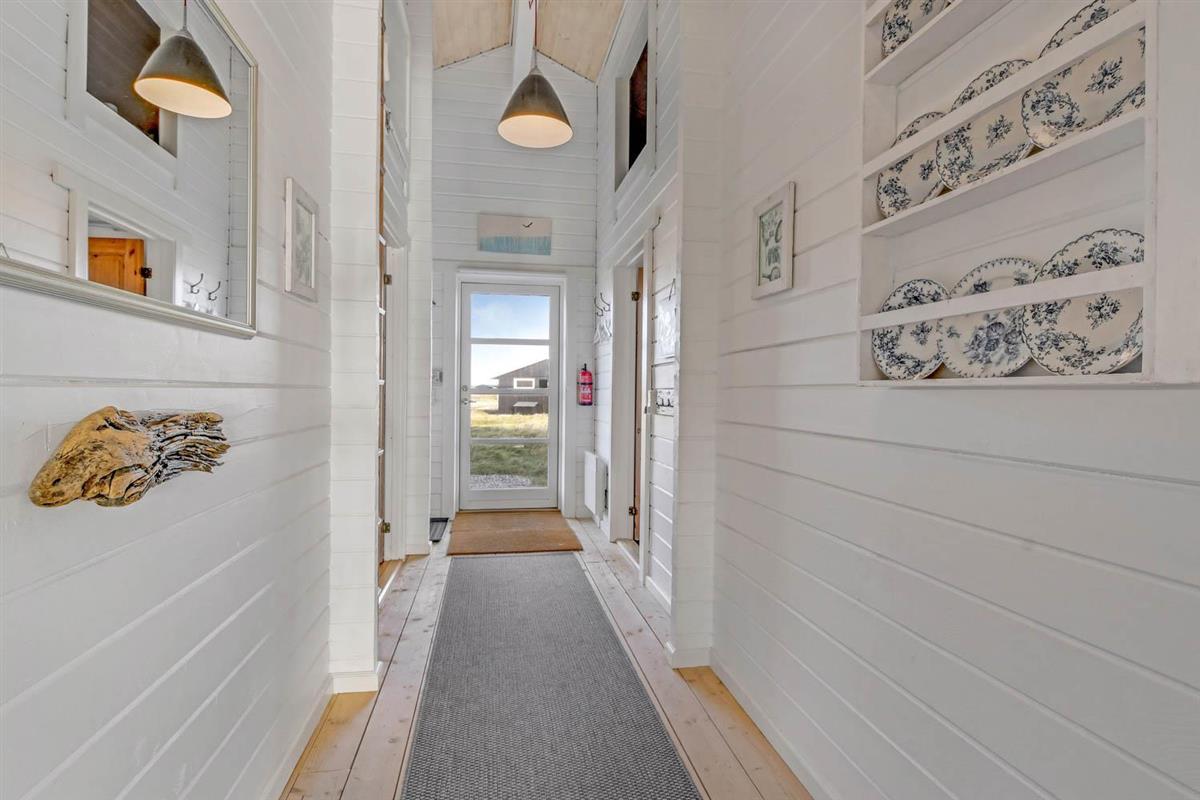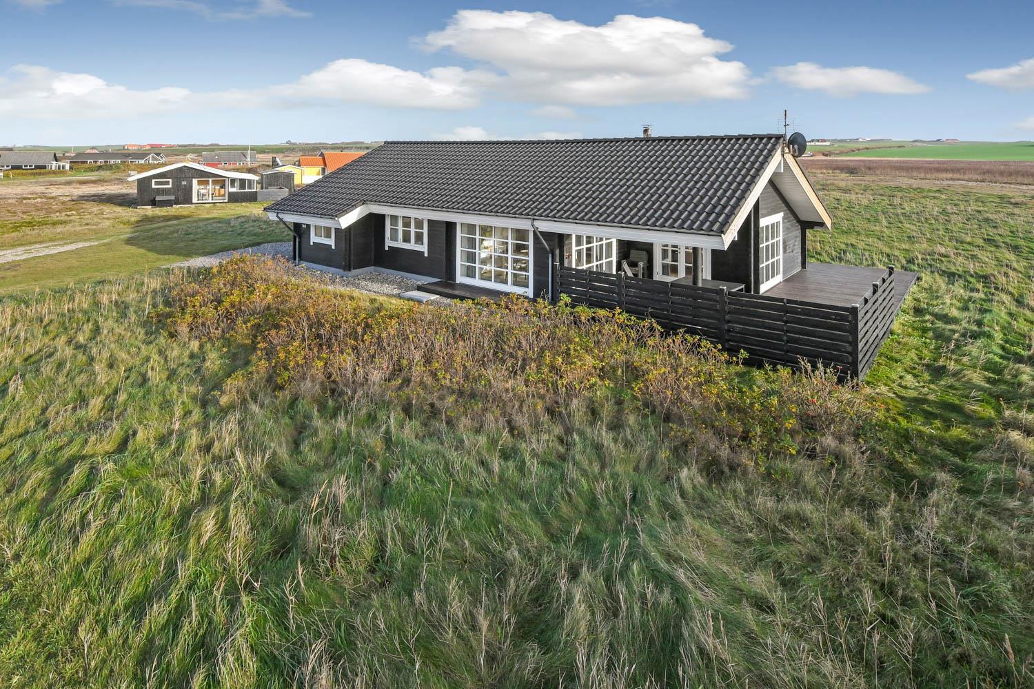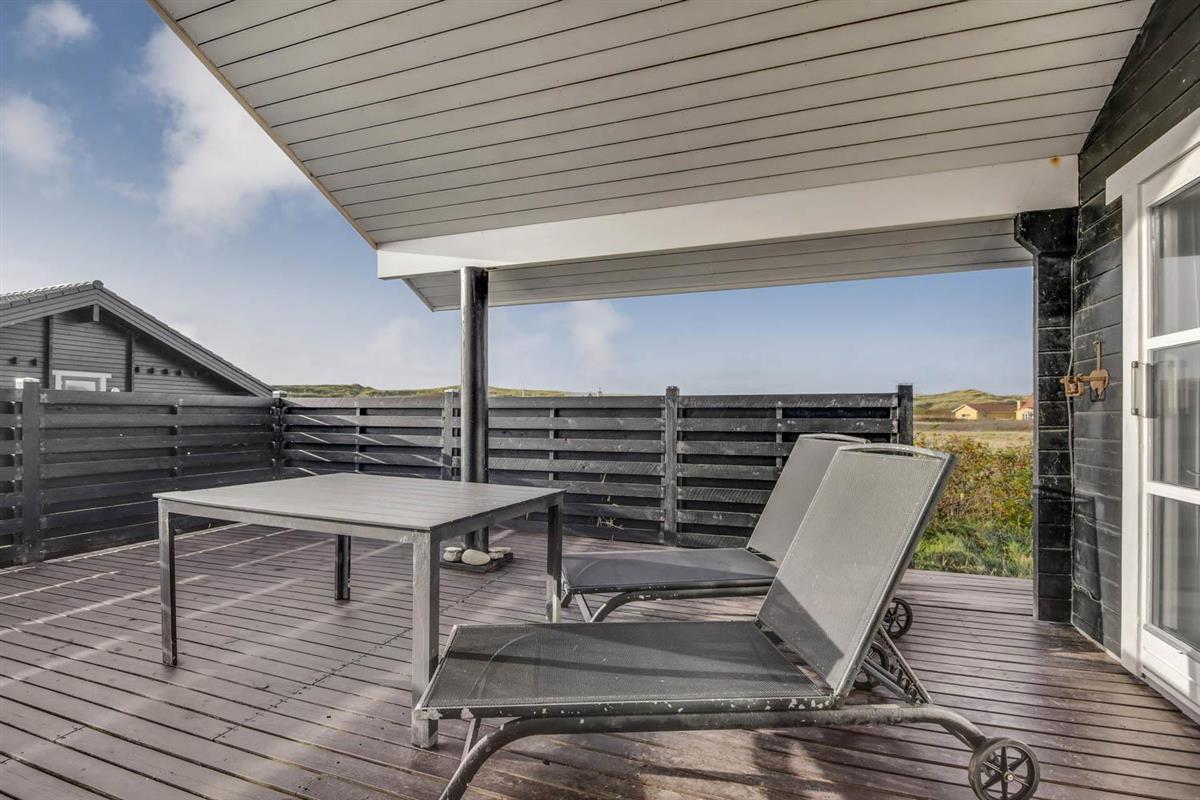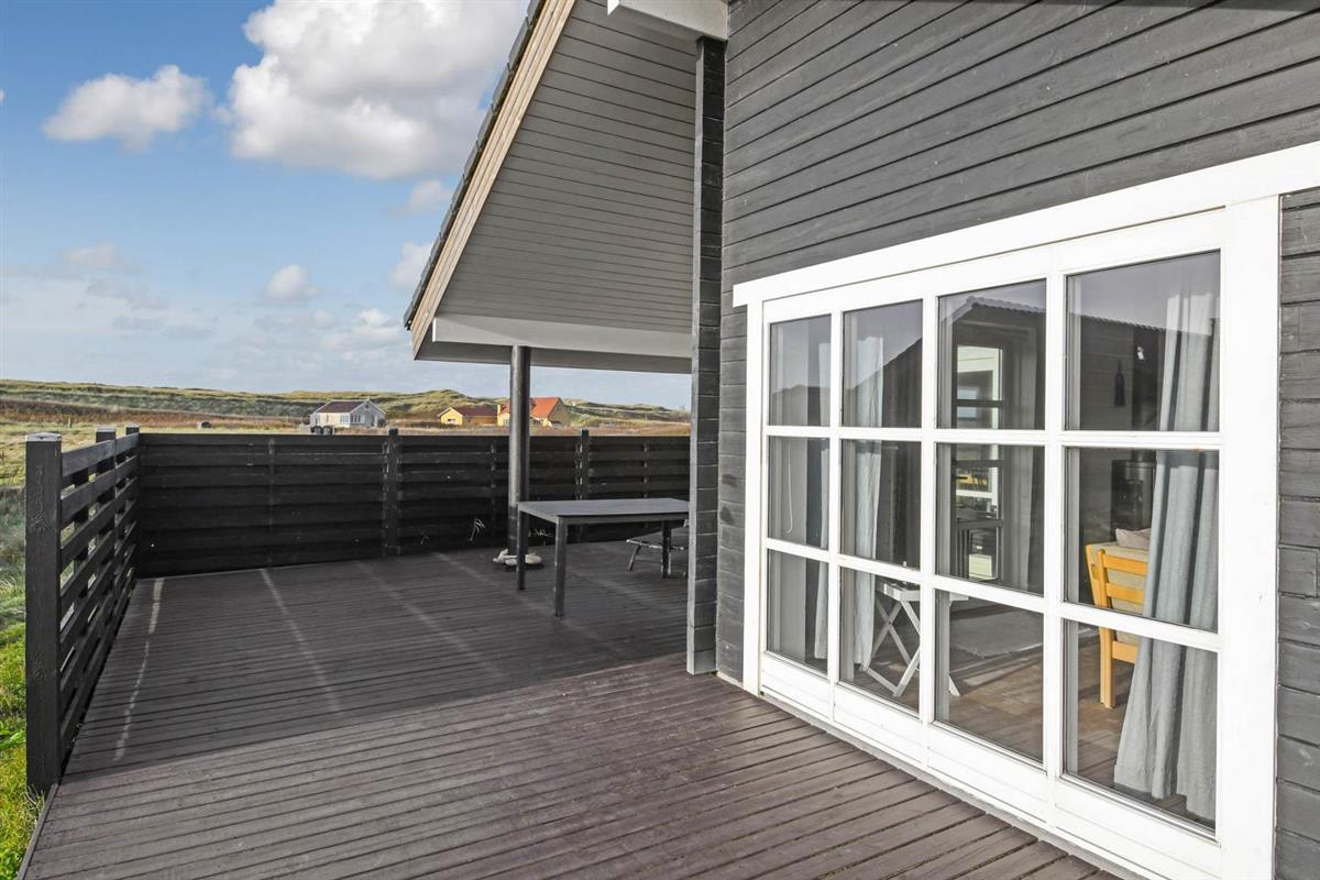 Das Haus liegt auf einem 1025 qm großen Naturgrundstück bloß 100 m von der Nordsee und 200 m vom Ferring See entfernt. Schöne Terrassenanlage mit überdachter, teilweise überdachter und offener Terrasse. Es gibt eine gute Auswahl von Gartenmöbeln, sowie Tische, Stühle, Sonnenliegen, Grill und Feuerplatz. Von der Terrasse gibt es einen schönen Blick über die schöne Natur der Gegend und dem Teich, der vor der Nordsee liegt. Der Umgebung ist sehr gut für Wanderungen und Fahrradtouren geeignet. Bovbjerg Leuchtturm liegt bloß wenige km vom Haus entfernt und hier können Sie in der Saison und auch ein bisschen außerhalb der Saison mehrere Ausstellungen erleben oder das kleine Café des Leuchtturms besuchen, wo es u.a. selbstgemachten Kuchen gibt. Möchten Sie einkaufen oder ein Restaurant besuchen, dann liegt die alte Handelsstadt Lemvig bloß eine kurze Autofahrt vom Haus entfernt. Möchten Sie Attraktionen, dann ist der Hafenort Thyborøn auch nicht weit entfernt. Hier gibt es z.B. Jütland Aquarium, Seawar Museum und das Schneckenhaus. Außerdem haben Sie in Thyborøn auch gute Möglichkeiten frischen Fisch zu kaufen oder ein schönes Essen in einem der lokalen Restaurants am Hafen zu genießen. Das Haus ist eine gute Wahl, wenn Sie dicht an der Nordsee wohnen möchten in einer ruhigen und naturschönen Umgebung.