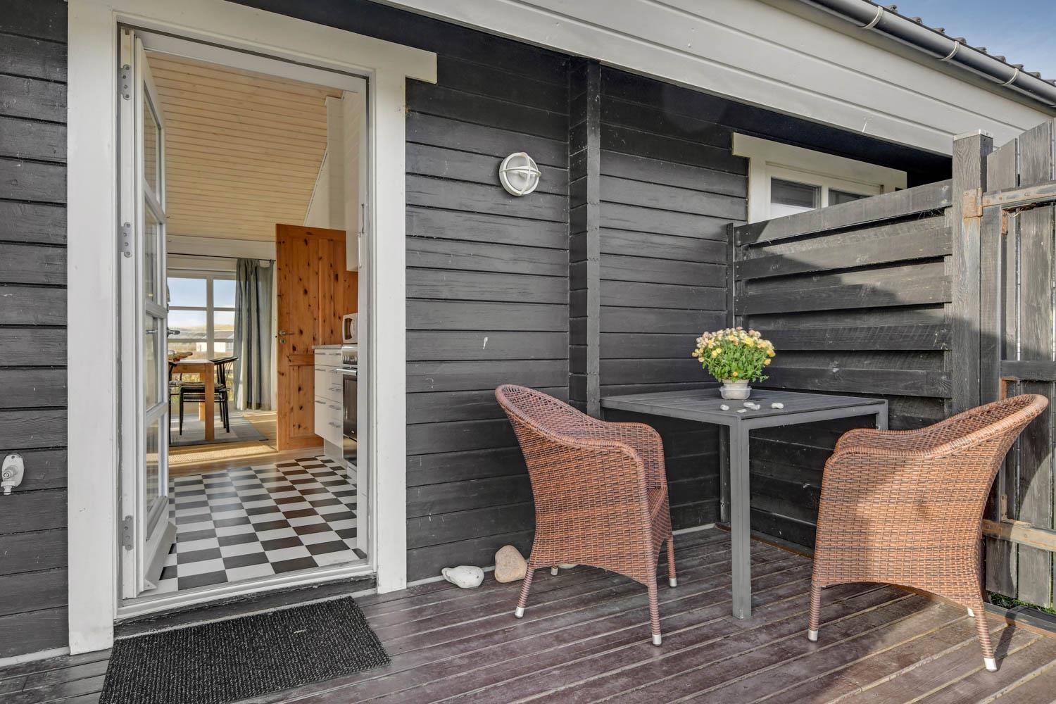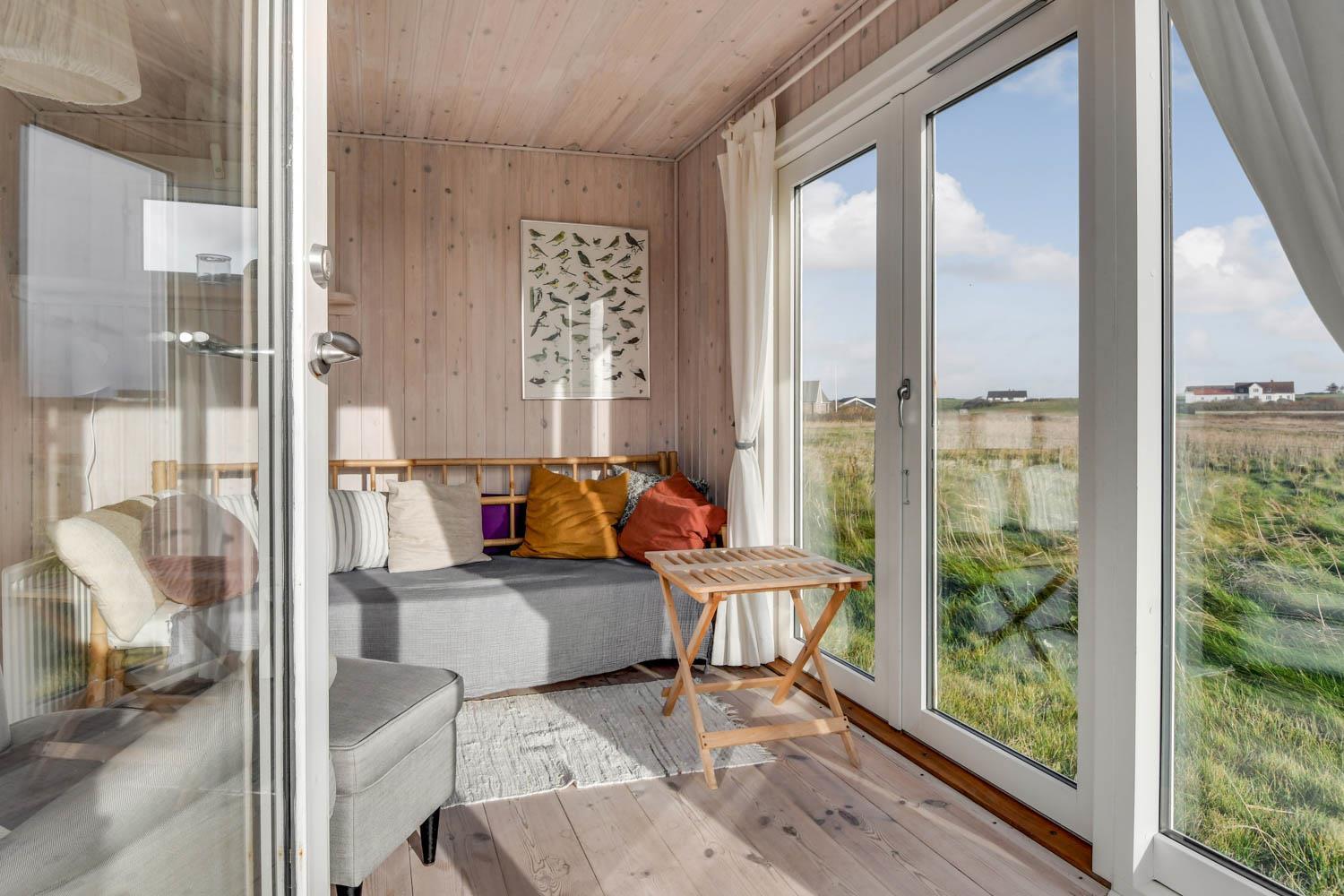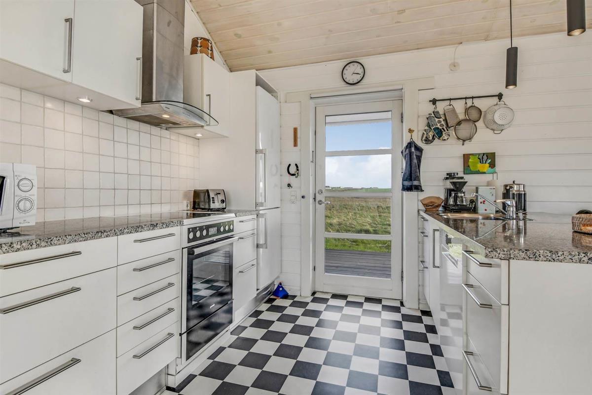 Das Haus liegt auf einem 1025 qm großen Naturgrundstück bloß 100 m von der Nordsee und 200 m vom Ferring See entfernt. Schöne Terrassenanlage mit überdachter, teilweise überdachter und offener Terrasse. Es gibt eine gute Auswahl von Gartenmöbeln, sowie Tische, Stühle, Sonnenliegen, Grill und Feuerplatz. Von der Terrasse gibt es einen schönen Blick über die schöne Natur der Gegend und dem Teich, der vor der Nordsee liegt. Der Umgebung ist sehr gut für Wanderungen und Fahrradtouren geeignet. Bovbjerg Leuchtturm liegt bloß wenige km vom Haus entfernt und hier können Sie in der Saison und auch ein bisschen außerhalb der Saison mehrere Ausstellungen erleben oder das kleine Café des Leuchtturms besuchen, wo es u.a. selbstgemachten Kuchen gibt. Möchten Sie einkaufen oder ein Restaurant besuchen, dann liegt die alte Handelsstadt Lemvig bloß eine kurze Autofahrt vom Haus entfernt. Möchten Sie Attraktionen, dann ist der Hafenort Thyborøn auch nicht weit entfernt. Hier gibt es z.B. Jütland Aquarium, Seawar Museum und das Schneckenhaus. Außerdem haben Sie in Thyborøn auch gute Möglichkeiten frischen Fisch zu kaufen oder ein schönes Essen in einem der lokalen Restaurants am Hafen zu genießen. Das Haus ist eine gute Wahl, wenn Sie dicht an der Nordsee wohnen möchten in einer ruhigen und naturschönen Umgebung.