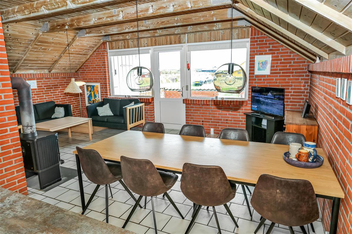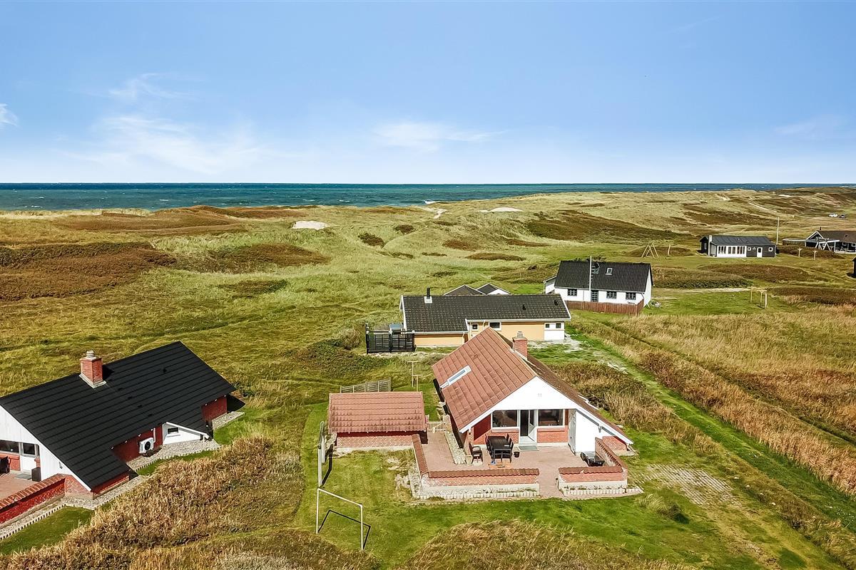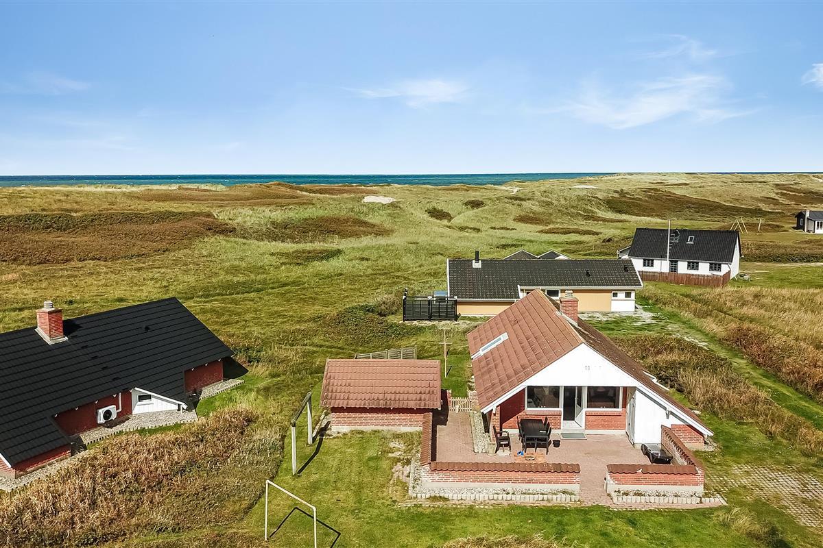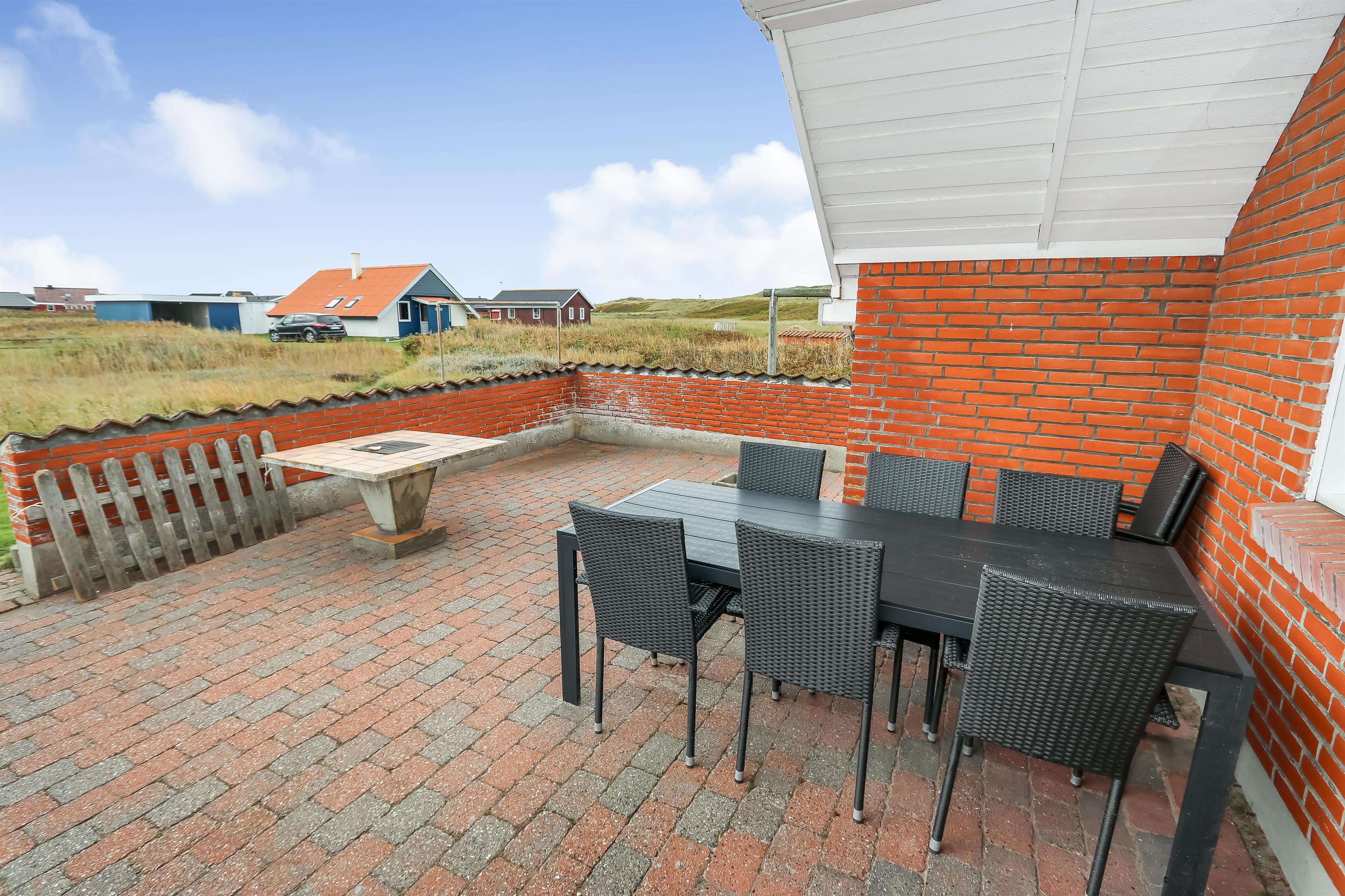 Ausgang zur eingezäunten, teilweise überdachten Terrasse mit Gartenmöbeln und Grill. Das Haus liegt auf einem 4.000 qm großen Naturgrundstück bloß 100 m von der Nordsee entfernt und dicht am Ferring See. Laden Sie Ihre Batterien mit einem guten Buch oder z. B. mit langen Wanderungen in ruhiger Umgebung auf. Genießen Sie die die Lage und das Rauschen von der Nordsee auf aber eingezäunten Terrasse, die perfekt ist, wenn Sie Kinder oder Haustiere mitbringen. Besuchen Sie eine von den vielen Attraktionen, die Sie innerhalb von max. 30 Minuten erreichen können oder besuchen Sie das Fischerdorf Thyborøn oder die schöne Handelsstadt Lemvig mit vielen Spezialgeschäften. In den Sommermonaten können Sie Kleinigkeiten bei Bovbjerg Camping bekommen.