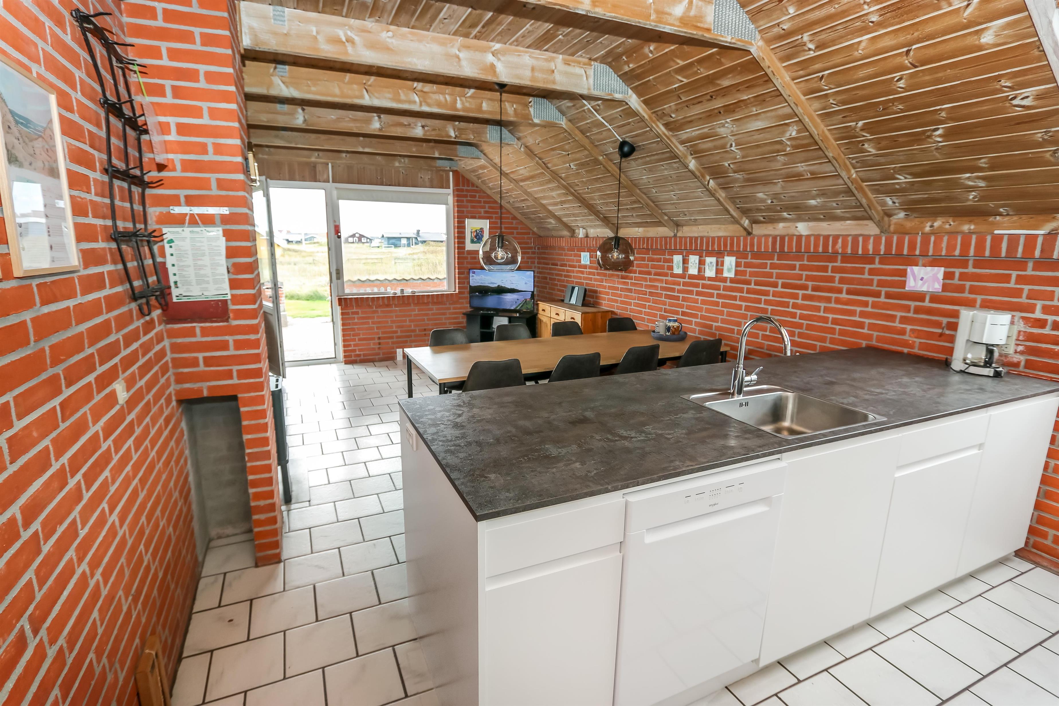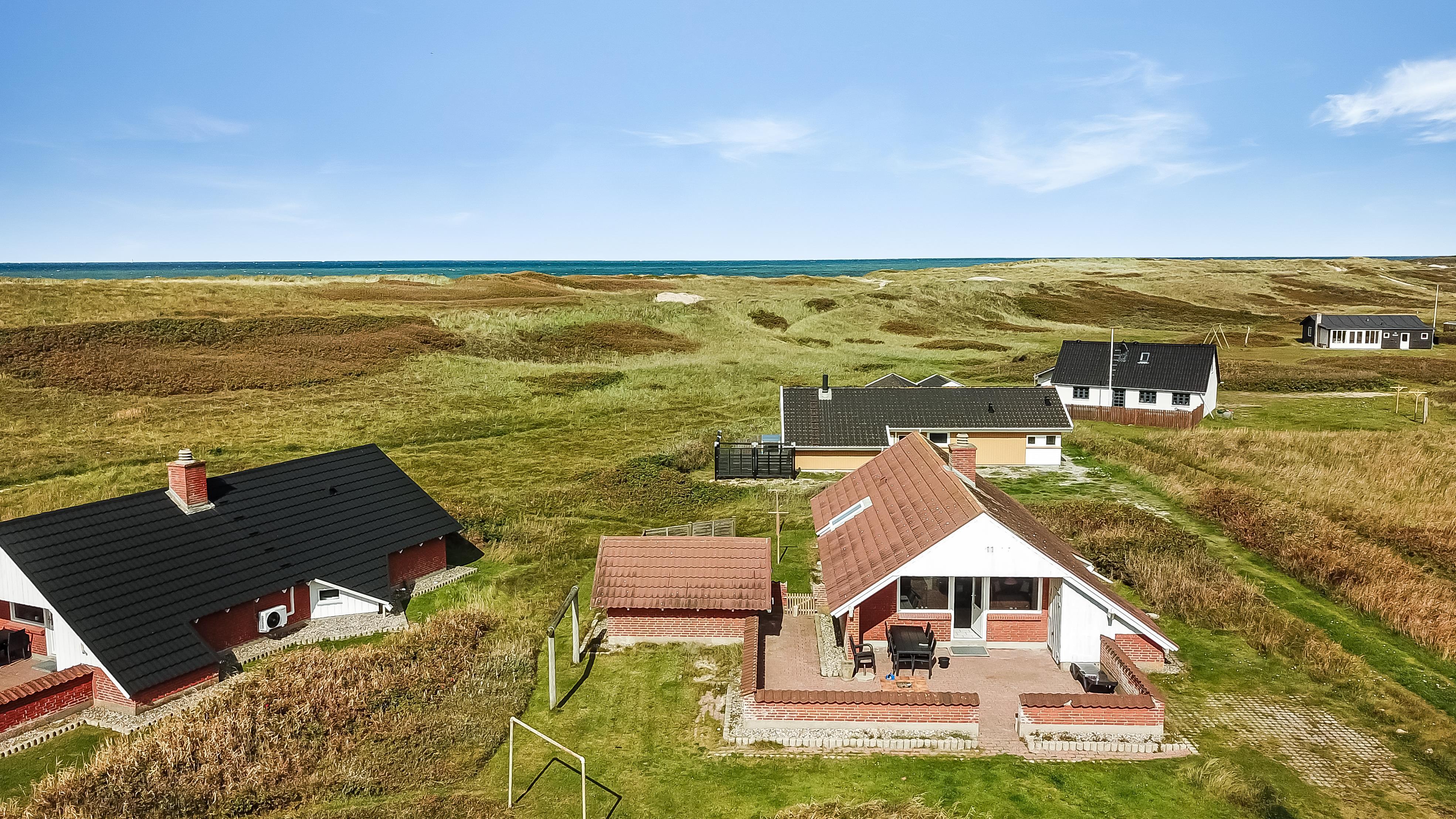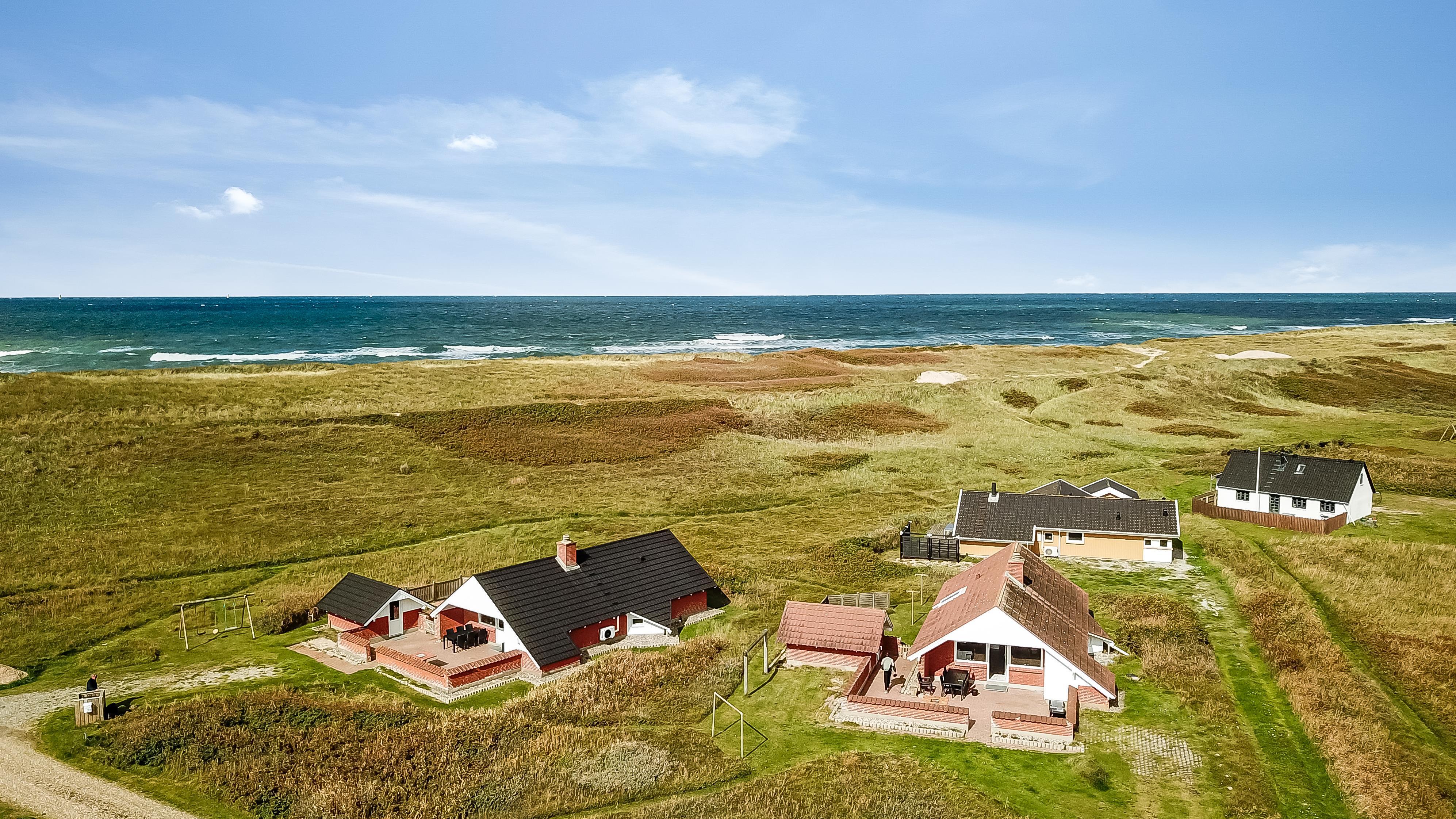 Ausgang zur eingezäunten, teilweise überdachten Terrasse mit Gartenmöbeln und Grill. Das Haus liegt auf einem 4.000 qm großen Naturgrundstück bloß 100 m von der Nordsee entfernt und dicht am Ferring See. Laden Sie Ihre Batterien mit einem guten Buch oder z. B. mit langen Wanderungen in ruhiger Umgebung auf. Genießen Sie die die Lage und das Rauschen von der Nordsee auf aber eingezäunten Terrasse, die perfekt ist, wenn Sie Kinder oder Haustiere mitbringen. Besuchen Sie eine von den vielen Attraktionen, die Sie innerhalb von max. 30 Minuten erreichen können oder besuchen Sie das Fischerdorf Thyborøn oder die schöne Handelsstadt Lemvig mit vielen Spezialgeschäften. In den Sommermonaten können Sie Kleinigkeiten bei Bovbjerg Camping bekommen.