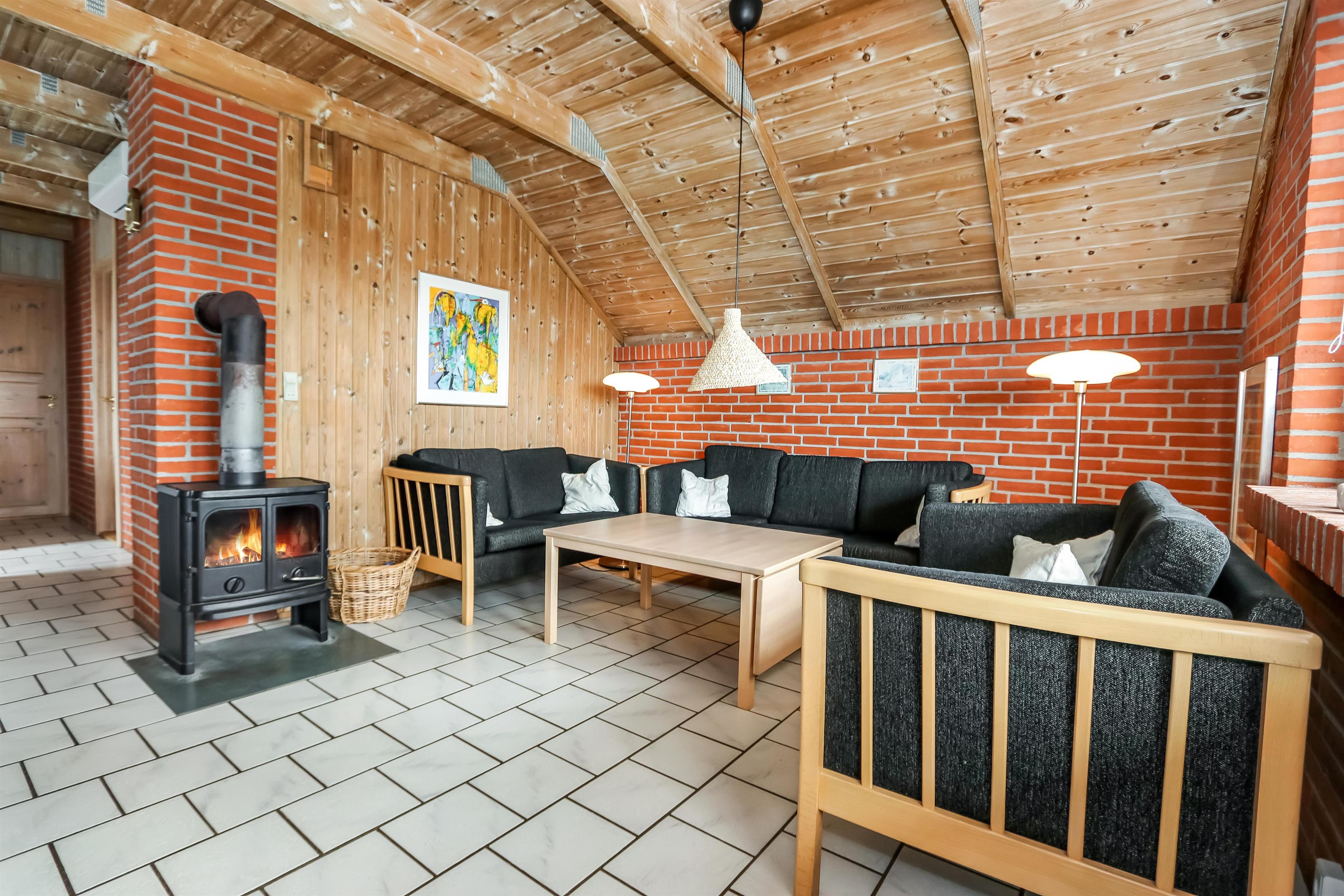 Geräumiges und teilweise neu renoviertes Ferienhaus auf 96 qm – im Jahr 1996 erbaut und teilweise renoviert in 2023 -. Schon wenn Sie Ihr Auto am Haus parken, werden Sie sehen, dass die Lage des Hauses etwas ganz besonderes ist. Das Haus ist praktisch eingerichtet mit Fliesenboden in allen Räumen: Wohnraum, Badezimmer und Schlafräumen. 2 Schlafräume: 1DB + 2B und ein Anbau mit 1DB. Wohnraum mit Polstermöbeln, neuem Esstisch, TV mit dänischen und deutschen Programmen und Radio/CD-Player und ein schöner Brennofen der immer für eine gute Wärme sorgt egal Jahreszeit. Ganz neue Küchenecke mit Herd mit Ceranfeld, Abzugshaube, Mikrowelle, Geschirrspüler und Kühlschrank mit Gefrierfach. Großes Badezimmer mit Toilette, Waschbecken, Dusche, Waschmaschine, Whirlpool und direkten Zugang zur Sauna. Max. 2 Haustiere sind erlaubt. Nichtraucher-Haus.