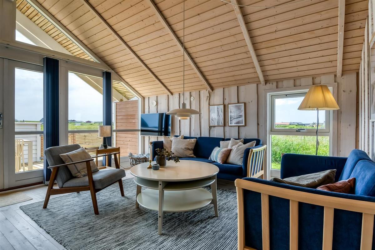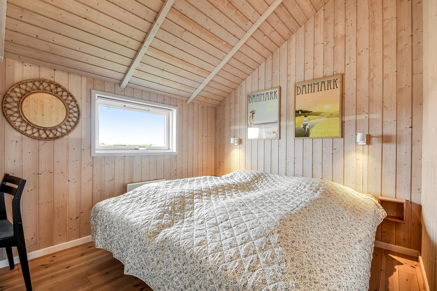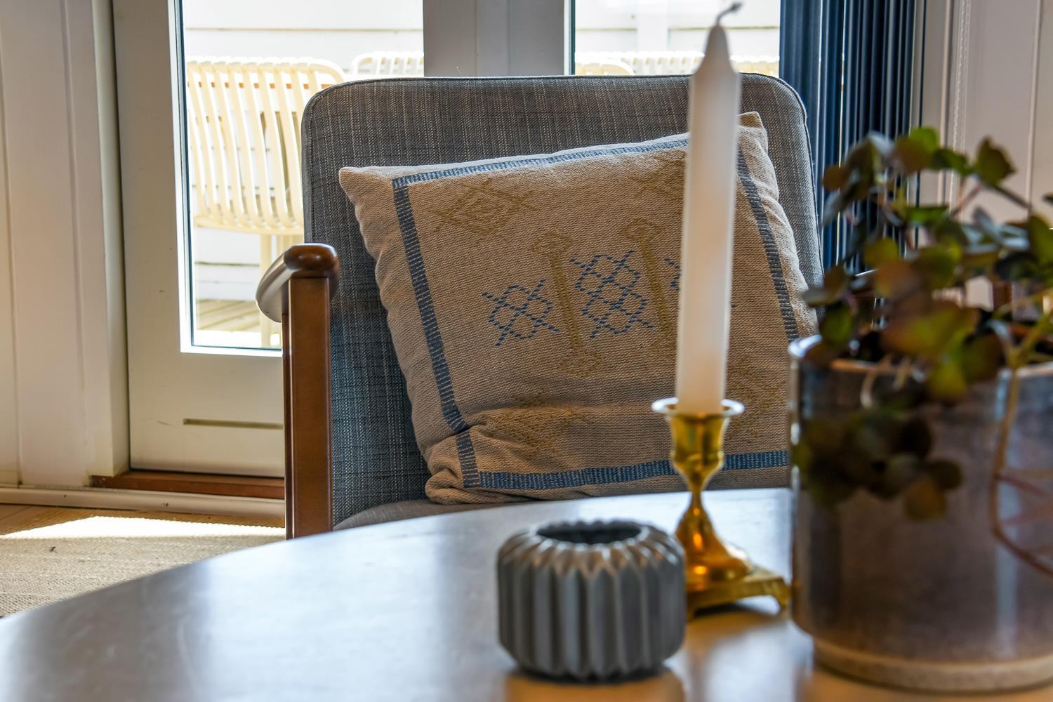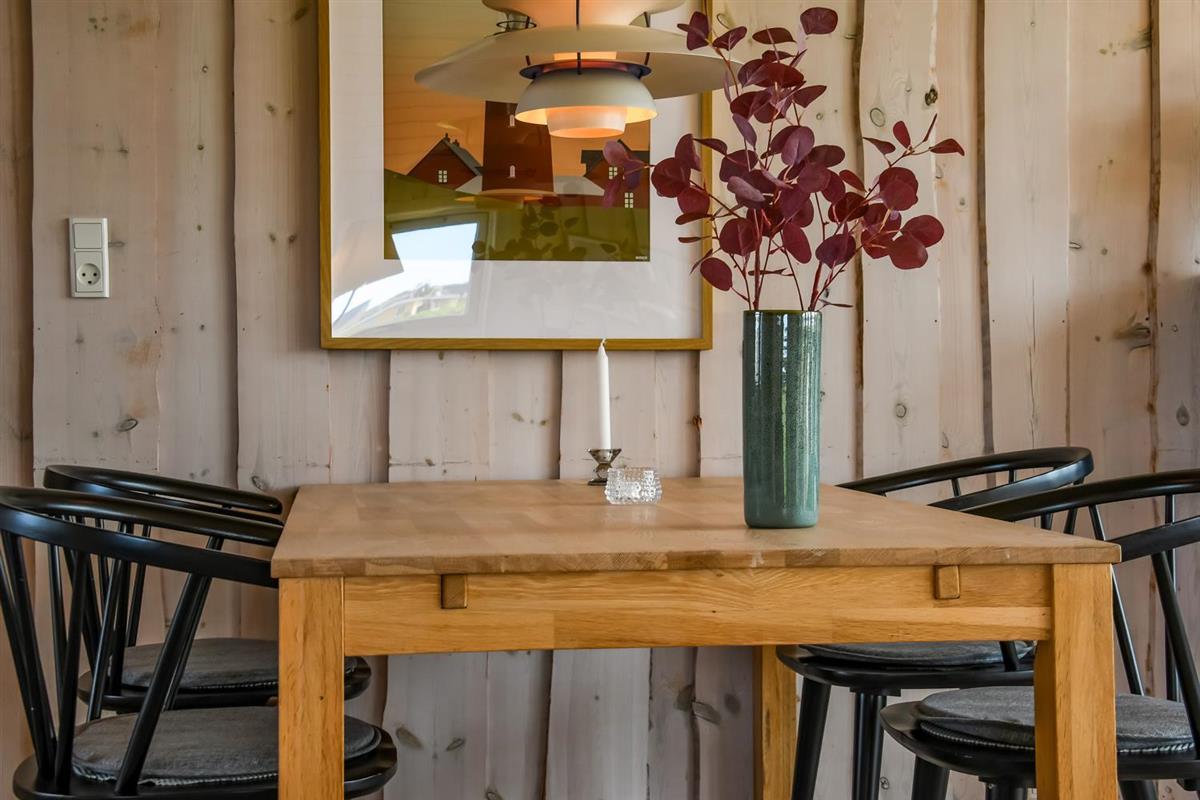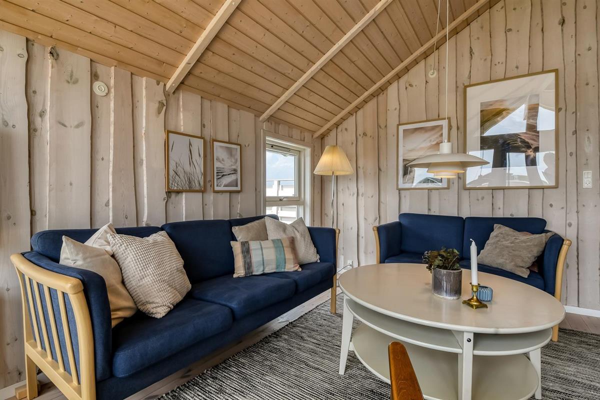 Sobald man den Schlüssel zum Haus abgeholt hat, kann der Urlaub beginnen. Es erwartet einen ein gemütlich eingerichtetes Haus mit 70 m² Wohnfläche, das im Jahr 2005 erbaut wurde. Ein kleiner Eingangsbereich führt in den hellen und einladenden Wohnraum. Dieser besteht aus einem großzügigen, gut genutzten Wohnzimmer mit offener Dachkonstruktion sowie einer kleinen Küchenecke. Im Wohnzimmer sorgt eine große Fensterfront für viel Tageslicht und einen schönen Blick auf die neue eingezäunten Terrasse. Bequeme Polstermöbel und ein Fernseher mit dänischen und deutschen Programmen schaffen eine gemütliche Atmosphäre. An kühleren Tagen sorgt der Kaminofen für wohlige Wärme und zusätzliche Gemütlichkeit – der Sessel direkt daneben lädt zum Entspannen ein, z.B. mit einem guten Buch. Die Küchenecke ist gut ausgestattet, unter anderem mit einem Glaskeramikherd, Abzugshaube, Kühl-/Gefrierschrank, Geschirrspüler und Mikrowelle. Im Haus gibt es ein schönes, helles Badezimmer mit Toilette, Waschbecken und Dusche sowie eine Waschmaschine. Das Badezimmer wird durch eine Fußbodenheizung angenehm beheizt. Abschließend verfügt das Haus über drei gemütliche Schlafzimmer. Eins ist mit einem Doppelbett, eins mit zwei Einzelbetten und das letzte ist mit einem Etagenbett.