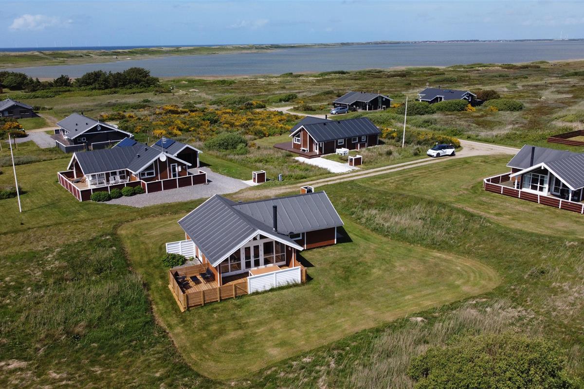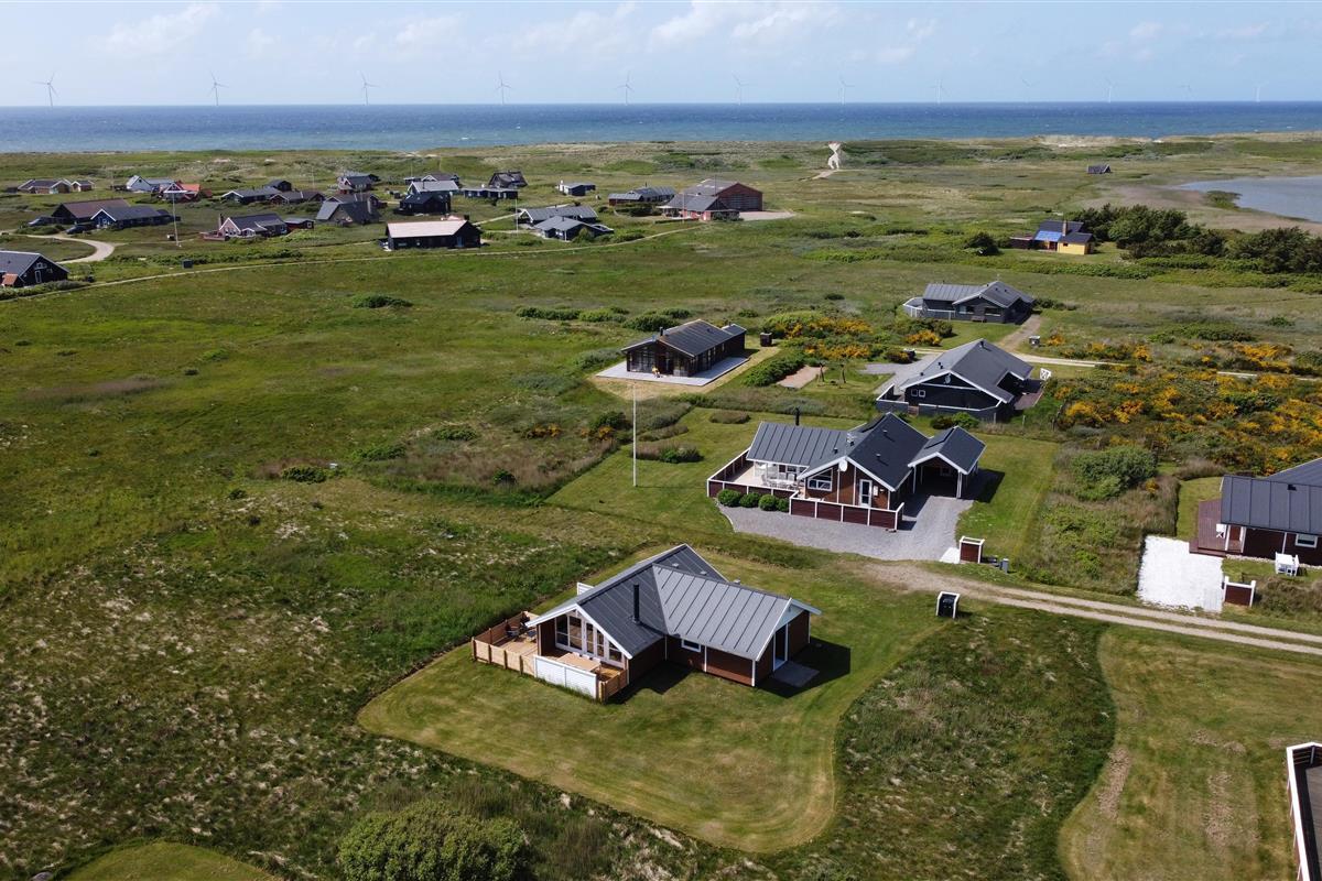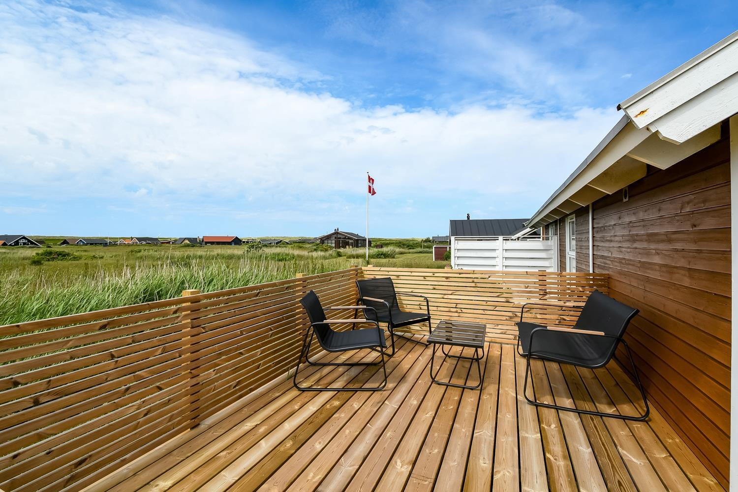 Das Haus liegt auf einem ca. 1.009 m² großen Naturgrundstück in ruhiger Umgebung und direkt an einem großen Freigelände. In Ferring gibt es zahlreiche Möglichkeiten für Spaziergänge und Radtouren. Der Ferring See ist nur etwa 150?m entfernt und bis zur Nordsee sind es ca. 400?m. Vom Wohnzimmer aus hat man direkten Zugang zu einer schönen neuen Terrasse mit Gartenmöbeln, einer Sonnenliege und einem Gasgrill, der je nach Bedarf umgestellt werden kann. Als kleines Extra wurde eine kleine Waschstelle für den Hund eingerichtet – ideal nach einem Spaziergang am Strand mit dem vierbeinigen Freund. Da ist auch ein loser Zaun usw. den man selbst aufstellen kann, wenn man das möchte. Insgesamt handelt es sich um ein sehr attraktives Ferienhaus mit wunderschöner Aussicht, das den perfekten Rahmen für einen einzigartigen Urlaub in der Nähe der Nordsee bietet. Besuchen Sie die vielen Sehenswürdigkeiten und Erlebnisse in Bovbjerg, die Fischerstadt Thyborøn oder die charmante Einkaufsstadt Lemvig mit ihren zahlreichen Fachgeschäften.