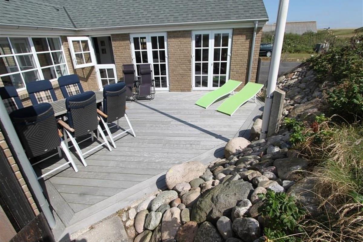 Das Haus hat mehrere gute Terrassen mit Gartenmöbeln , Grill und 2 Sonnenliegen. Eine von den Terrassen liegt über einem kleineren Felsen und ist geschlossen. Der Garten bietet auch einen Spielplatz für die Kinder mit Sandkasten, Schaukel und Rutsche. Es gibt auch eine Bank für die Erwachsenen, damit sie hier sitzen und die Kinder beim Spielen beobachten können. Es gibt hier ganz viele Möglichkeiten sich um das Haus zu setzen und den Blick über die Gegend schweifen zu lassen . Die Nordsee ist nicht weit weg und hier kann man sich sonnen, wandern, Drachen fliegen lassen oder angeln.