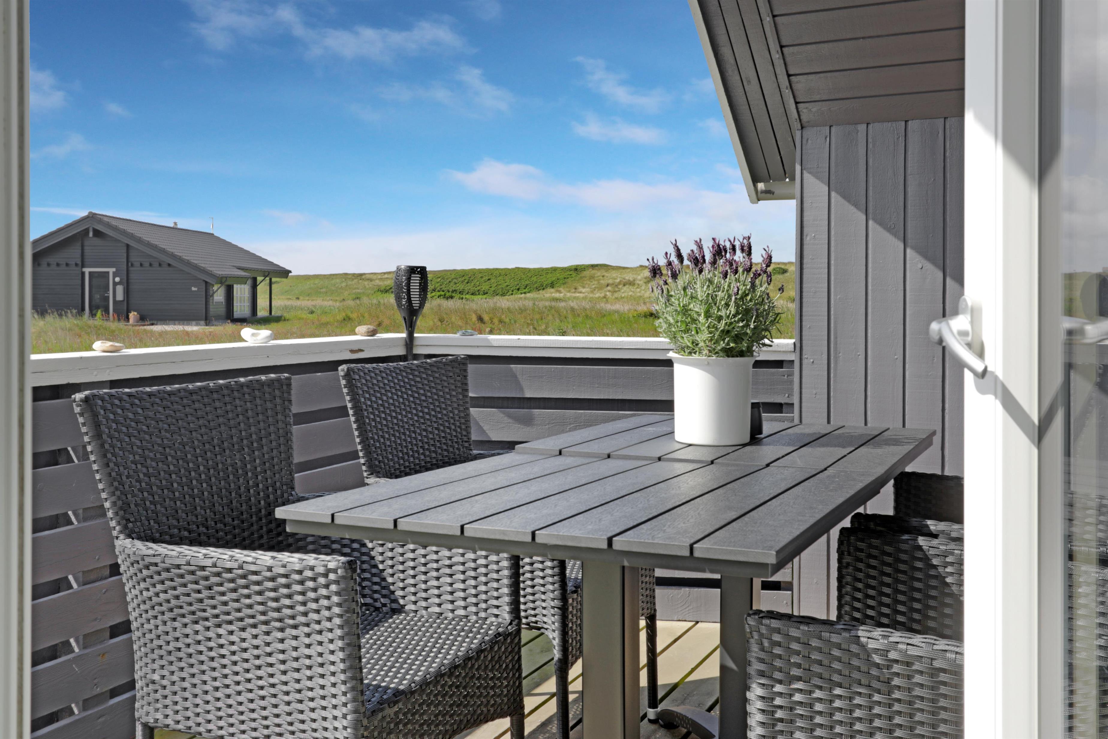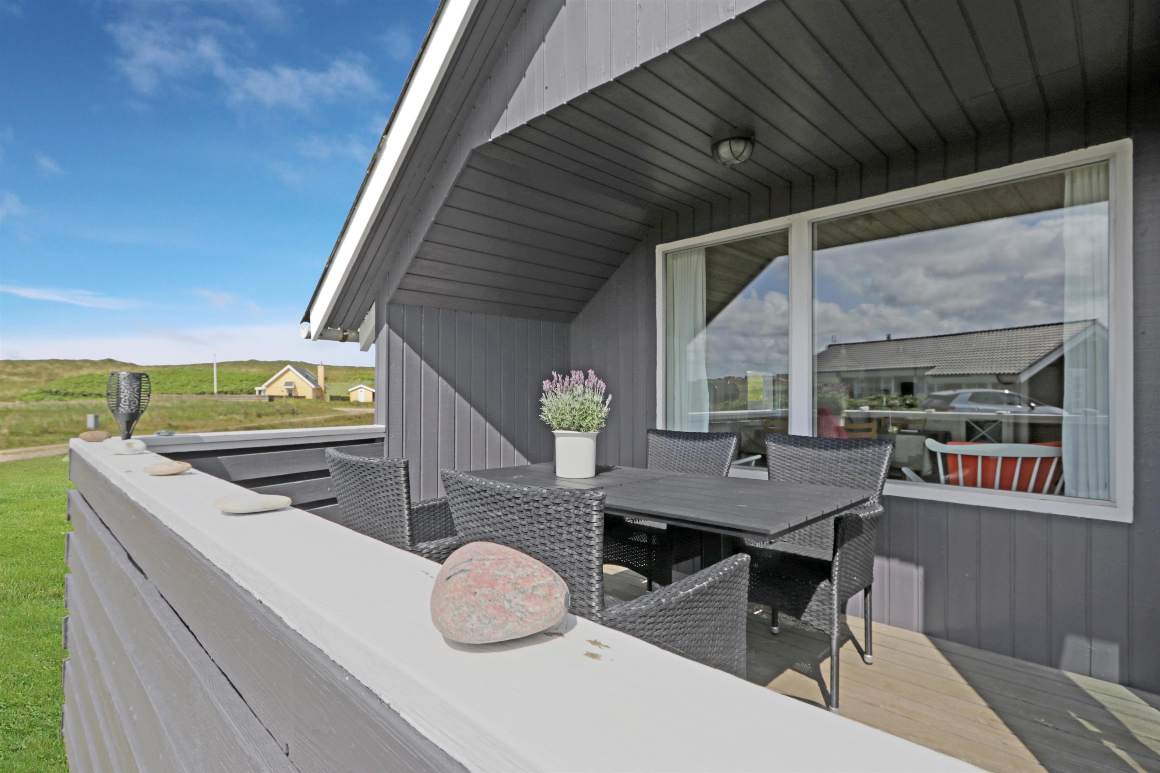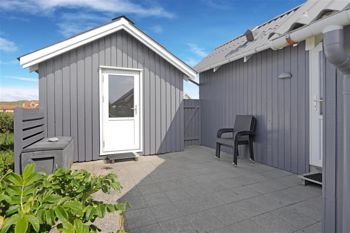 Das Ferienhaus liegt auf einem 1.488?m² großen, privaten Naturgrundstück – nur 100?Meter vom rauschenden Meer entfernt. Auf den großzügigen Terrassen können Sie den ganzen Tag verbringen. Eine Terrasse ist mit Rasen komplett eingezäunt, zum Teil überdacht, der andere offen – ideal bei jedem Wetter. Die andere Terrasse befindet sich auf der anderen Seite des Hauses, wo man eine faszinierende Aussicht auf das Grün hat, sowie die Möglichkeit, den Sonnenuntergang zu beobachten. Gartenmöbel, Sonnenliegen und ein Grill stehen bereit, damit Sie den Platz flexibel nach Sonne, Schatten oder Windschutz wählen können. Für die kleinen Gäste gibt es eine Sandkiste zum Spielen und Buddeln im eingezäunten Bereich des Aussenanlage.