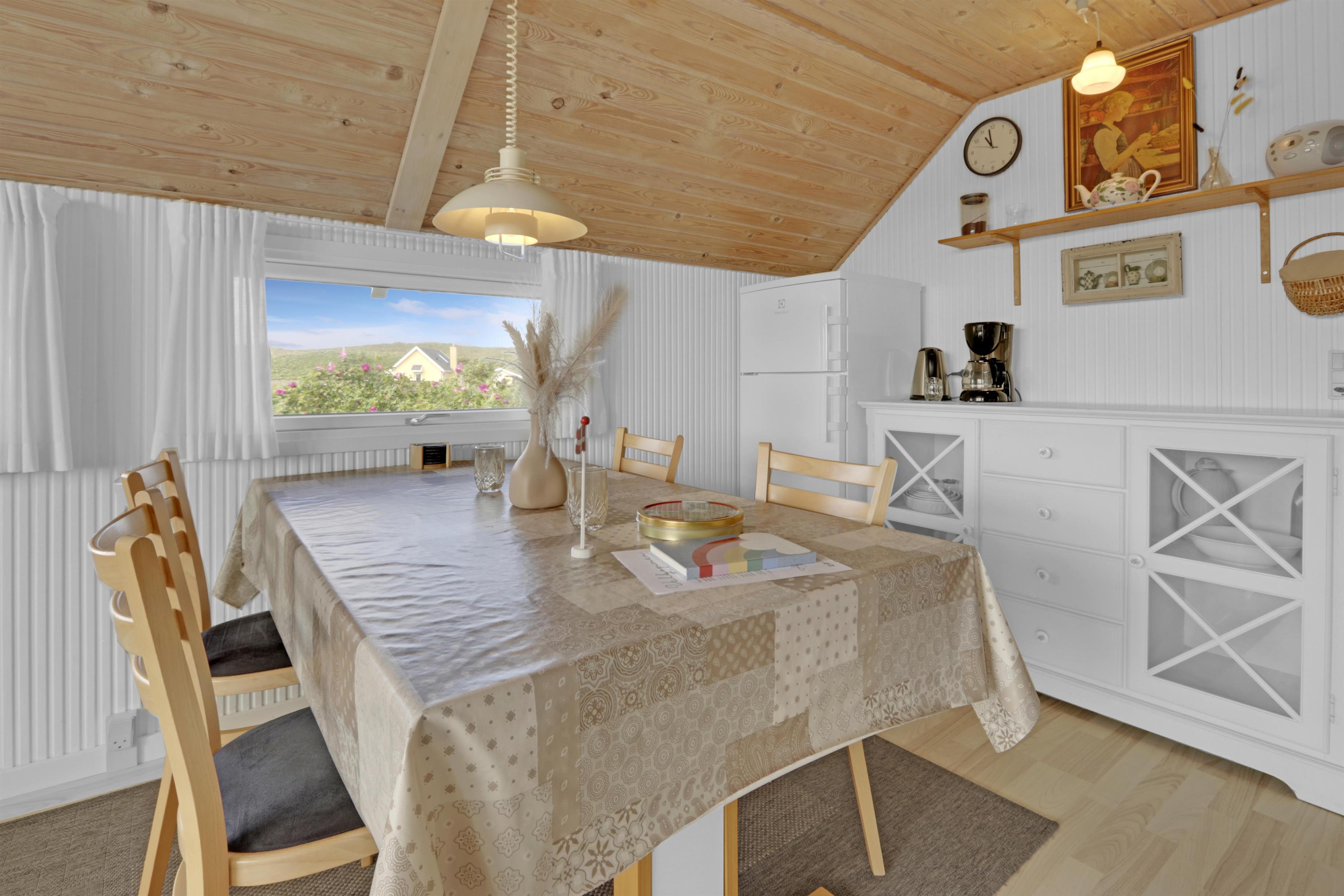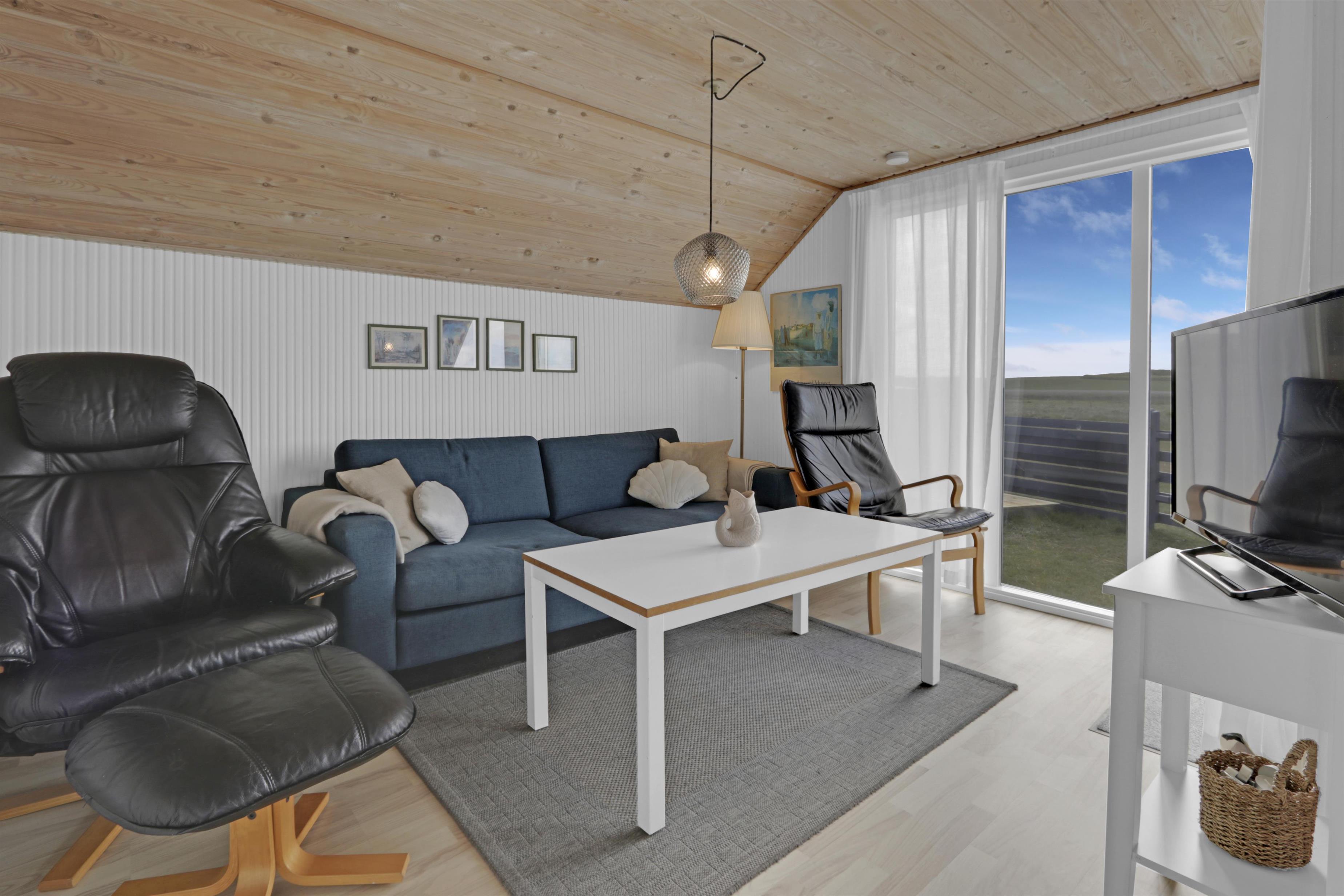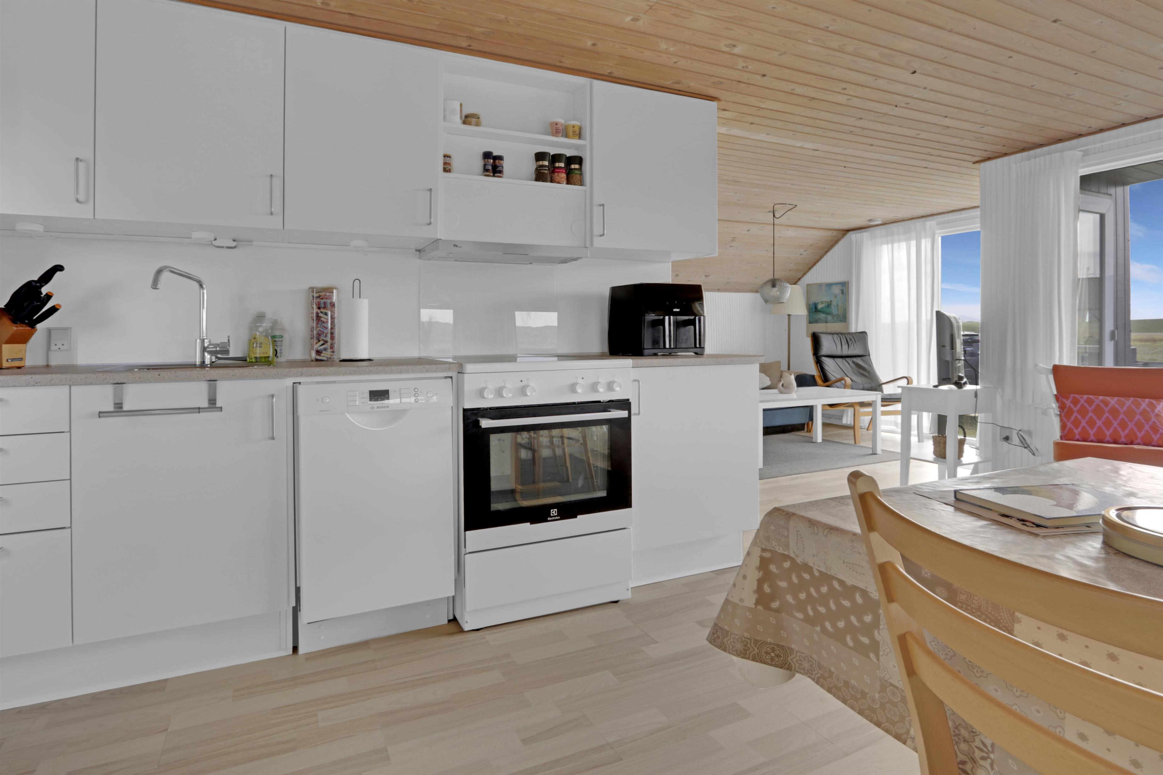 Das gemütliche und modern eingerichtete Ferienhaus empfängt Sie mit einem hellen, offenen Wohnbereich, der nahtlos in die gut ausgestattete Küche übergeht. Hier finden Sie alles, was Sie für eine entspannte Auszeit brauchen: ein Cerankochfeld, Dunstabzugshaube, Kühl-/Gefrierkombination, Geschirrspüler – und sogar eine Heißluftfritteuse. Im Wohnbereich laden bequeme Leder- und Polstermöbel zum Entspannen oder einem Spieleabend ein. Ein Flachbild-TV mit dänischen und deutschen Programmen, Chromecast sowie große Fensterfronten sorgen für Komfort und viel Tageslicht. Natürlich steht Ihnen kostenloses WLAN zur Verfügung.