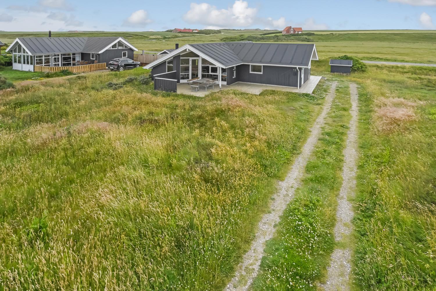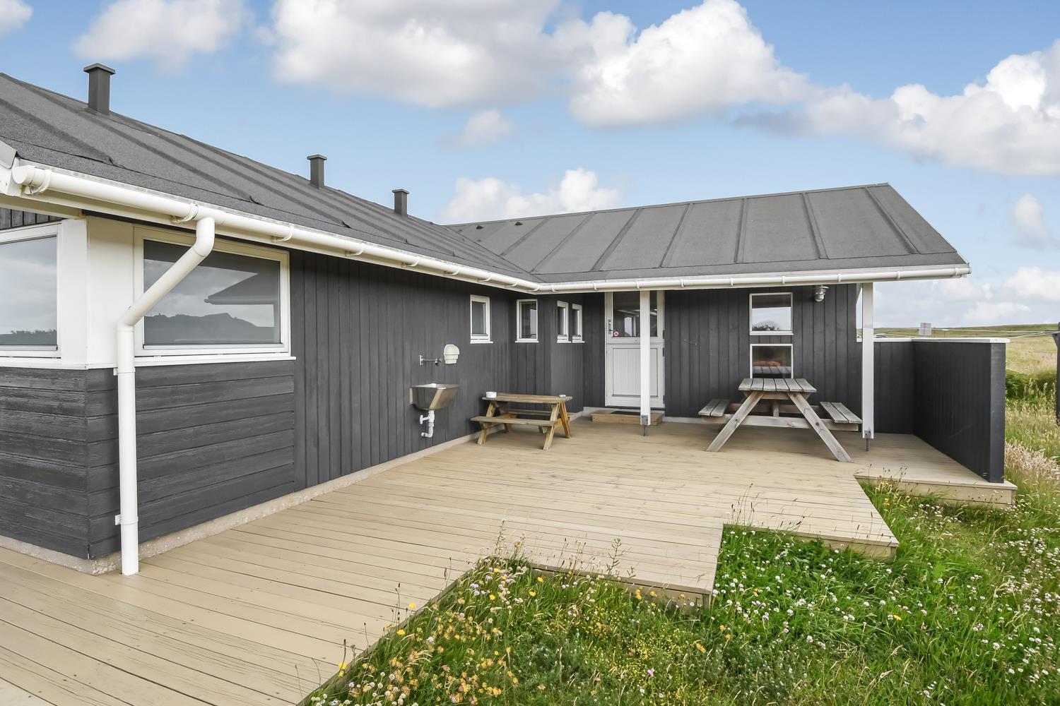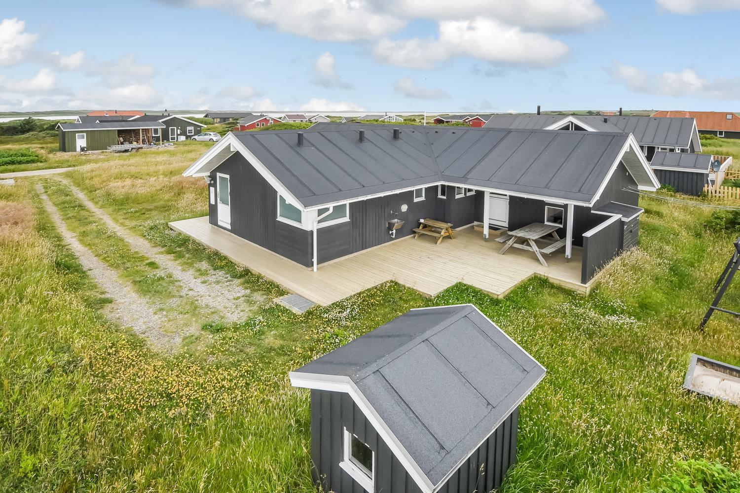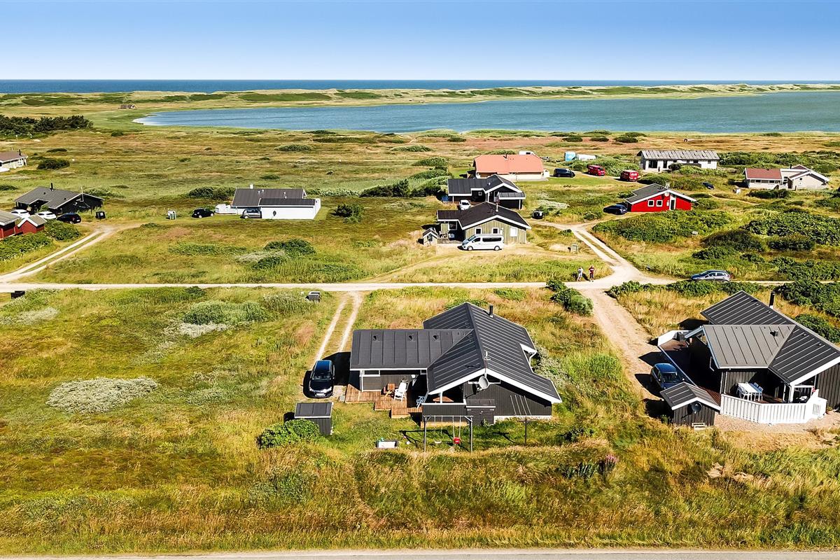 Das Haus liegt auf einem etwa 1200 qm großen Naturgrundstück in einem ruhigen Ferienhausgebiet, etwa 3 km Südost von Vejlby Klit. Der Abstand zum Ferring See beträgt nur 200 m und zur Nordsee etwa 500 m. Für die kleinen Gäste gibt es Schaukel, Sandkasten und ein Spielhaus. Die Terrassen sind sehr gut und sind mit Gartenmöbeln und Sonnenliegen ausgestattet und von hier haben Sie einen schönen Blick über die Umgebung. Im großen und ganzen ein sehr attraktives Ferienhaus, egal ob Sie mit einer oder zwei Familien den Urlaub verbringen möchten.