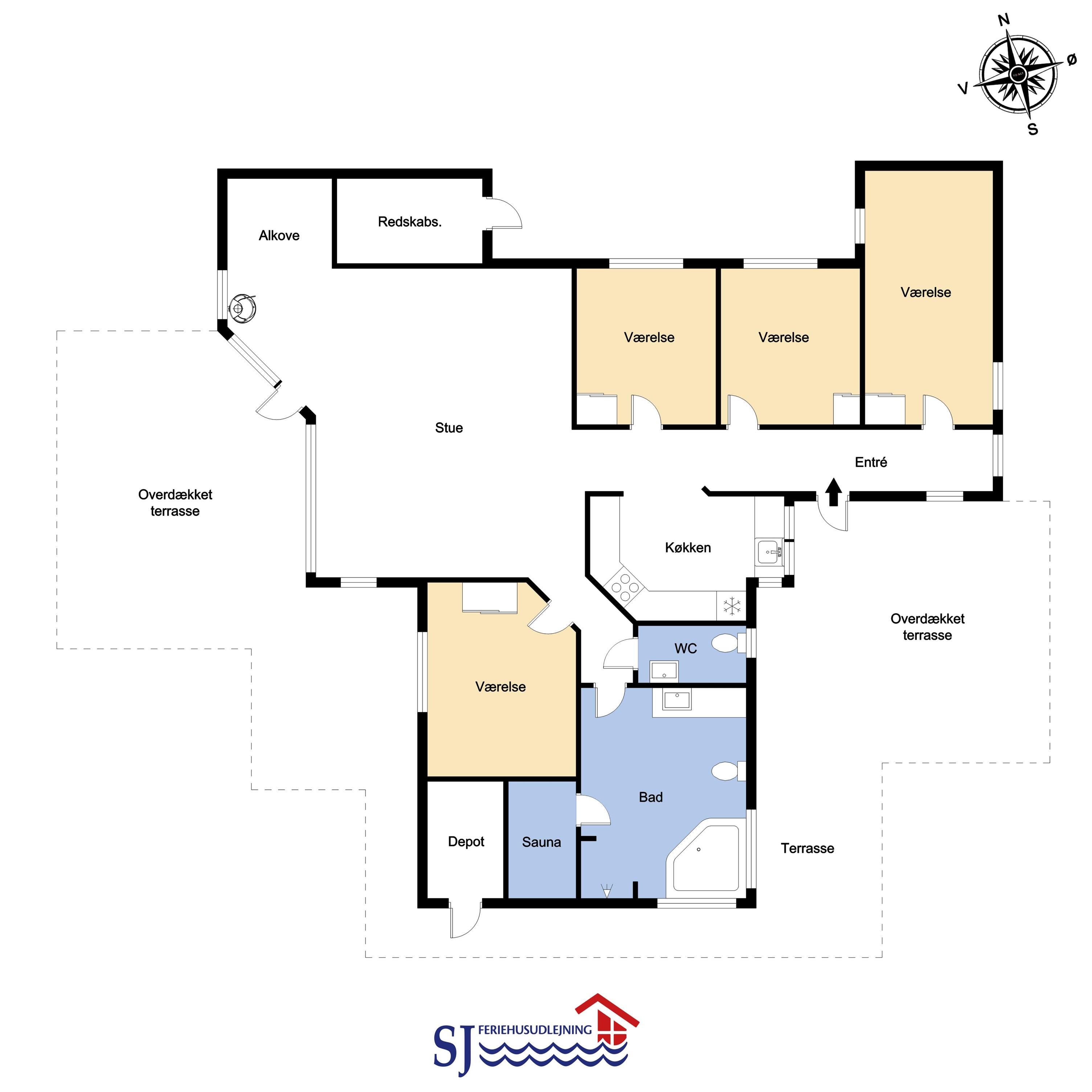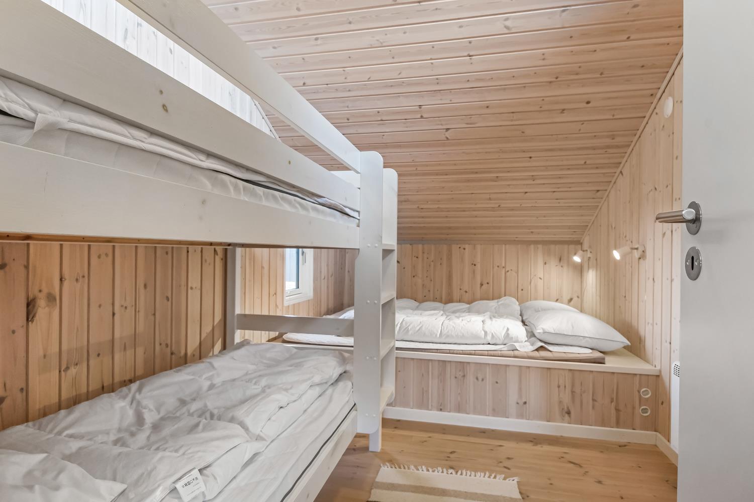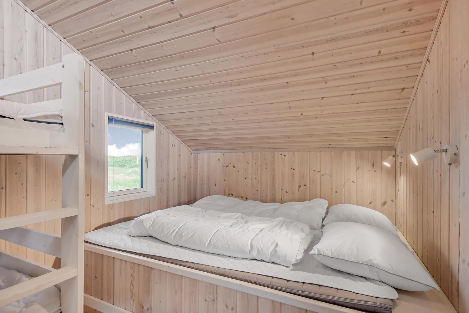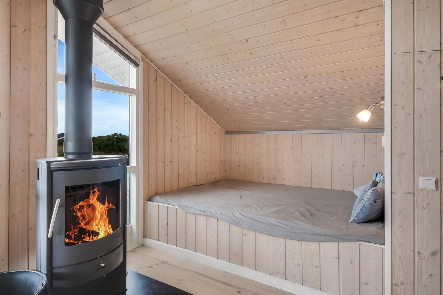 Sehr schönes und modernes Ferienhaus im Jahr 2005 mit geweißtem Holz und Holzböden mit kleinen Teppichen. Gut ausgestattete Küche mit Ceranfeld-Kochherd, Abzugshaube, Kühl-/Gefrierschrank, Geschirrspüler, Mikrowelle und Linoleumboden. Schöner Wohnraum mit Ledermöbeln, TV mit Cromecast und mit dänischen und deutschen Programmen, Radio und schönem Kaminofen, der immer eine gute und schöne Wärme gibt, auch an kalten Tagen. Badezimmer mit Toilette, Waschbecken, Dusche, Whirlpool und Sauna. Extra Badezimmer mit Toilette. Waschbecken, Waschmaschine und Trockner. 3 gute Schlafräume mit: 1 DB + 1DB + (1DB + 2k). Alkoven mit 1 Schlafmöglichkeit. 2 Haustiere sind erlaubt. Nichtraucher-Haus. 1 Kinderstuhl.