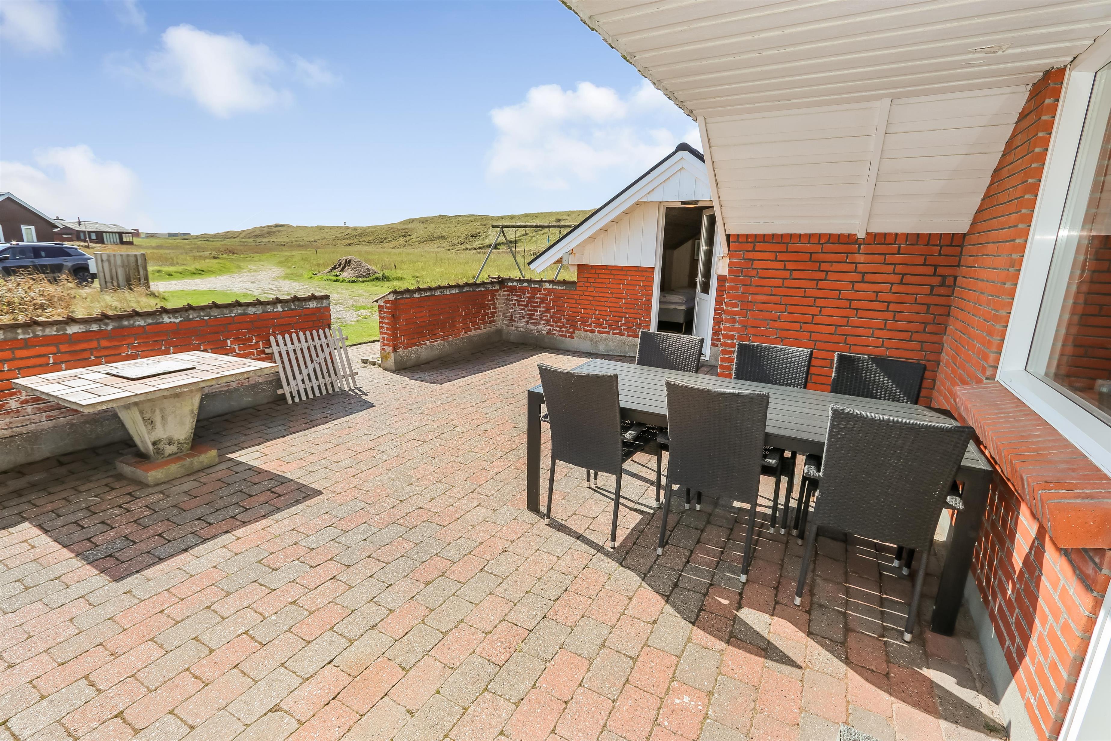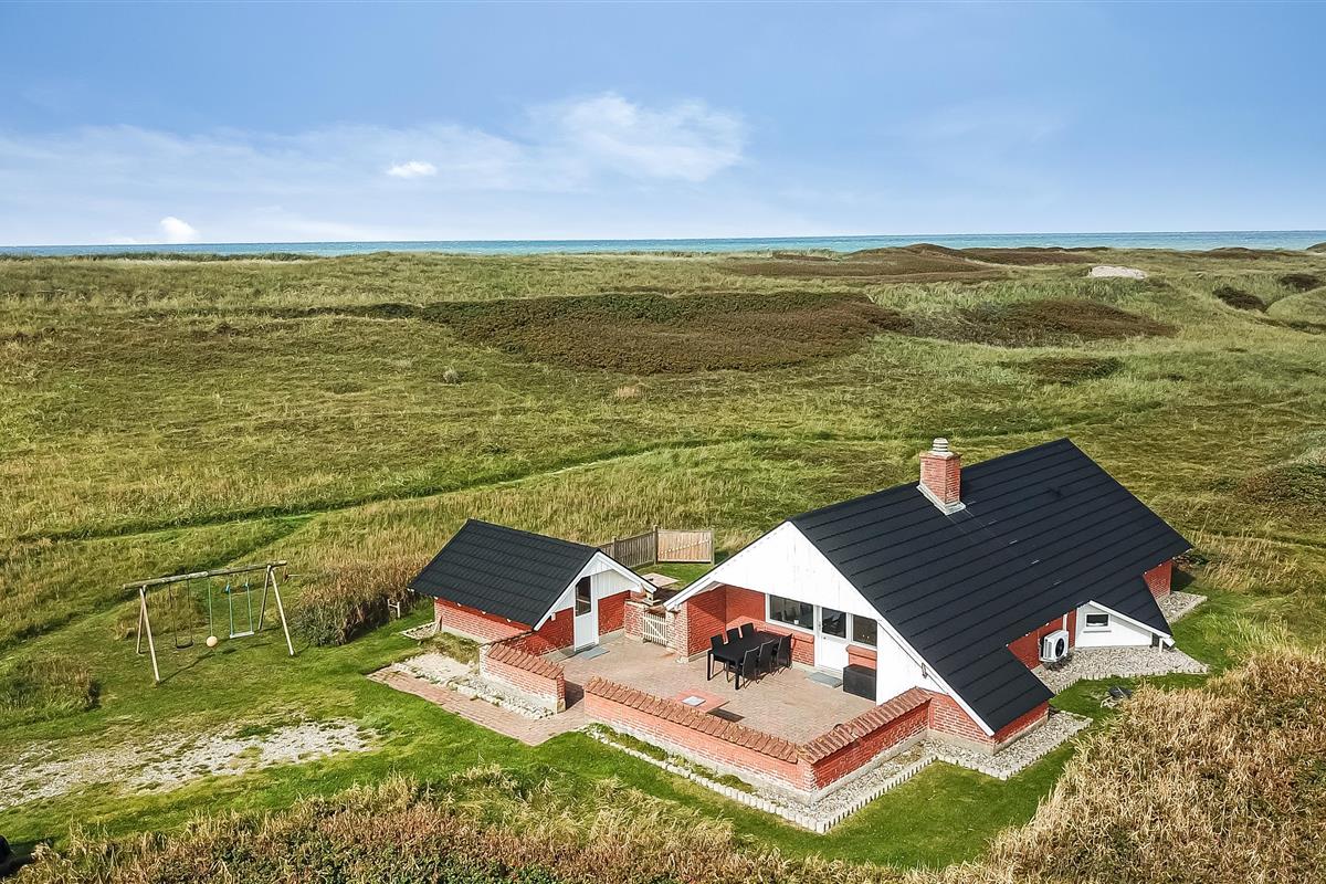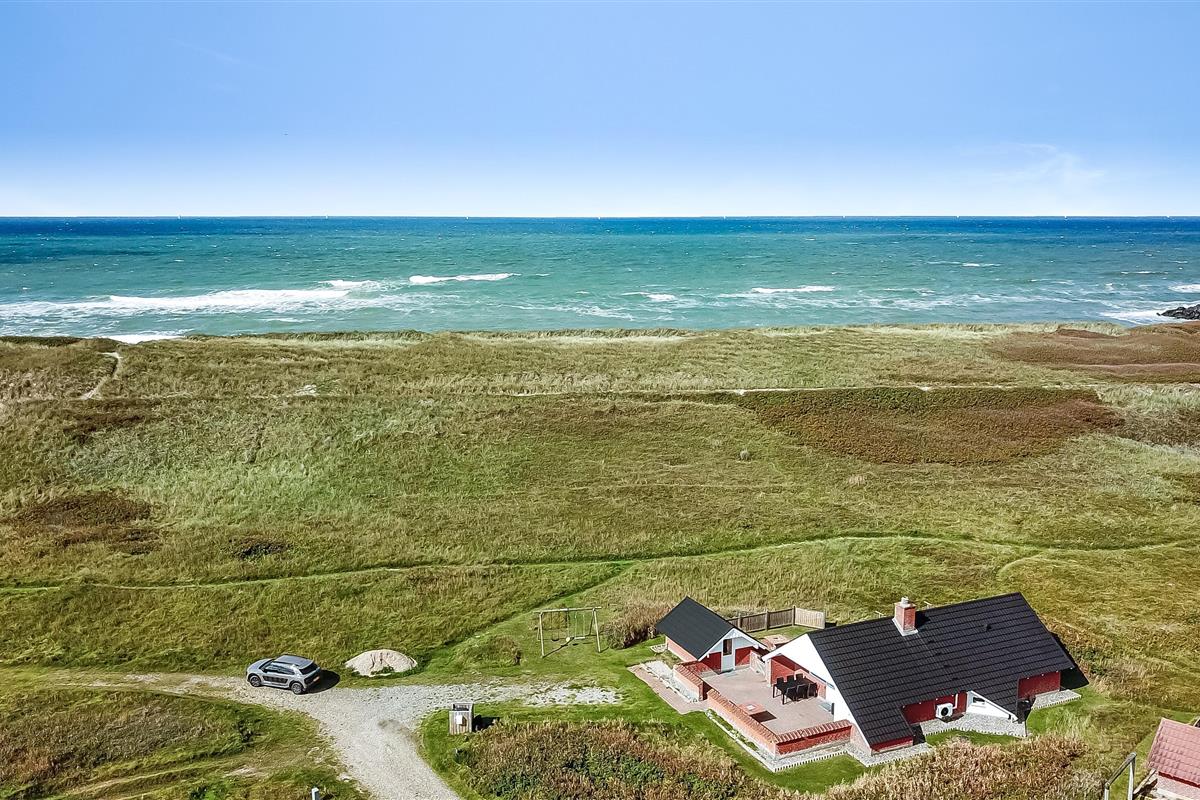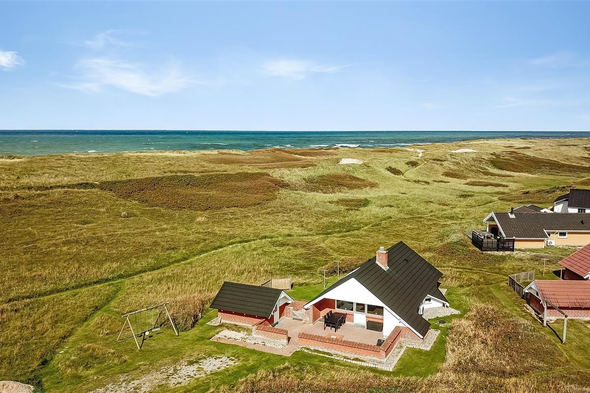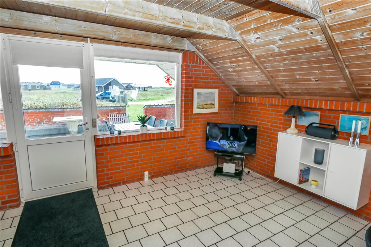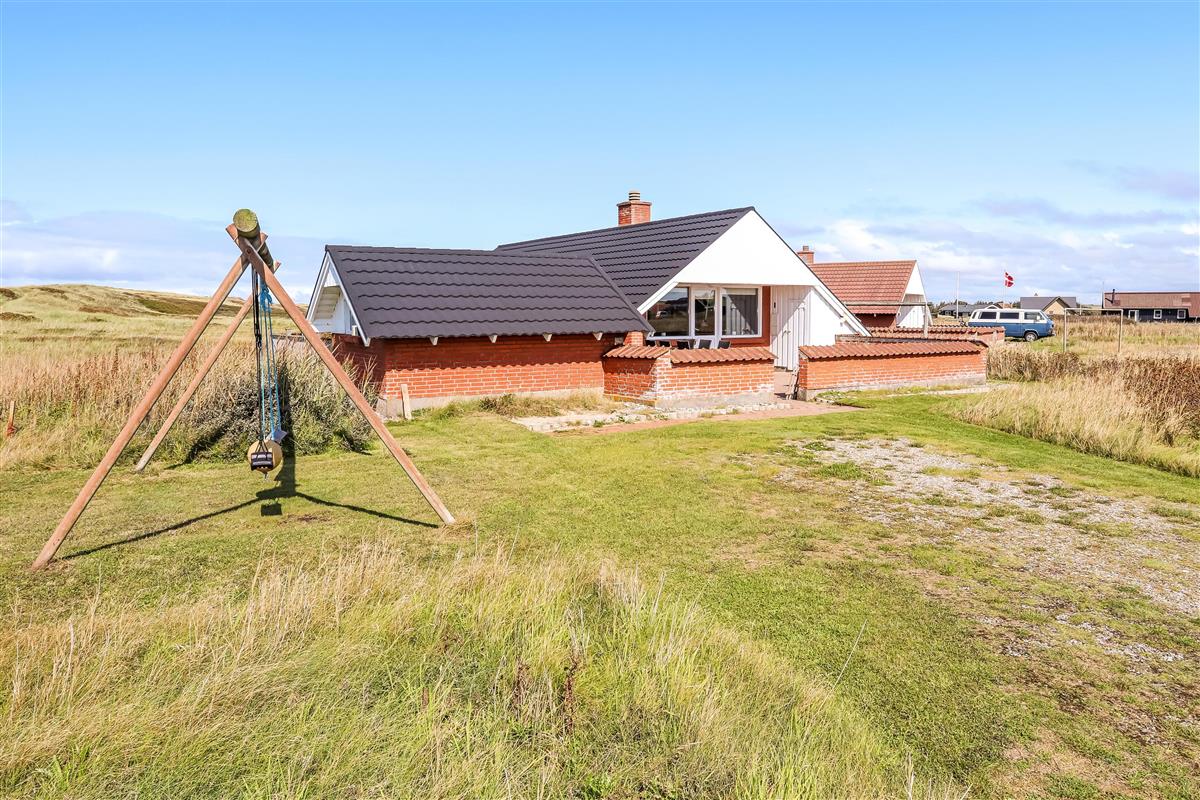 Ausgang zur eingezäunten, teilweise überdachten Terrasse mit Gartenmöbeln und Grill. Das Haus liegt auf einem 4.000 qm großen Naturgrundstück bloß 100 m von der Nordsee entfernt und dicht am Ferring See. Laden Sie Ihre Batterien mit einem guten Buch oder z. B. mit langen Wanderungen in ruhiger Umgebung auf. Genießen Sie die die Lage und das Rauschen von der Nordsee auf aber eingezäunten Terrasse, die perfekt ist, wenn Sie Kinder oder Haustiere mitbringen. Besuchen Sie eine von den vielen Attraktionen, die Sie innerhalb von max. 30 Minuten erreichen können oder besuchen Sie das Fischerdorf Thyborøn oder die schöne Handelsstadt Lemvig mit vielen Spezialgeschäften. In den Sommermonaten können Sie Kleinigkeiten bei Bovbjerg Camping bekommen.