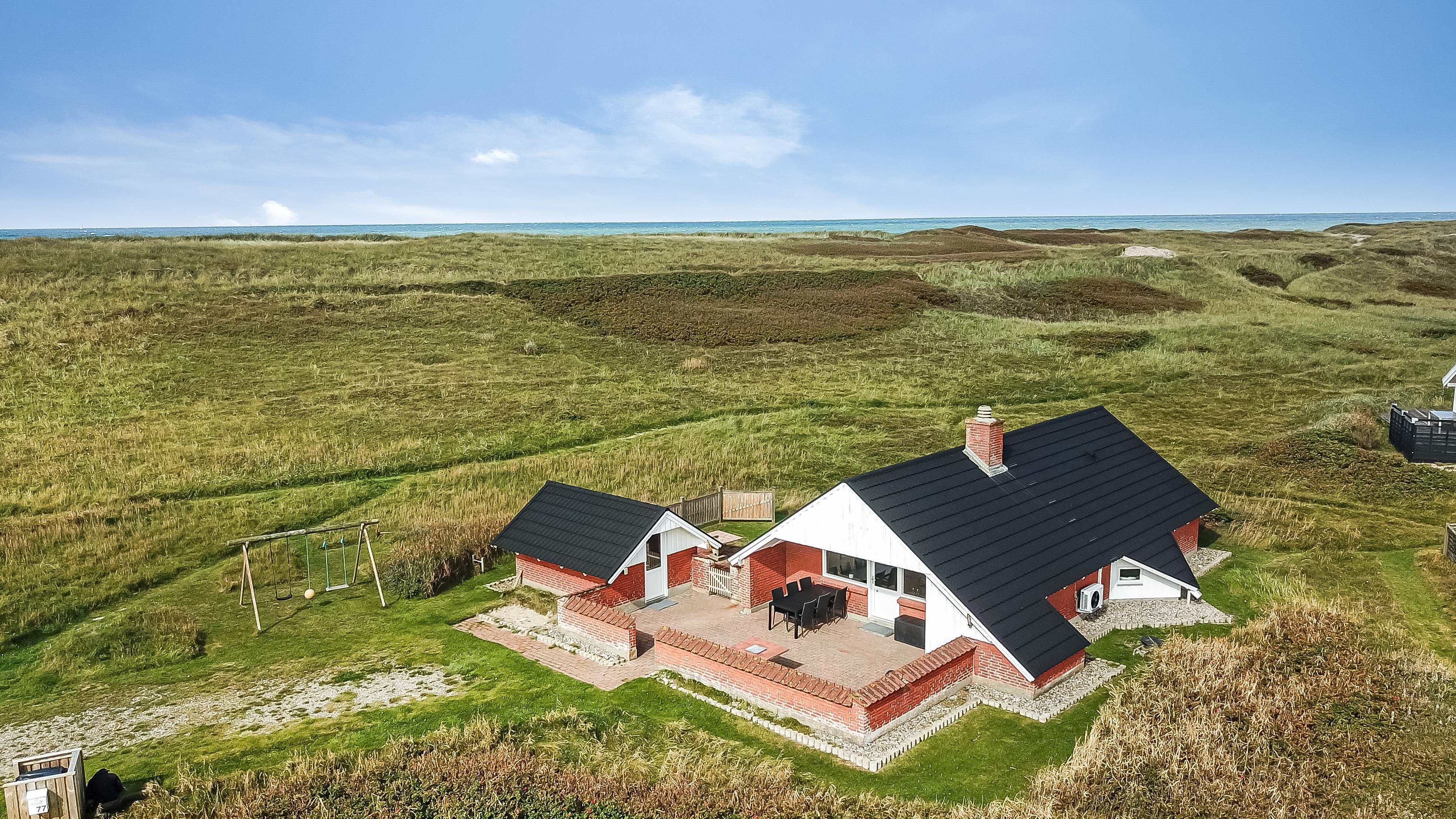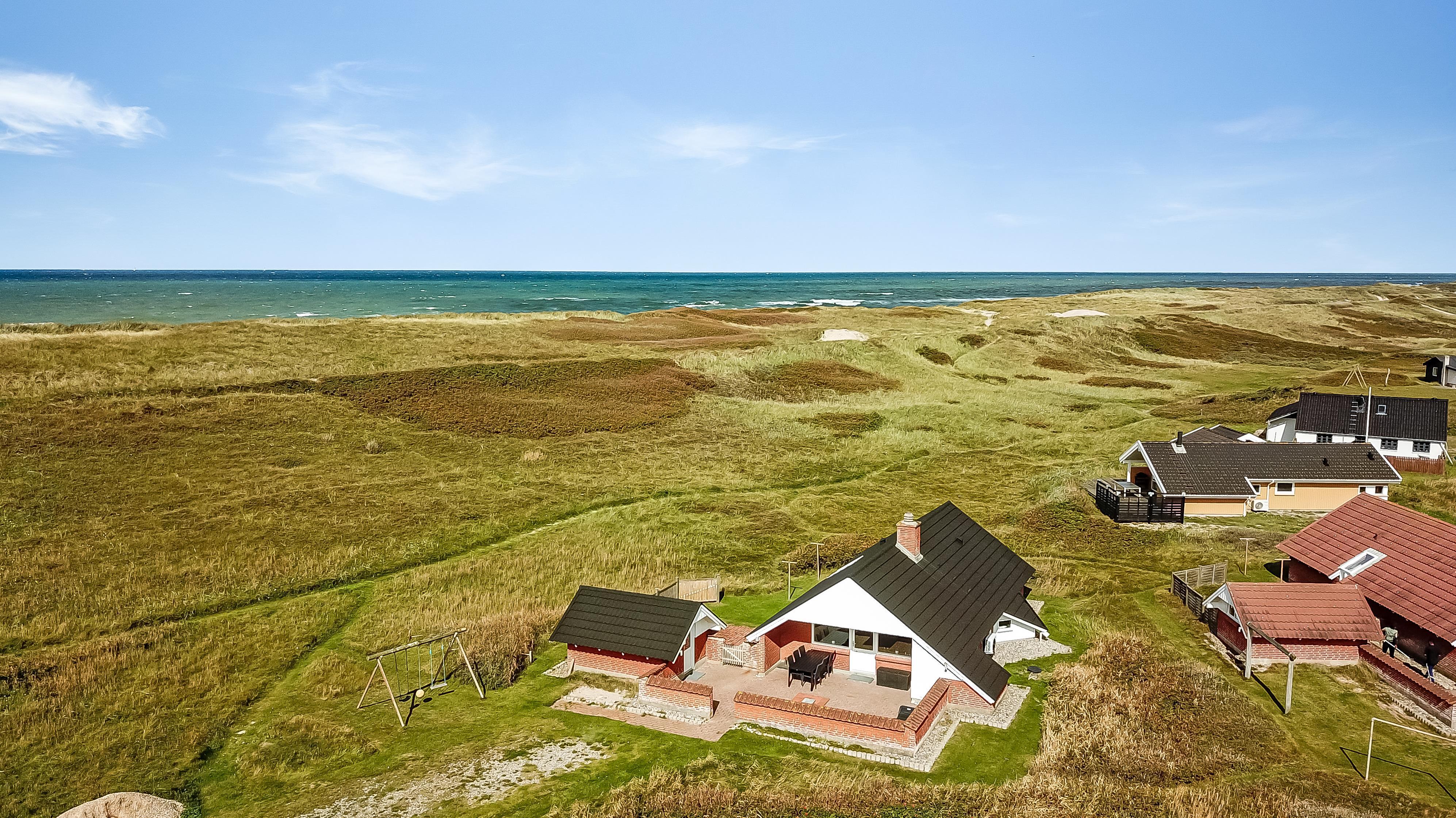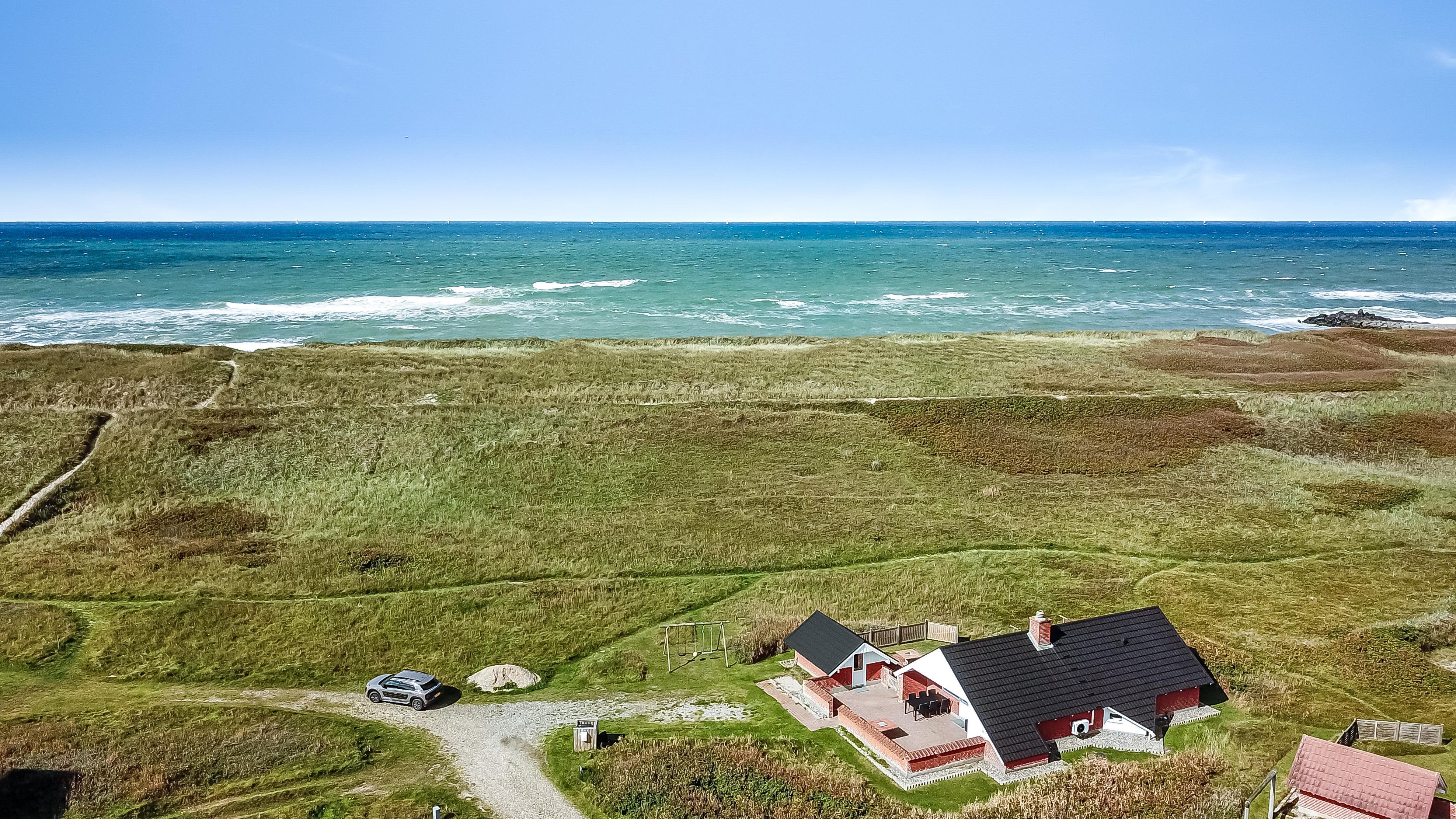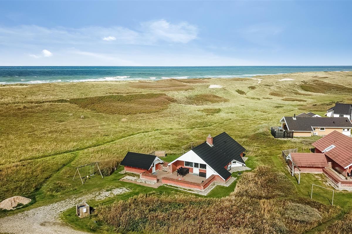 Ausgang zur eingezäunten, teilweise überdachten Terrasse mit Gartenmöbeln und Grill. Das Haus liegt auf einem 4.000 qm großen Naturgrundstück bloß 100 m von der Nordsee entfernt und dicht am Ferring See. Laden Sie Ihre Batterien mit einem guten Buch oder z. B. mit langen Wanderungen in ruhiger Umgebung auf. Genießen Sie die die Lage und das Rauschen von der Nordsee auf aber eingezäunten Terrasse, die perfekt ist, wenn Sie Kinder oder Haustiere mitbringen. Besuchen Sie eine von den vielen Attraktionen, die Sie innerhalb von max. 30 Minuten erreichen können oder besuchen Sie das Fischerdorf Thyborøn oder die schöne Handelsstadt Lemvig mit vielen Spezialgeschäften. In den Sommermonaten können Sie Kleinigkeiten bei Bovbjerg Camping bekommen.
