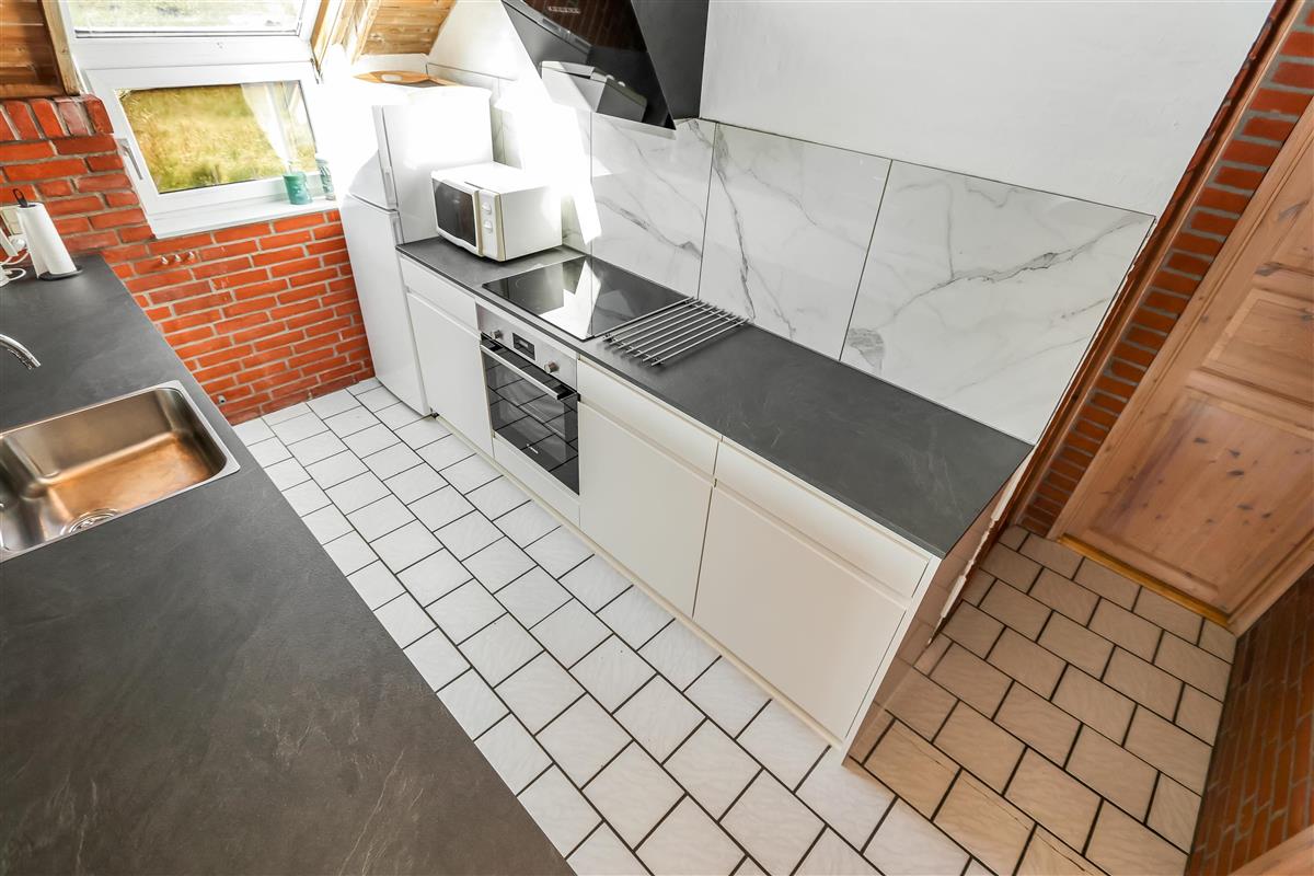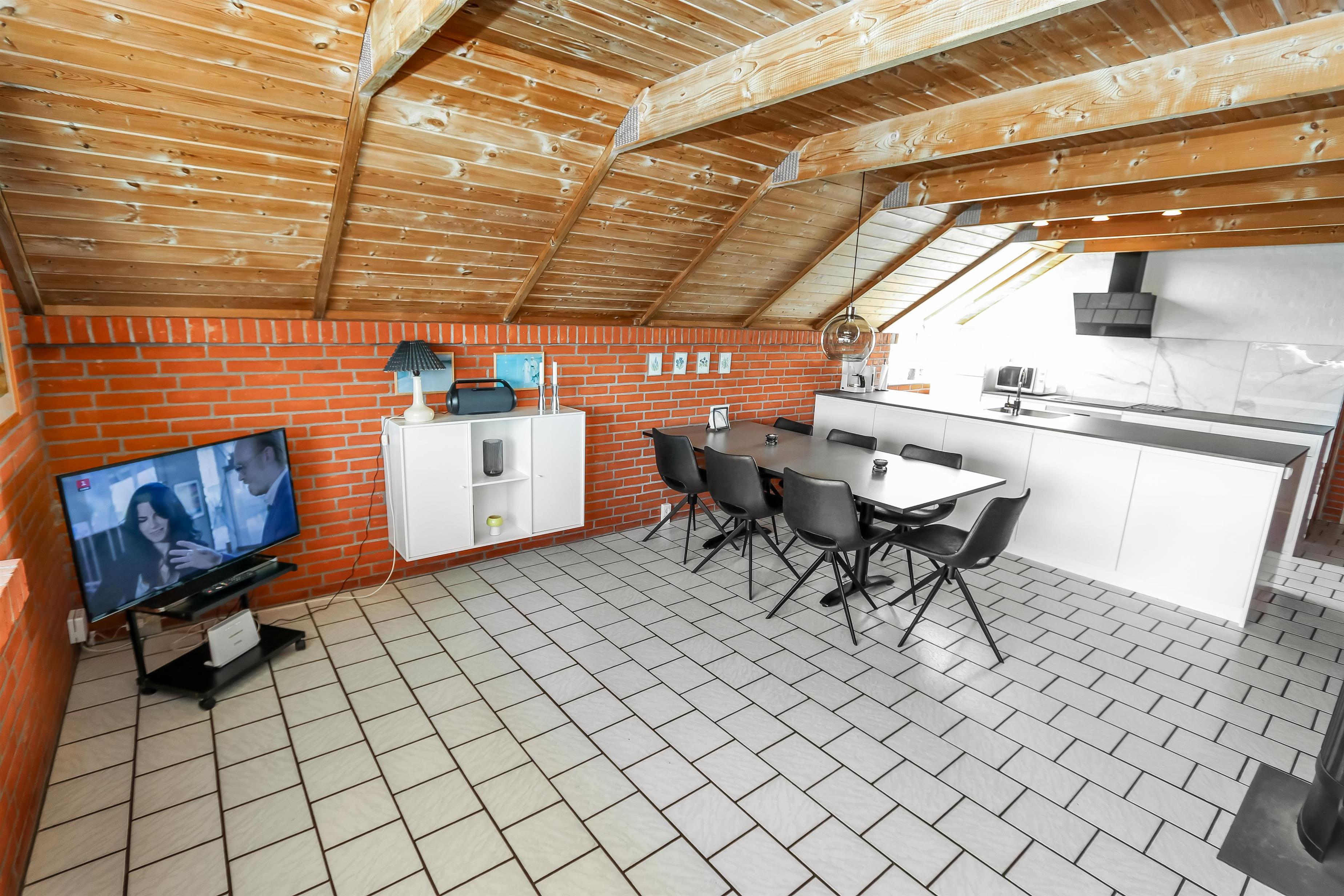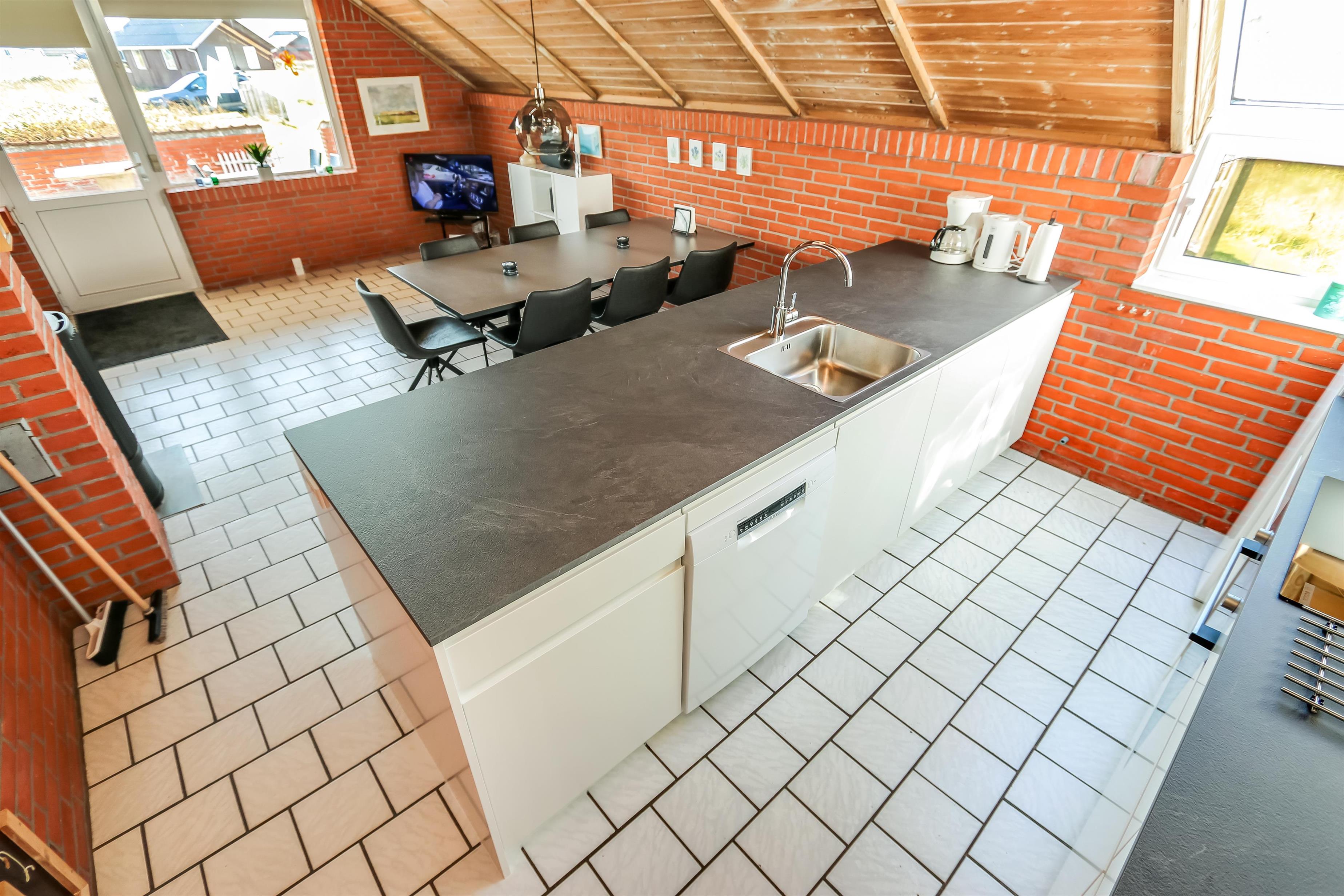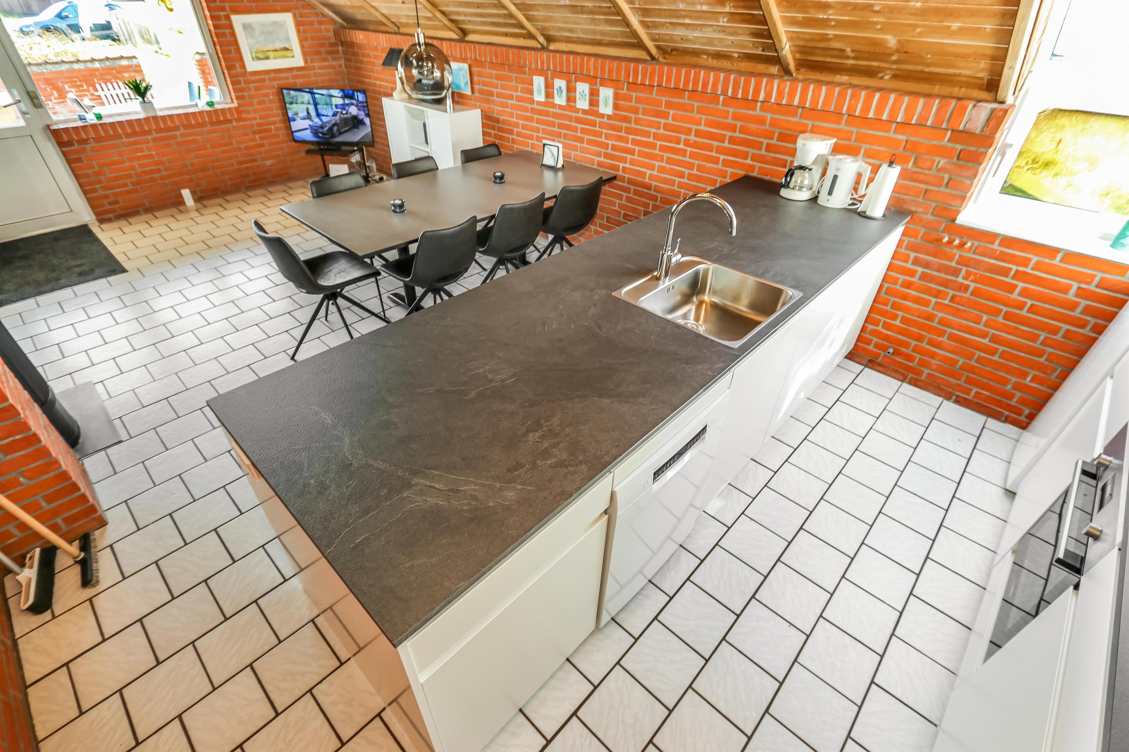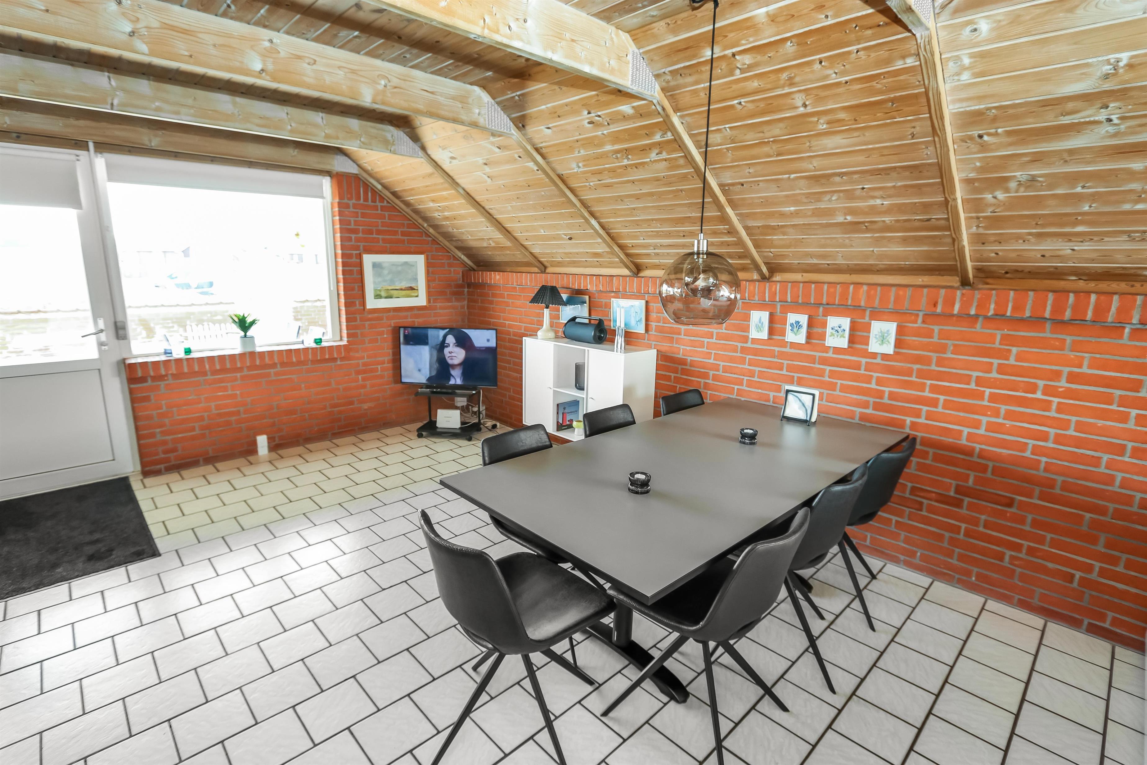 Ausgang zur eingezäunten, teilweise überdachten Terrasse mit Gartenmöbeln und Grill. Das Haus liegt auf einem 4.000 qm großen Naturgrundstück bloß 100 m von der Nordsee entfernt und dicht am Ferring See. Laden Sie Ihre Batterien mit einem guten Buch oder z. B. mit langen Wanderungen in ruhiger Umgebung auf. Genießen Sie die die Lage und das Rauschen von der Nordsee auf aber eingezäunten Terrasse, die perfekt ist, wenn Sie Kinder oder Haustiere mitbringen. Besuchen Sie eine von den vielen Attraktionen, die Sie innerhalb von max. 30 Minuten erreichen können oder besuchen Sie das Fischerdorf Thyborøn oder die schöne Handelsstadt Lemvig mit vielen Spezialgeschäften. In den Sommermonaten können Sie Kleinigkeiten bei Bovbjerg Camping bekommen.