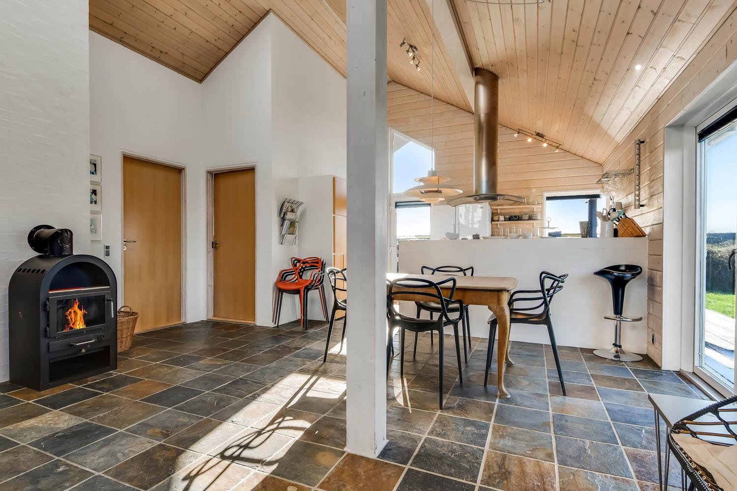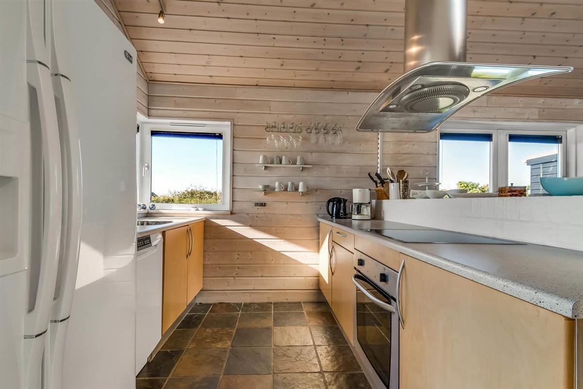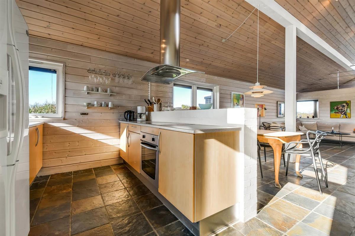 Gut zu nutzendes Ferienhaus mit etwa 93 m², im Jahr 2007 erbaut. Das Haus hat 2 Schlafräume: 1DB + 1DS und 1E. Im Haus gibt es auch einen offenen Schlafboden, es handelt sich um eine kleine Höhle mit 2 Schaumstoffmatratzen und eine Höhle mit einem kleinen Fernseher. Sie können auch Spielekonsolen hinzufügen. Das Loft übt auf viele Kinder und kindliche Seelen große Begeisterung aus. Das Haus ist modern, geschmackvoll und praktisch eingerichtet und ist in schönen, abgestimmten Farben gehalten. Schon wenn Sie Ihr Auto beim Haus geparkt haben, sehen Sie, dass dieses Haus ganz speziell ist. Ein kleiner Flur, der mit der Küchenecke kombiniert heiß Sie willkommen. Die Küche verfügt über alles an Geschirr und Kochgeschirr. Es gibt einen Herd mit einem Cerankochfeld, Abzugshaube, eingebautem Ofen, Geschirrspüler, amerikanischen Kühl-/Gefrierschrank. Im Wohnraum gibt es z.B. einen Esstisch dicht an der Küche, Fernseher mit dänischen und deutschen Programmen, Apple TV, schöne Polster Eckcouch und einen gemütlichen Kaminofen. Aufenthaltsräume sind in Kip gebaut und verfügen über praktische Fliesenböden mit Fussbodenheizung. Es macht das Haus luftig, modern und sehr reinigungsfreundlich. Schönes Badezimmer mit Toilette, Waschbecken, gemauerte Dusche und Fliesenboden mit Fussbodenheizung. Extra Toilette mit Toilette, Waschbecken, Fliesenboden mit Fussbodenheizung und Waschmaschine. Nichtraucher-Haus. Max. 1 Haustier ist erlaubt.