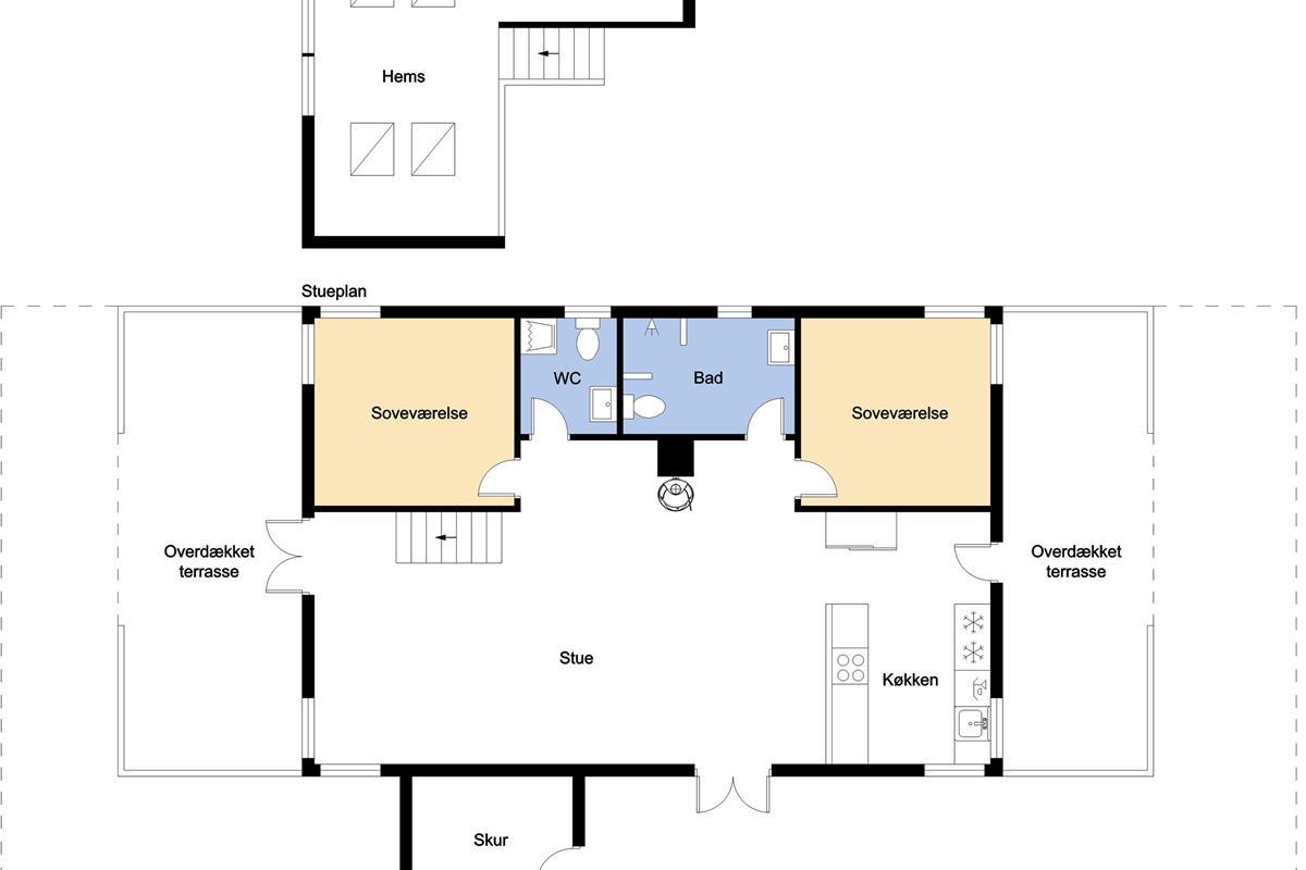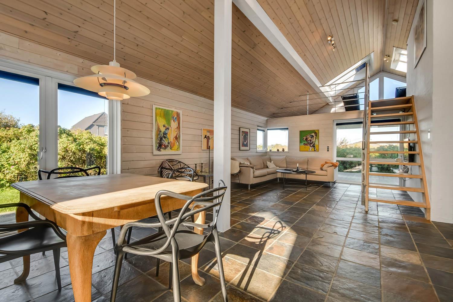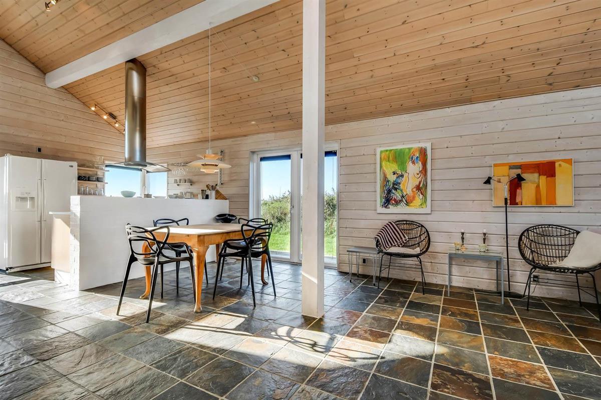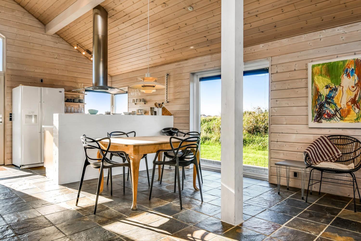 Gut zu nutzendes Ferienhaus mit etwa 93 m², im Jahr 2007 erbaut. Das Haus hat 2 Schlafräume: 1DB + 1DS und 1E. Im Haus gibt es auch einen offenen Schlafboden, es handelt sich um eine kleine Höhle mit 2 Schaumstoffmatratzen und eine Höhle mit einem kleinen Fernseher. Sie können auch Spielekonsolen hinzufügen. Das Loft übt auf viele Kinder und kindliche Seelen große Begeisterung aus. Das Haus ist modern, geschmackvoll und praktisch eingerichtet und ist in schönen, abgestimmten Farben gehalten. Schon wenn Sie Ihr Auto beim Haus geparkt haben, sehen Sie, dass dieses Haus ganz speziell ist. Ein kleiner Flur, der mit der Küchenecke kombiniert heiß Sie willkommen. Die Küche verfügt über alles an Geschirr und Kochgeschirr. Es gibt einen Herd mit einem Cerankochfeld, Abzugshaube, eingebautem Ofen, Geschirrspüler, amerikanischen Kühl-/Gefrierschrank. Im Wohnraum gibt es z.B. einen Esstisch dicht an der Küche, Fernseher mit dänischen und deutschen Programmen, Apple TV, schöne Polster Eckcouch und einen gemütlichen Kaminofen. Aufenthaltsräume sind in Kip gebaut und verfügen über praktische Fliesenböden mit Fussbodenheizung. Es macht das Haus luftig, modern und sehr reinigungsfreundlich. Schönes Badezimmer mit Toilette, Waschbecken, gemauerte Dusche und Fliesenboden mit Fussbodenheizung. Extra Toilette mit Toilette, Waschbecken, Fliesenboden mit Fussbodenheizung und Waschmaschine. Nichtraucher-Haus. Max. 1 Haustier ist erlaubt.
