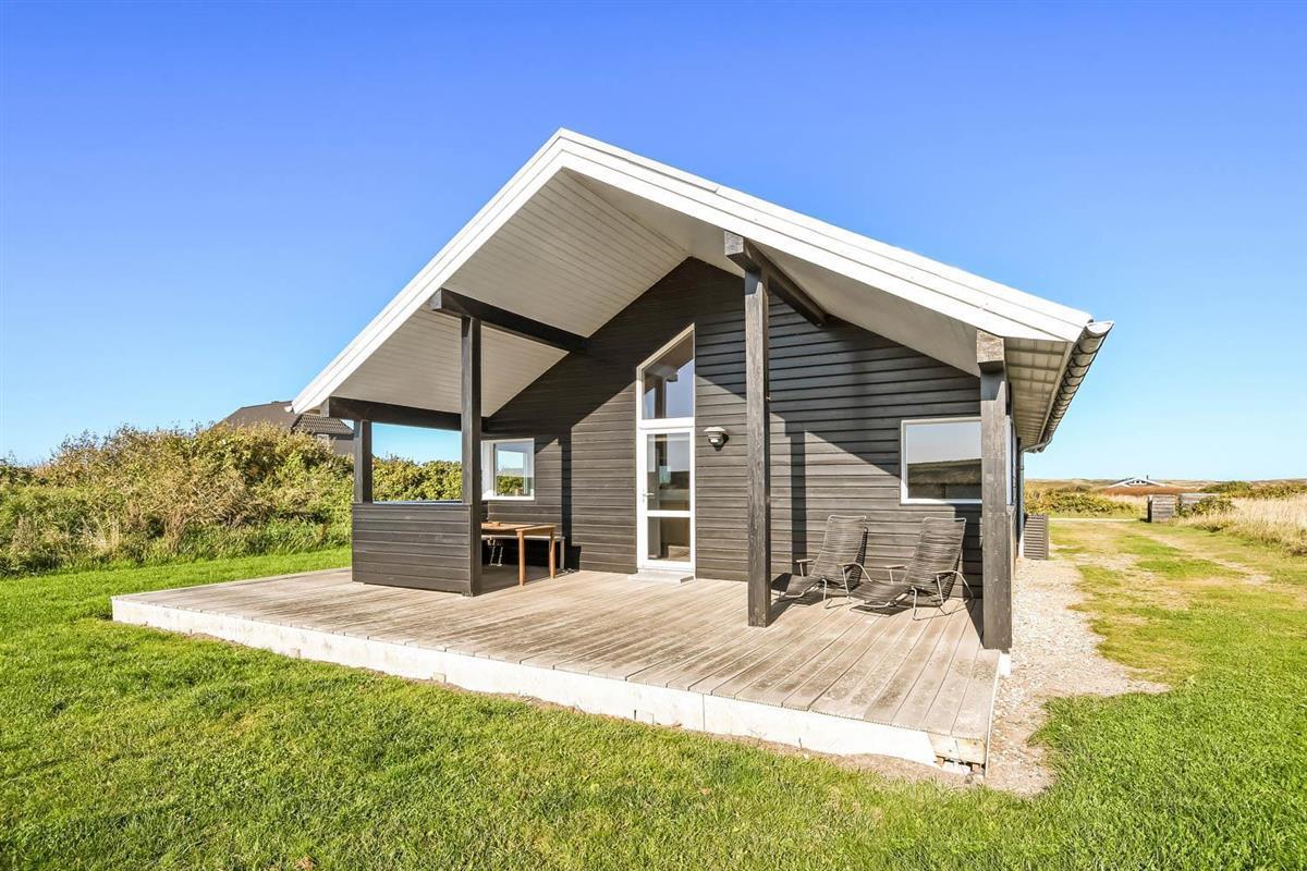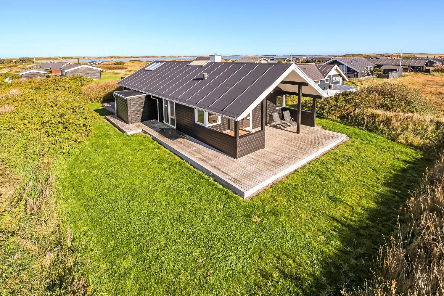 Schönes modernes Holzhaus mit Blick zum Ferring See und den hohen Dünen an der Nordsee im Hinterrund. Perfekt für Paare und auch Familien mit bis zu 6 Personen.