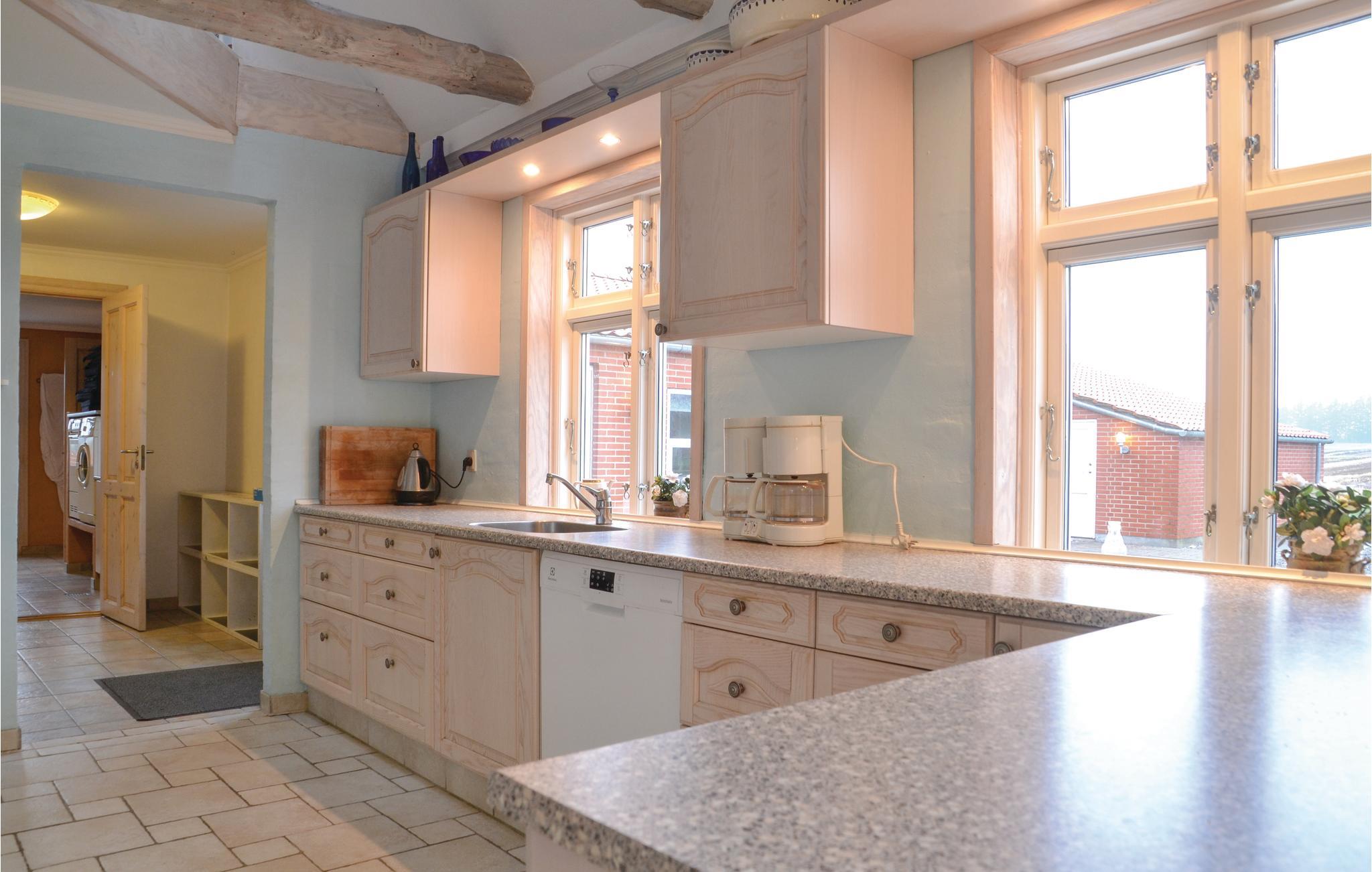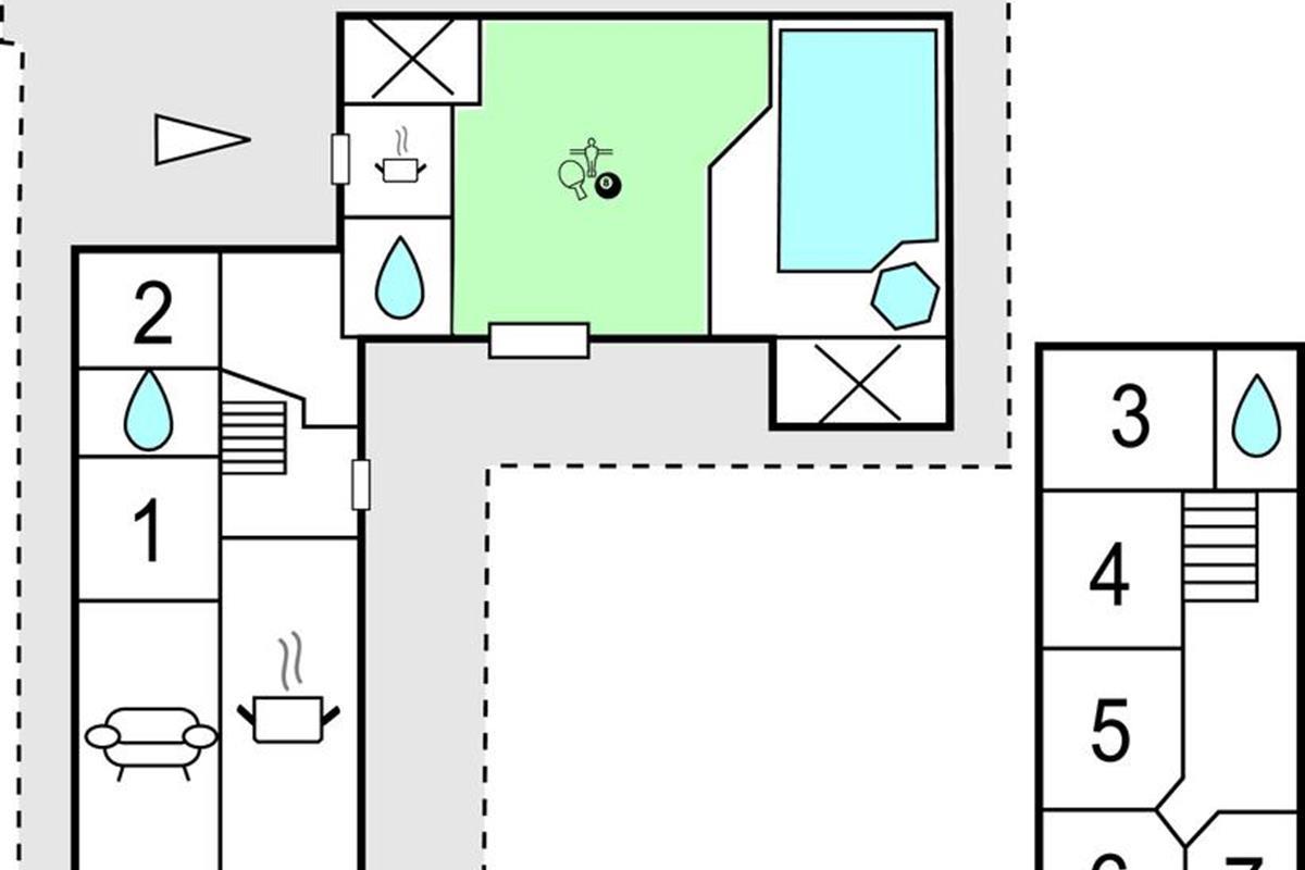 Het huis biedt alles voor een ontspannen maar ook actieve vakantie. U heeft hier bijvoorbeeld een heerlijk zwembad met kinderbad, een grote whirlpool voor 6 personen en een activiteitenruimte met tafeltennis en airhockey waar u op de gezellige banken films kunt kijken. Deze ruimte is ook geschikt voor grotere gezelschappen, omdat er een extra keuken aan grenst. Op het ruime terrein, met 20.000 m², ligt een meertje met een zandstrand. Op het terras is een open haard en een trampoline aanwezig. Het huis en het zwembad worden verwarmd met geothermische en zonne-energie, waardoor verwarmingskosten worden bespaard. Het is niet ver naar Grindsted of Billund, waar Legoland, Legohouse, Lalandia en Givskud Zoo op u wachten. Het vismeer Filskov Fiskesø ligt ook in de buurt. Het bestaat uit twee vismeren en een kindermeer met kleinere vissen. In de meren kunt u onder andere regenboogforel, bronforel en bruine forel vangen. De borg en de eindschoonmaak zijn contant te betalen bij het huis.