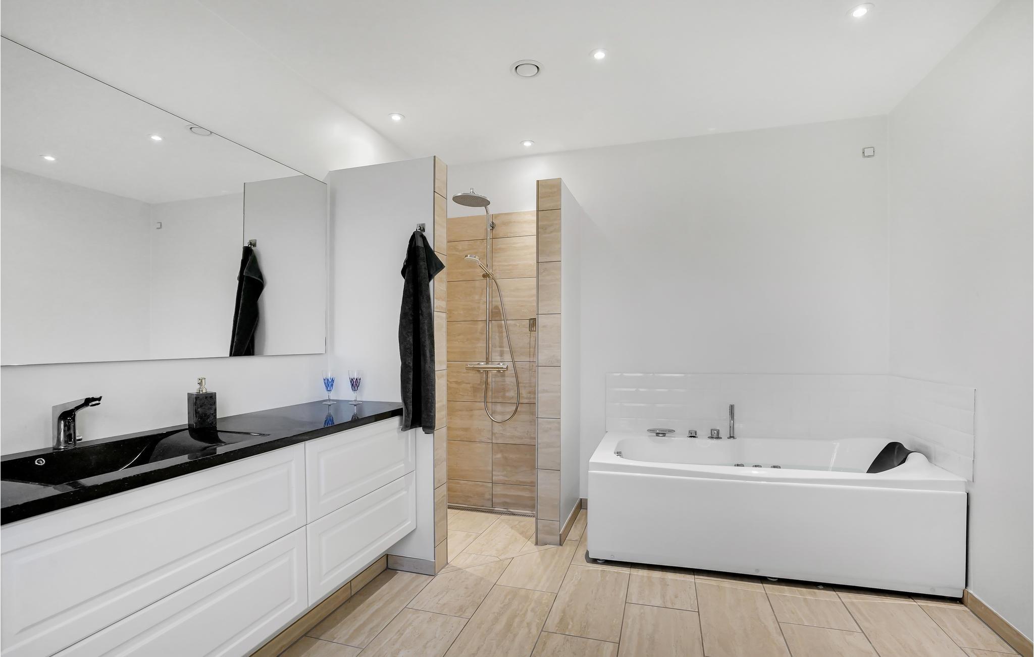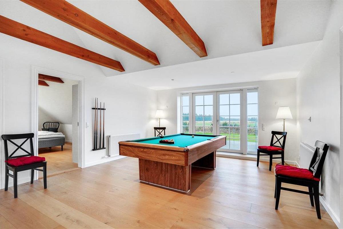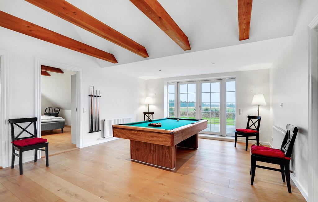 Dit uitnodigende vakantiehuis ligt op een ruim perceel met veel ruimte. Op twee niveaus wacht een licht en modern interieur met mooie meubels en veel natuurlijk licht op je in het huis op 300 m². Schuif aan rond de grote eettafel met uitzicht op de tuin en breng gezellige avonden of een heerlijk ontbijt met elkaar door. De comfortabele sofa's nodigen je uit om ontspannende uren door te brengen met een goed boek of een spannende avond tv te kijken. Dankzij de biljarttafel en de whirlpool hoef je je gegarandeerd niet te vervelen, zelfs niet als het slecht weer is.