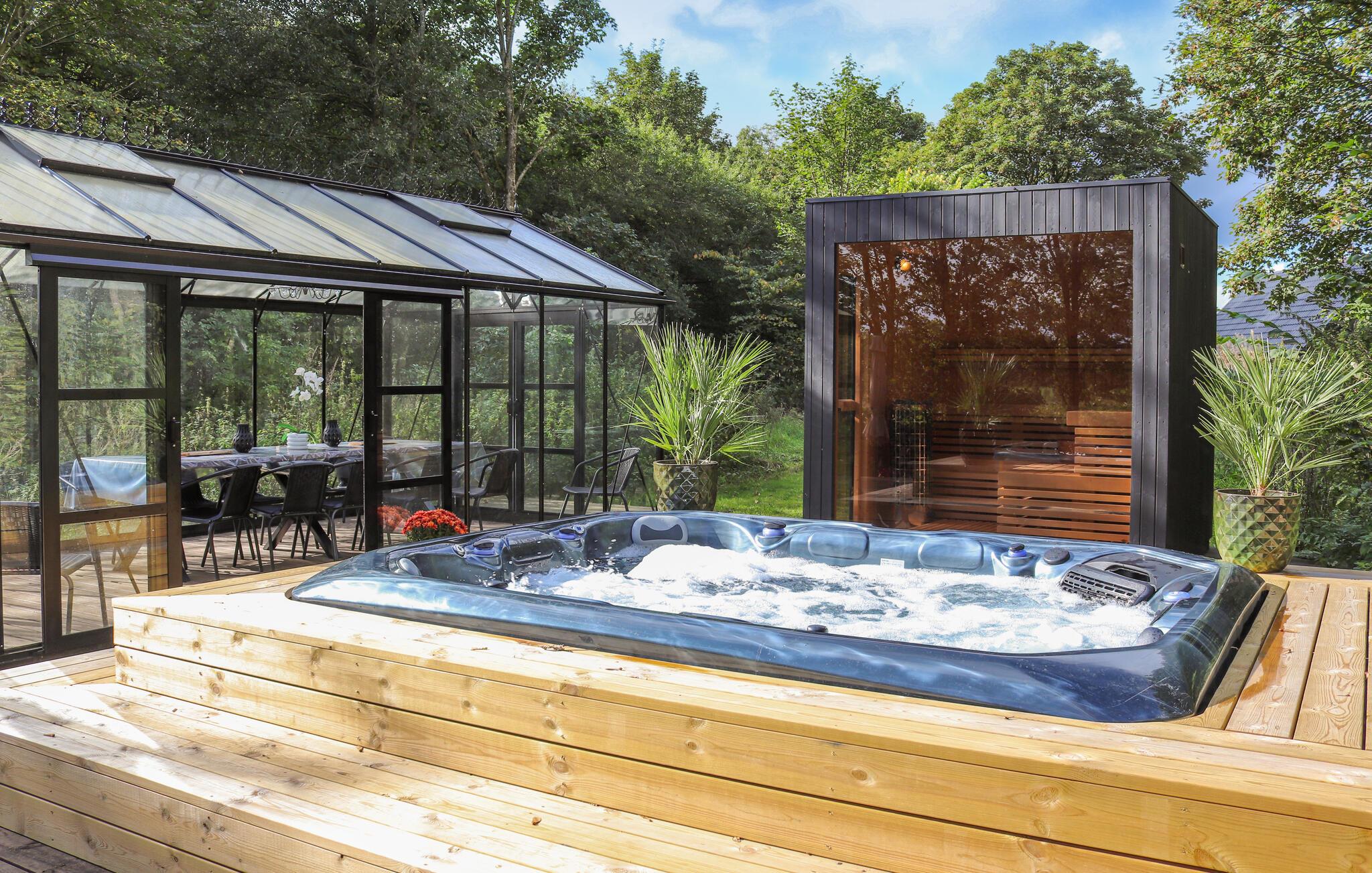 Er is genoeg ruimte voor alle gasten op het grote terrein in een schilderachtige, landelijke omgeving. Speel in de tuin met de kinderen op de trampoline of in de zandbak. Geniet van het uitzicht vanuit de grote hot tub op het mooie houten terras bij het meer, blijf hier hangen na een saunagang of breng een sterrennacht door in de schuilkelder. Er is nog een ruim vakantiehuis van dezelfde eigenaar in de directe omgeving, dat geboekt kan worden op basis van beschikbaarheid.