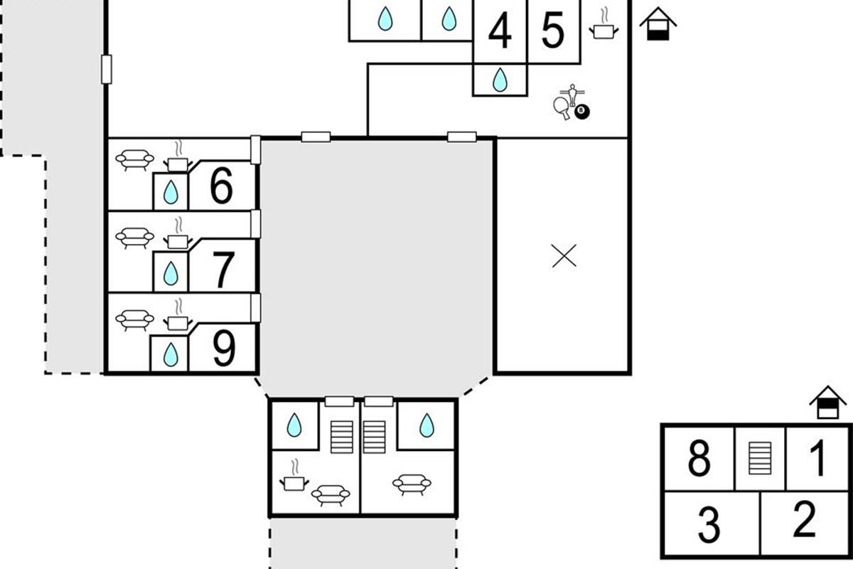 Welkom in dit ruime vakantiehuis, dat geschikt is voor grotere gezelschappen of meerdere families. Naast de grote, mooie feestzaal, die geschikt is voor 80 gasten, vind je op het enorme landgoed een aantal appartementen en kamers die geschikt zijn voor koppels, collega's of gezinnen met kleine kinderen. De huizen zijn ingericht in heldere kleuren en smaakvol gemeubileerd. De loungeruimte met bar, biljart en tafeltennis, die grenst aan de feestzaal, is een geweldige plek om plezier te maken.