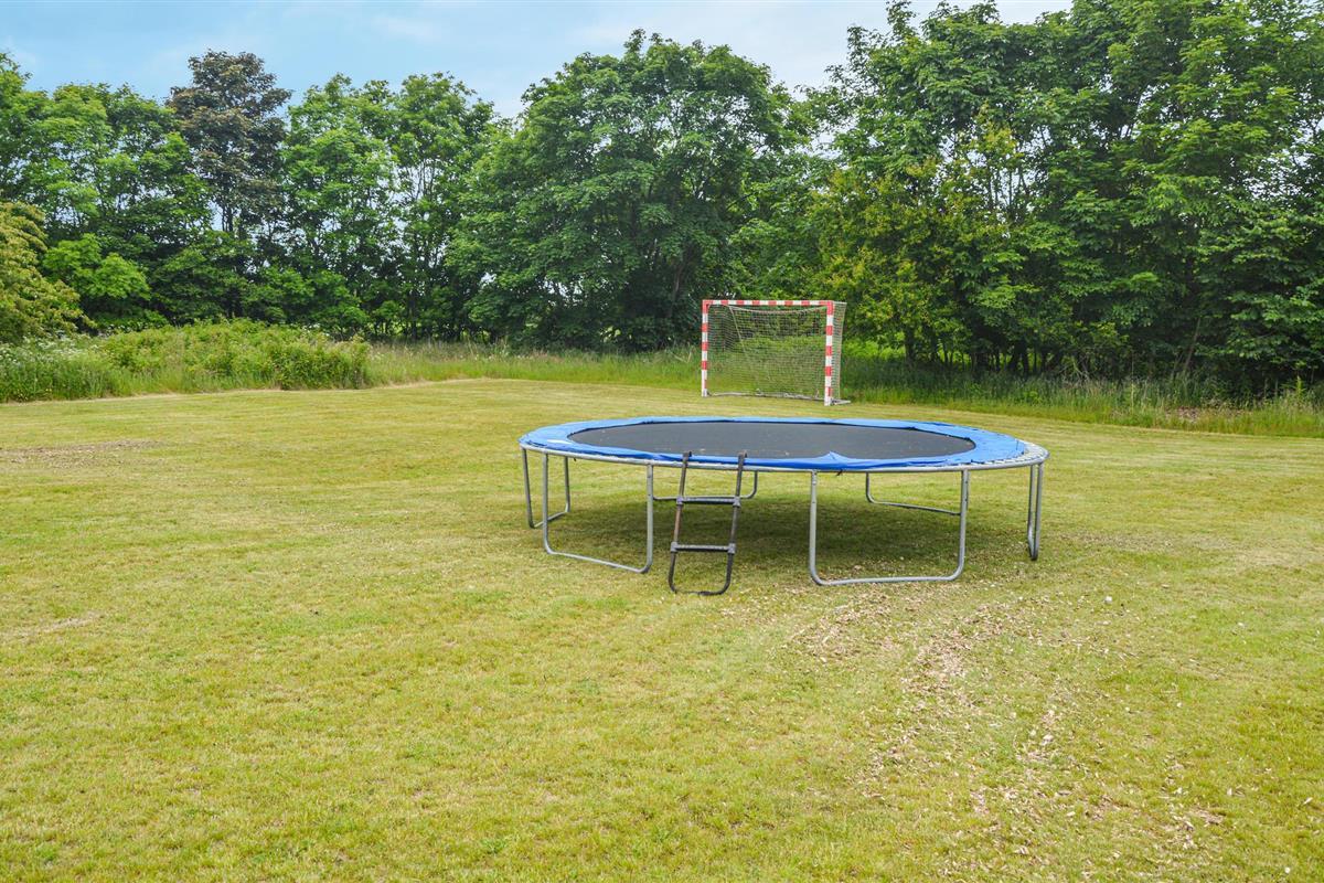 Het uitgestrekte terrein is ideaal voor allerlei activiteiten. Speel frisbee of voetbal, ontspan in het Finse houten bad en laat de kinderen rondrennen op de trampoline. Kom 's avonds samen rond de vuurplaats of organiseer een sfeervolle barbecue.