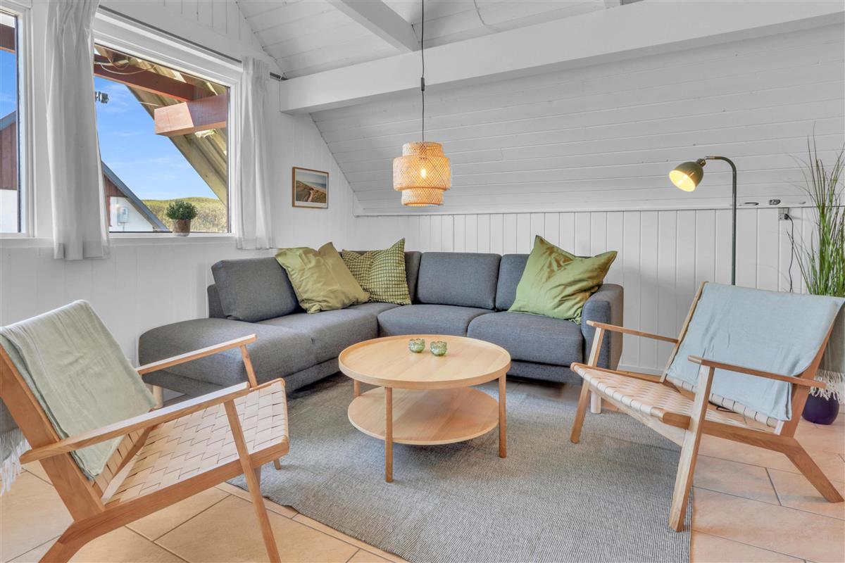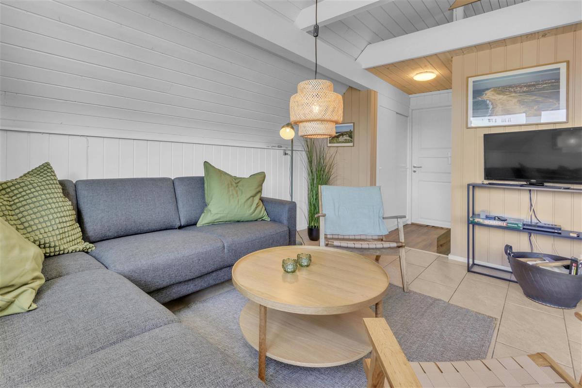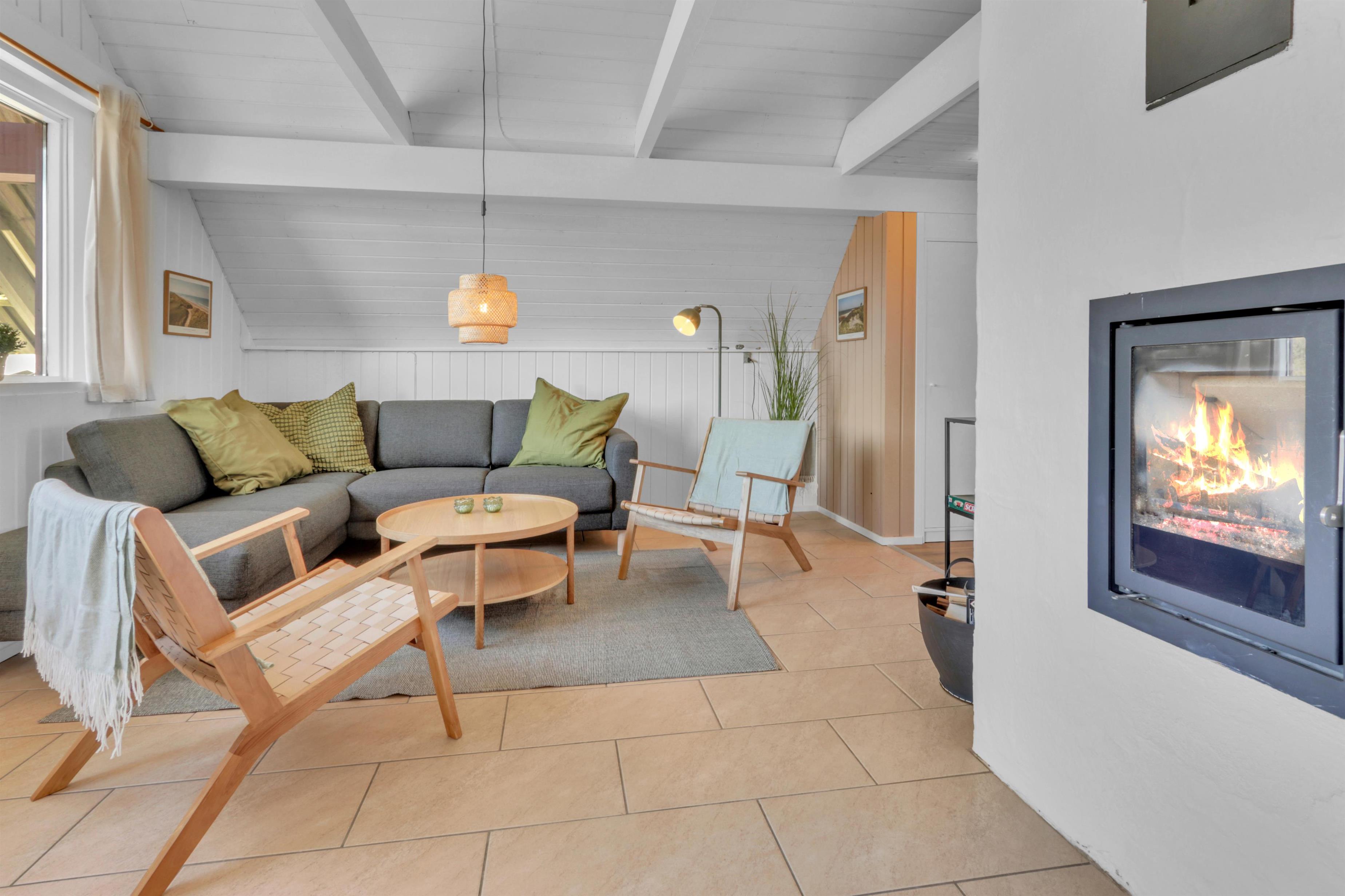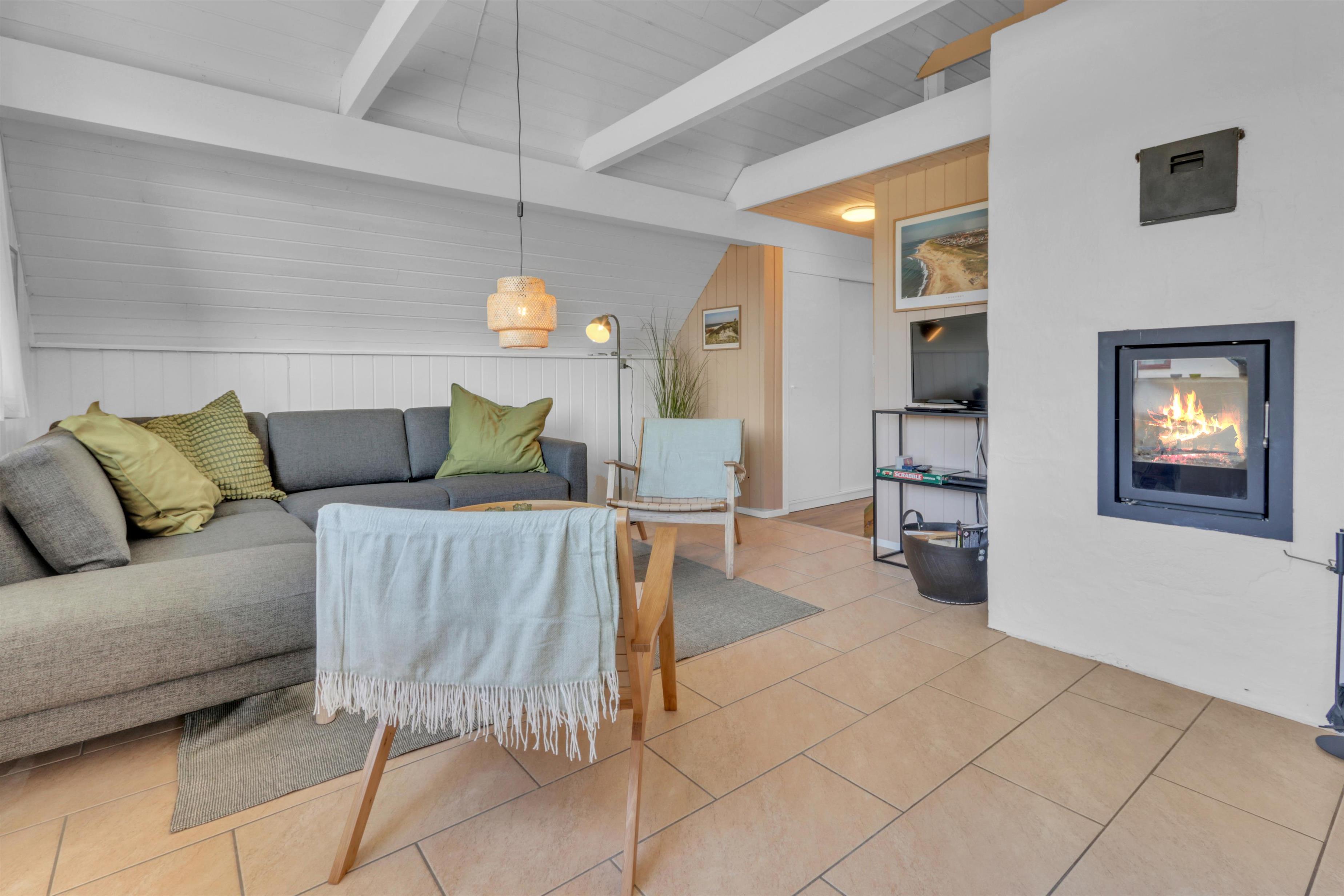 Das Ferienhaus ist 90 m² groß und wurde 2025 renoviert. Das Herzstück des Hauses ist das helle und einladende Wohnzimmer. Hier gibt es bequeme Polstermöbel sowie einen Fernseher mit dänischen und deutschen Kanälen. Eine Wärmepumpe und ein gemütlicher Kaminofen sorgen an kühlen Tagen für eine angenehme Atmosphäre und Wärme.