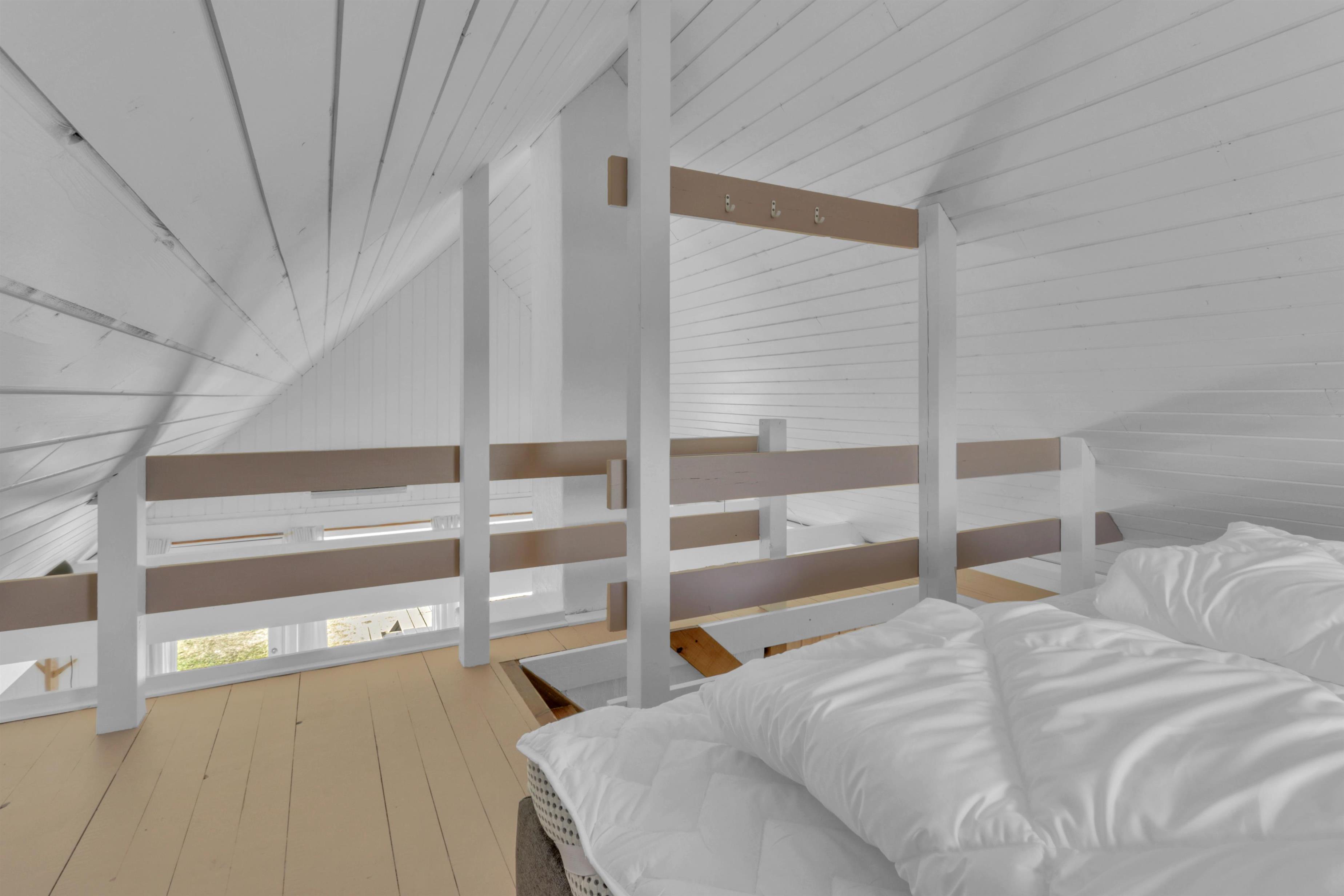 Im Ferienhaus gibt es zwei gemütliche Schlafzimmer im Erdgeschoss sowie einen charmanten Hems (Schlafboden). In dem einem Schlafzimmer steht en 3/4 Bett, in dem anderen ein Einzelbett. Auf dem Hems befindet sich ein Doppelbett.
