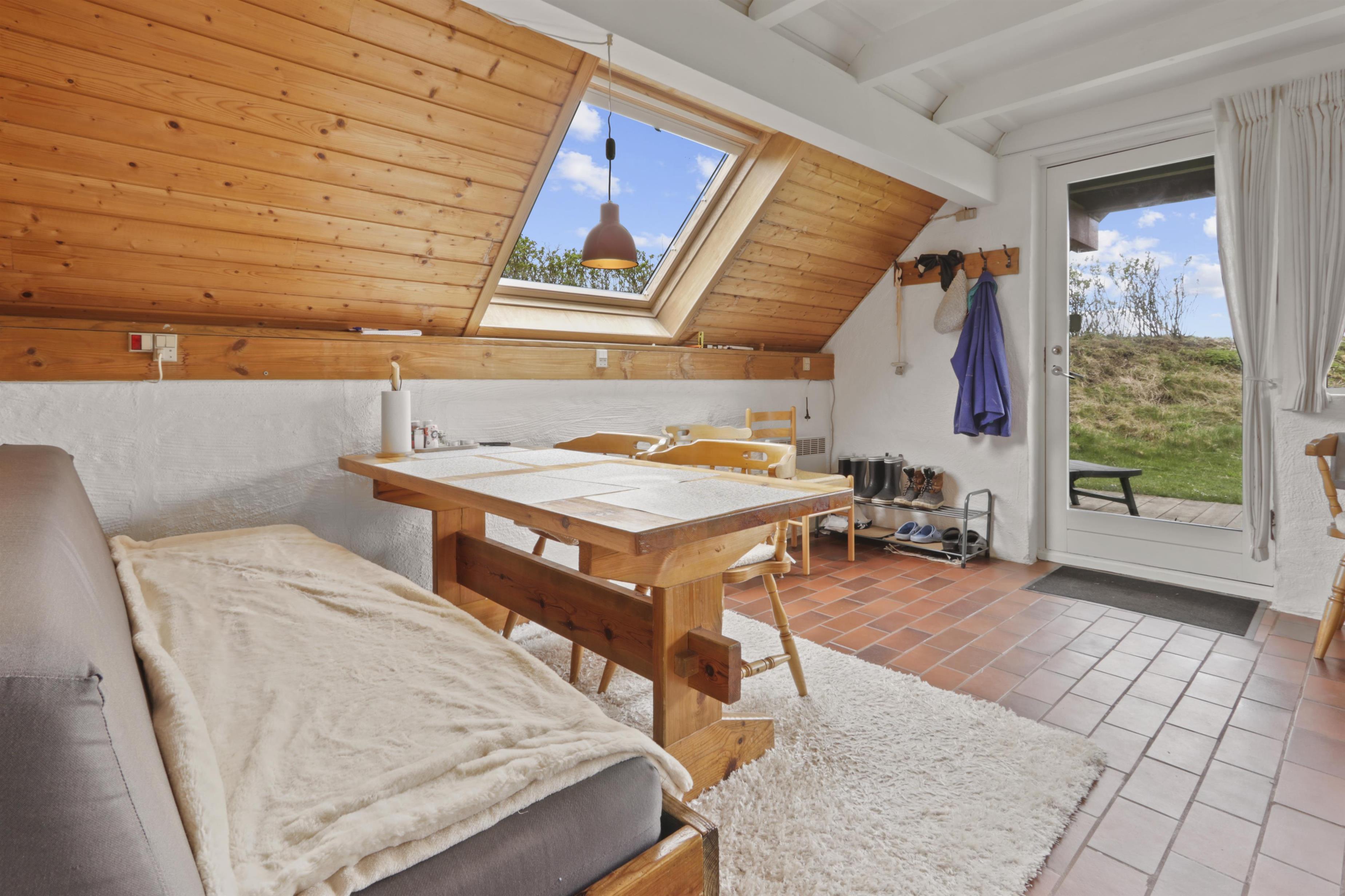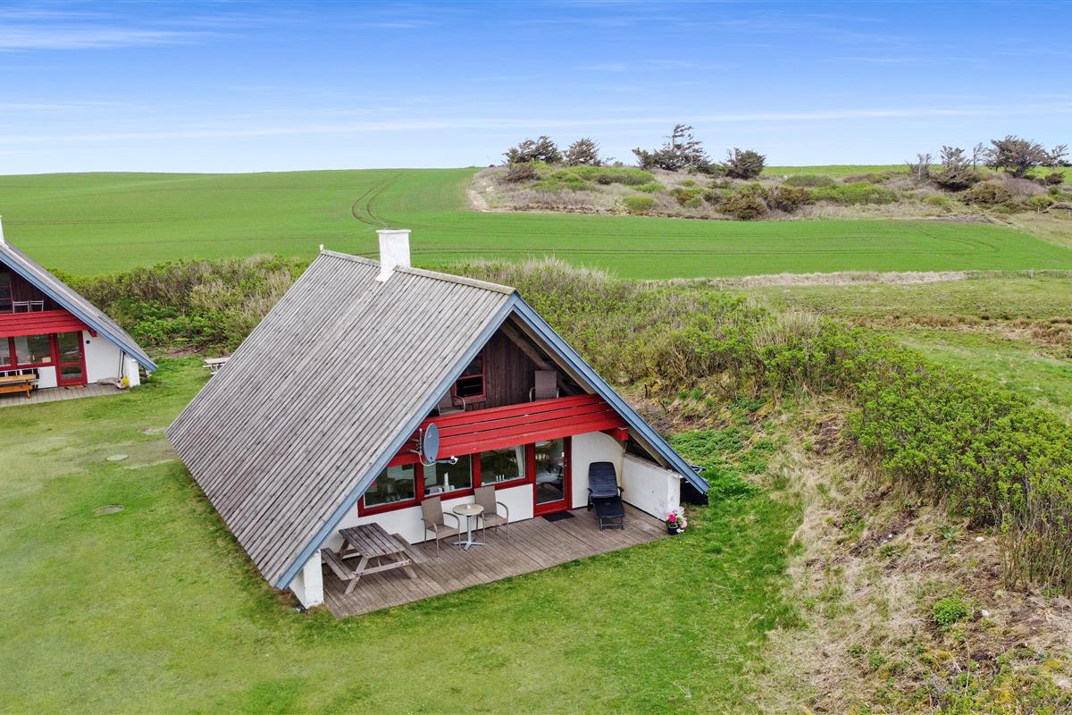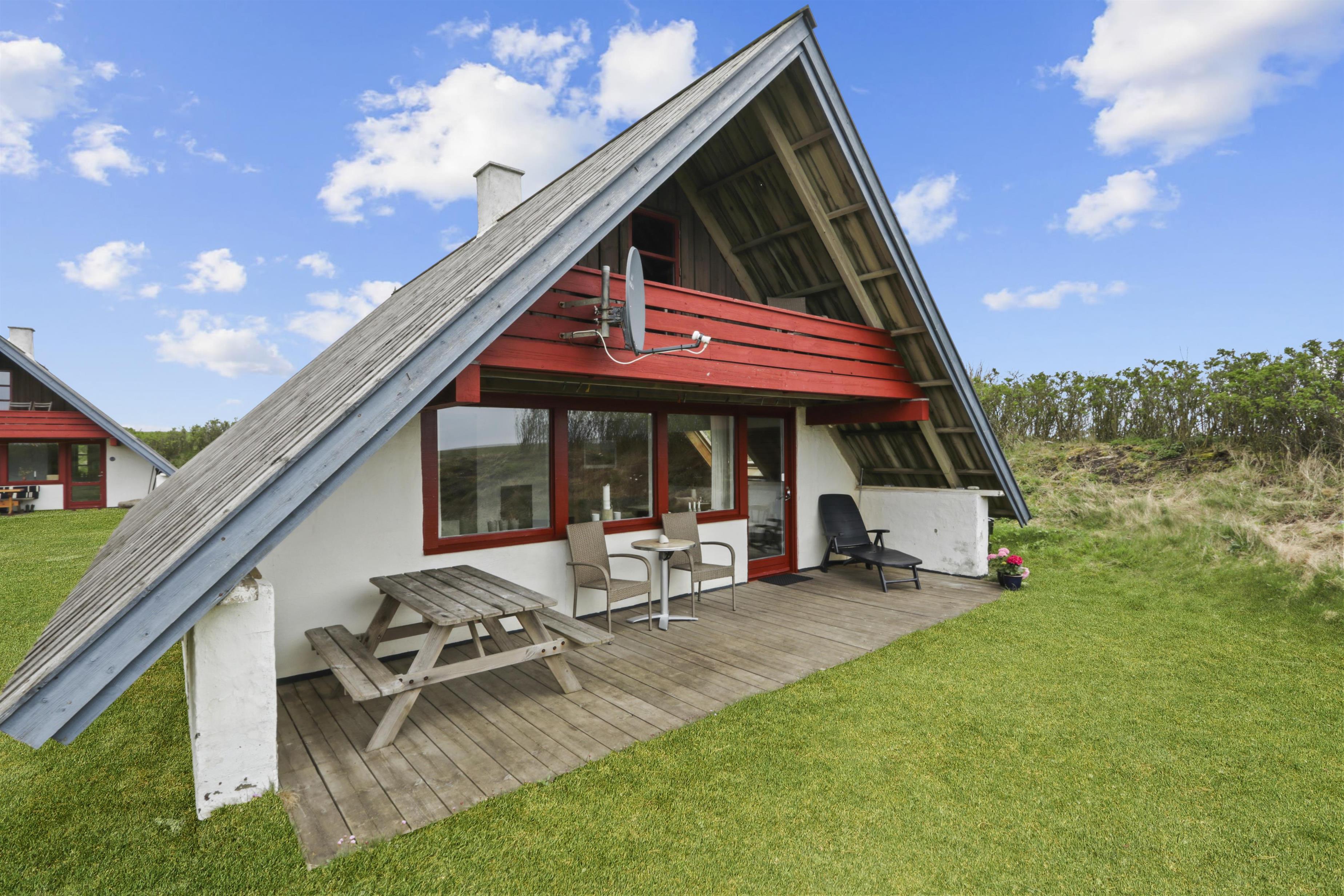 Vom Wohnraum gibt es einen Ausgang zur kleinen, überdachten Terrasse mit Gartenmöbeln, 2 Sonnenliegen und Grill; vom Balkon im 1 Stock gibt es einen Blick zur Nordsee. Das Haus ist ein Teil von Fjaltring Ferieby. Die ganze Feriensiedlung liegt in einem schönen “Topf” im geschützen Dünenbereich, nur etwa 200 m von der Nordsee entfernt. Beim Gemeinschaftshaus ist Elektro-Auto-Auflader zur Verfügung. Geniessen Sie einen ökonomischen Urlaub in einem ganz einfachen Haus in einer einmaligen Lage. Parken Sie das Auto und Sie können den Urlaub geniessen. Den Strand erreichen Sie unter 5 Minuten zu Fuss. Erleben Sie die tosende Nordsee, die jeden Tag ganz neue Erlebnisse anbietet. Laufen Sie am Strand entlang , oder erkunden Sie die vielen anderen Möglichkeiten der Gegend.