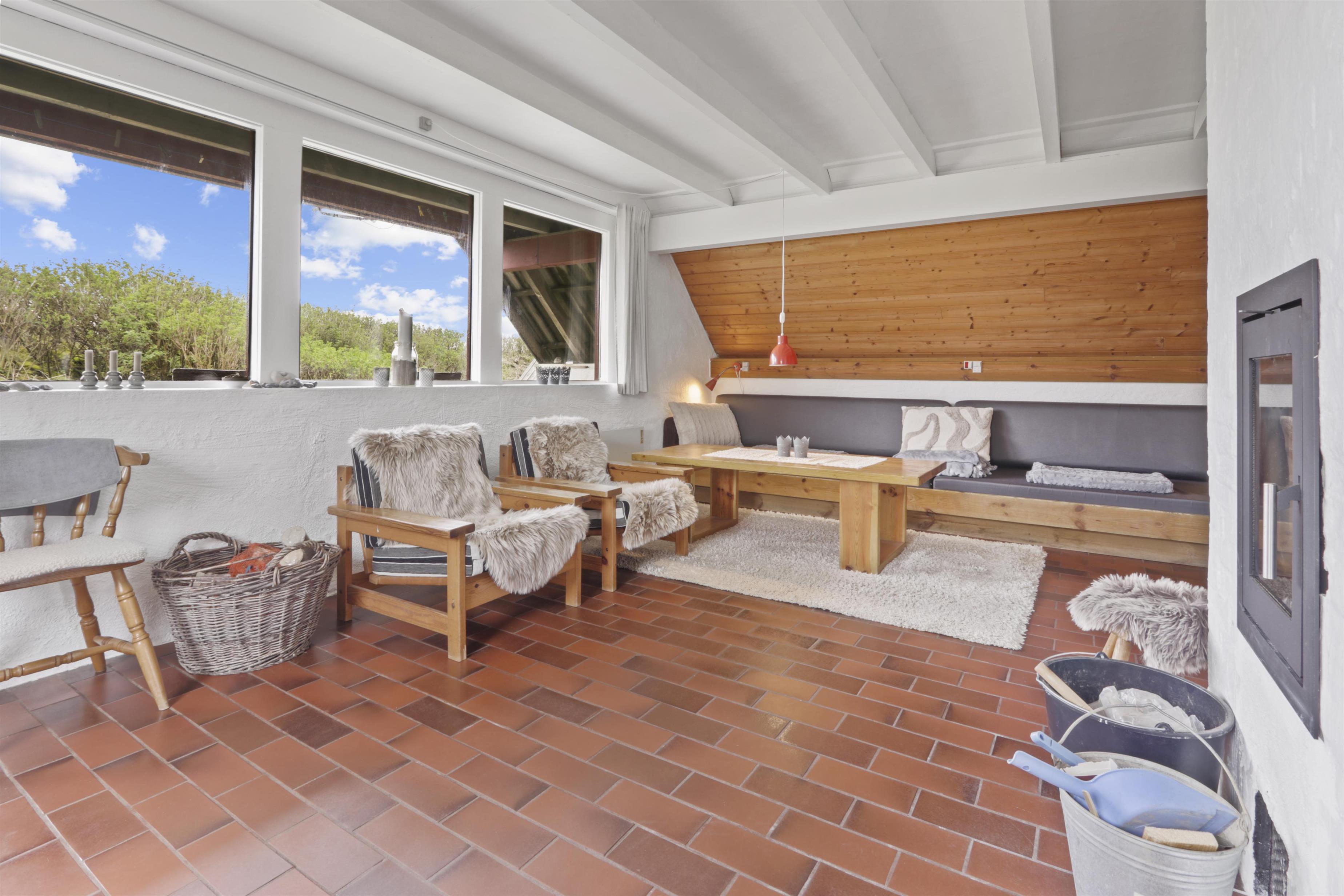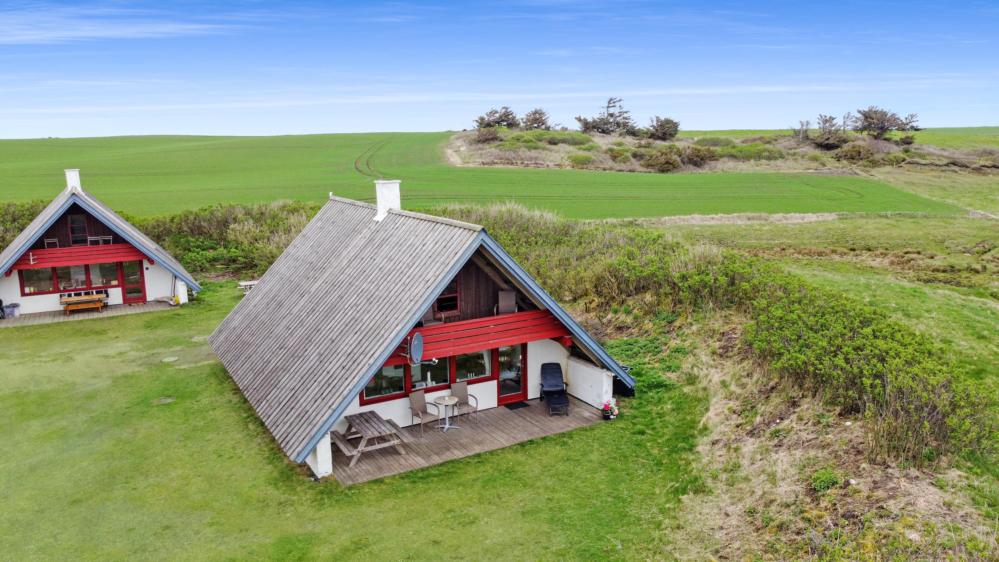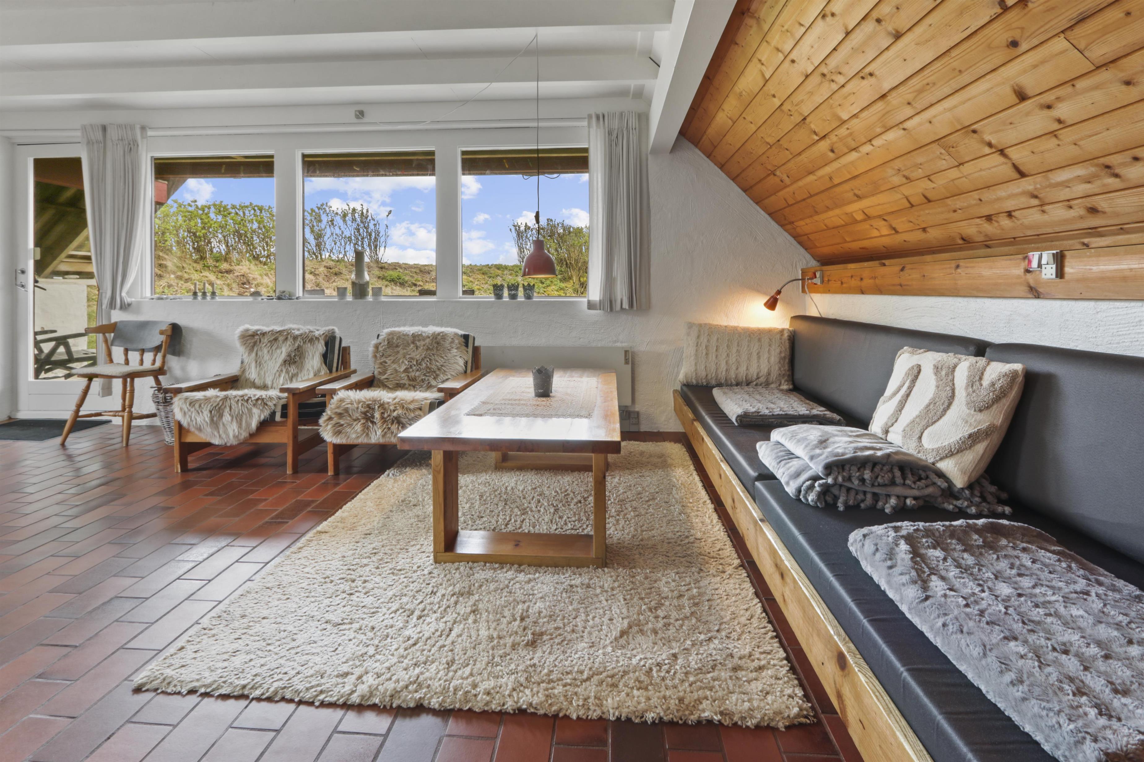 Vom Wohnraum gibt es einen Ausgang zur kleinen, überdachten Terrasse mit Gartenmöbeln, 2 Sonnenliegen und Grill; vom Balkon im 1 Stock gibt es einen Blick zur Nordsee. Das Haus ist ein Teil von Fjaltring Ferieby. Die ganze Feriensiedlung liegt in einem schönen “Topf” im geschützen Dünenbereich, nur etwa 200 m von der Nordsee entfernt. Beim Gemeinschaftshaus ist Elektro-Auto-Auflader zur Verfügung. Geniessen Sie einen ökonomischen Urlaub in einem ganz einfachen Haus in einer einmaligen Lage. Parken Sie das Auto und Sie können den Urlaub geniessen. Den Strand erreichen Sie unter 5 Minuten zu Fuss. Erleben Sie die tosende Nordsee, die jeden Tag ganz neue Erlebnisse anbietet. Laufen Sie am Strand entlang , oder erkunden Sie die vielen anderen Möglichkeiten der Gegend.