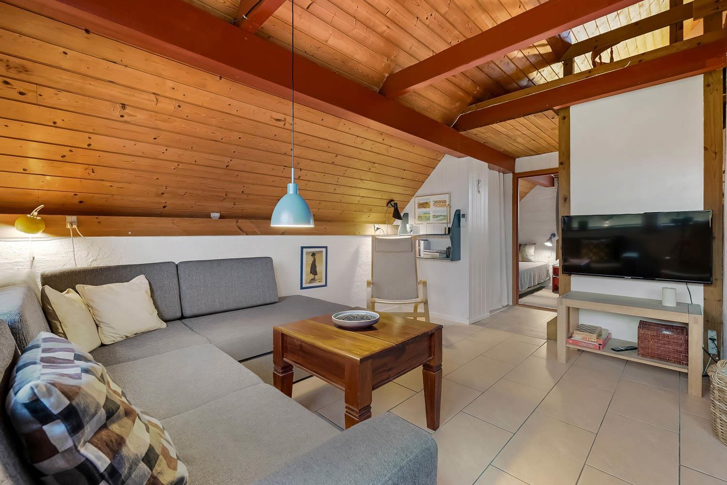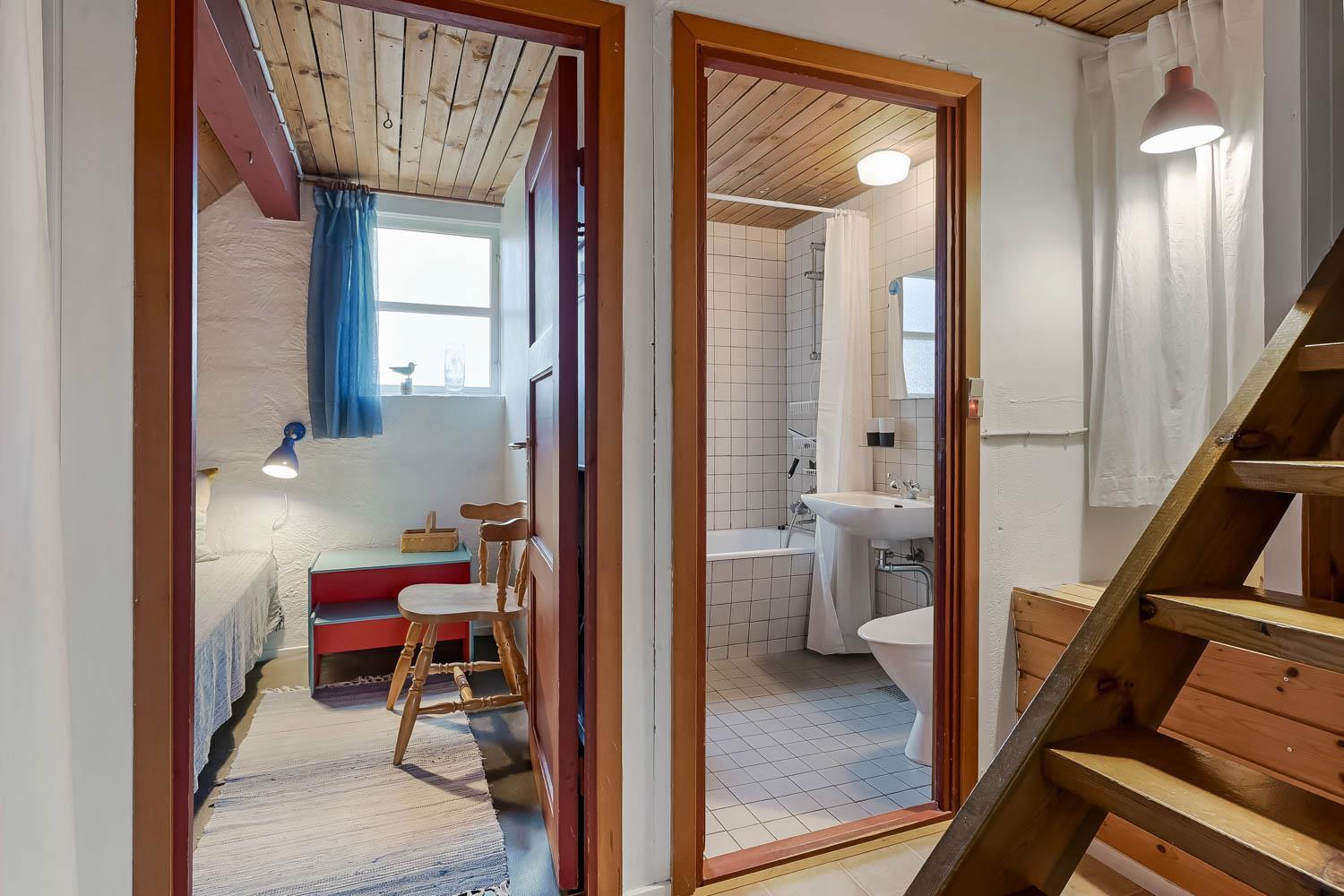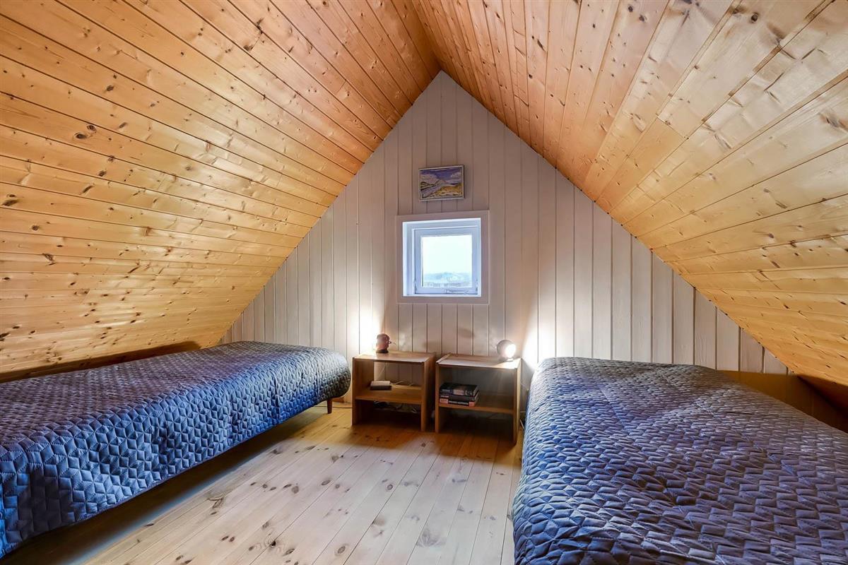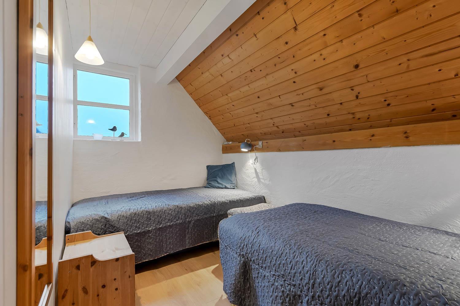 Im Erdgeschoss befinden sich zwei Schlafzimmer mit insgesamt drei Schlafplätzen. Außerdem gibt es einen Hems mit zwei großen Einzelbetten, die zu einem Doppelbett zusammengestellt werden können.