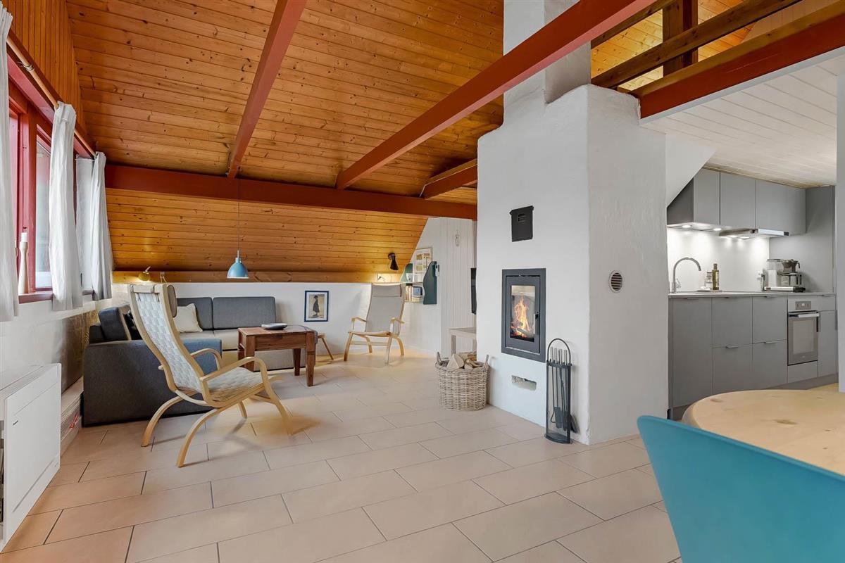 Das Ferienhaus ist ca. 90 m² groß und präsentiert sich nahezu vollständig renoviert. Es gibt ein gemütliches, helles Wohnzimmer mit hoher Decke. Die Möbel sind bequem, und an kühlen Abenden kann man es sich vor dem Kaminofen und/oder mit der Wärmepumpe angenehm machen.