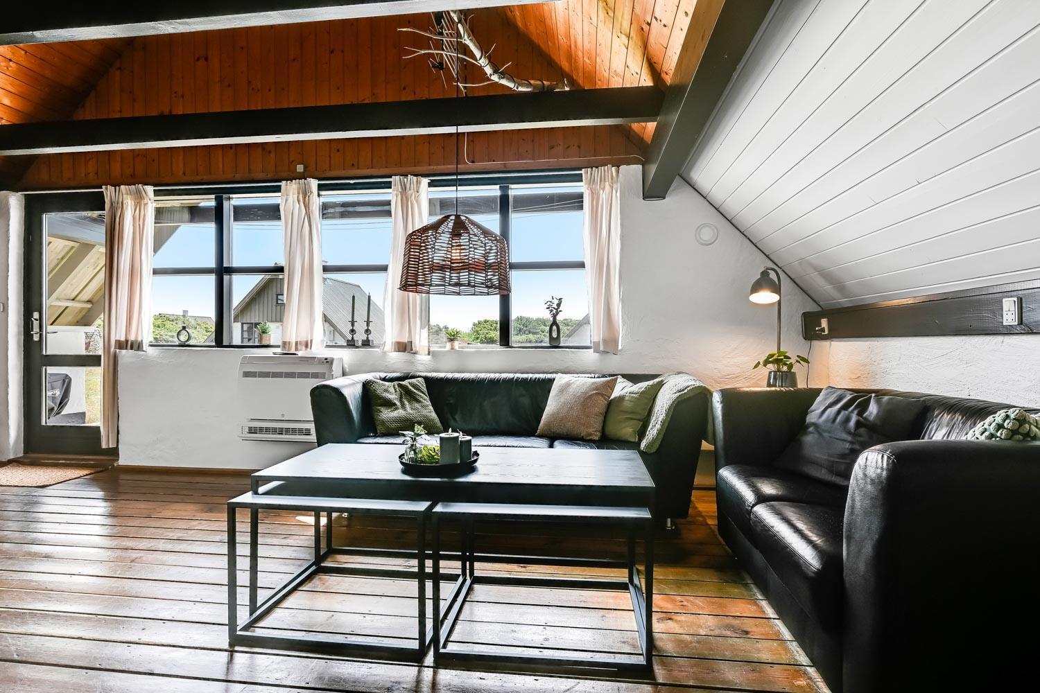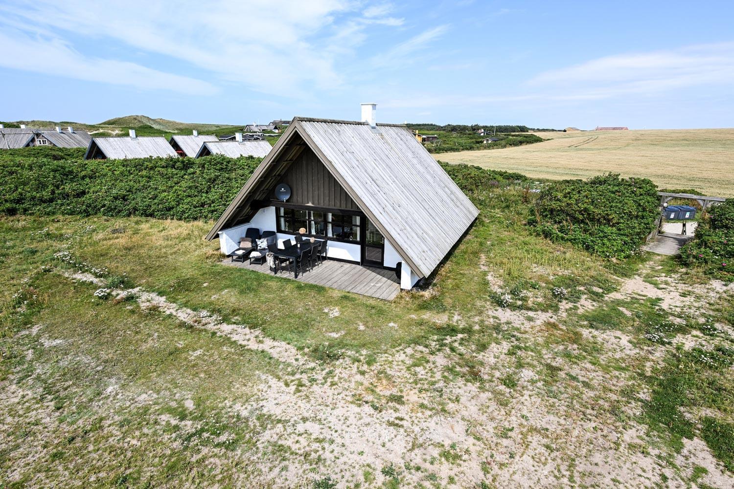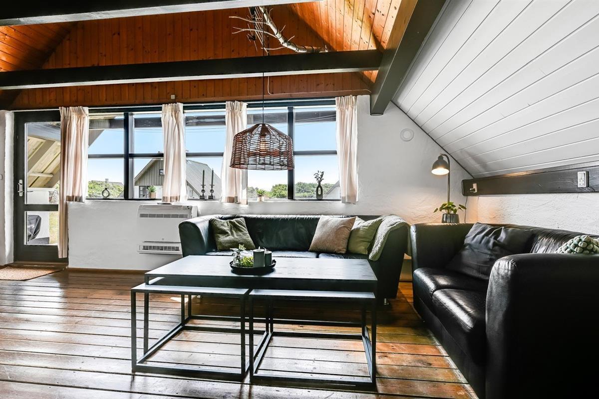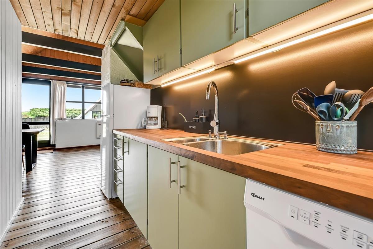 Vom Wohnraum ist ein Ausgang zur kleinen überdachten Terrasse mit Gartenmöbeln, 2 Sonnenliegen und einem Grill. Das Haus ist ein Teil von Fjaltring Ferieby , welches aus 25 ungefähr gleichen A-Häusern, die in 5 Zirkeln aufgeteilt sind. Die ganze Feriensiedlung liegt in einem schönen “Topf” im geschützen Dünenbereich, nur etwa 200 m von der Nordsee entfernt. Beim Gemeinschaftshaus ist Elektro-Auto-Auflader zur Verfügung. Geniessen Sie einen ökonomischen Urlaub in einem ganz einfachen Haus in einer einmaligen Lage. Parken Sie das Auto und Sie können den Urlaub geniessen. Den Strand erreichen Sie unter 5 Minuten zu Fuss. Erleben Sie die tosende Nordsee, die jeden Tag ganz neue Erlebnisse anbietet. Laufen Sie am Strand entlang , oder erkunden Sie die vielen anderen Möglichkeiten der Gegend.