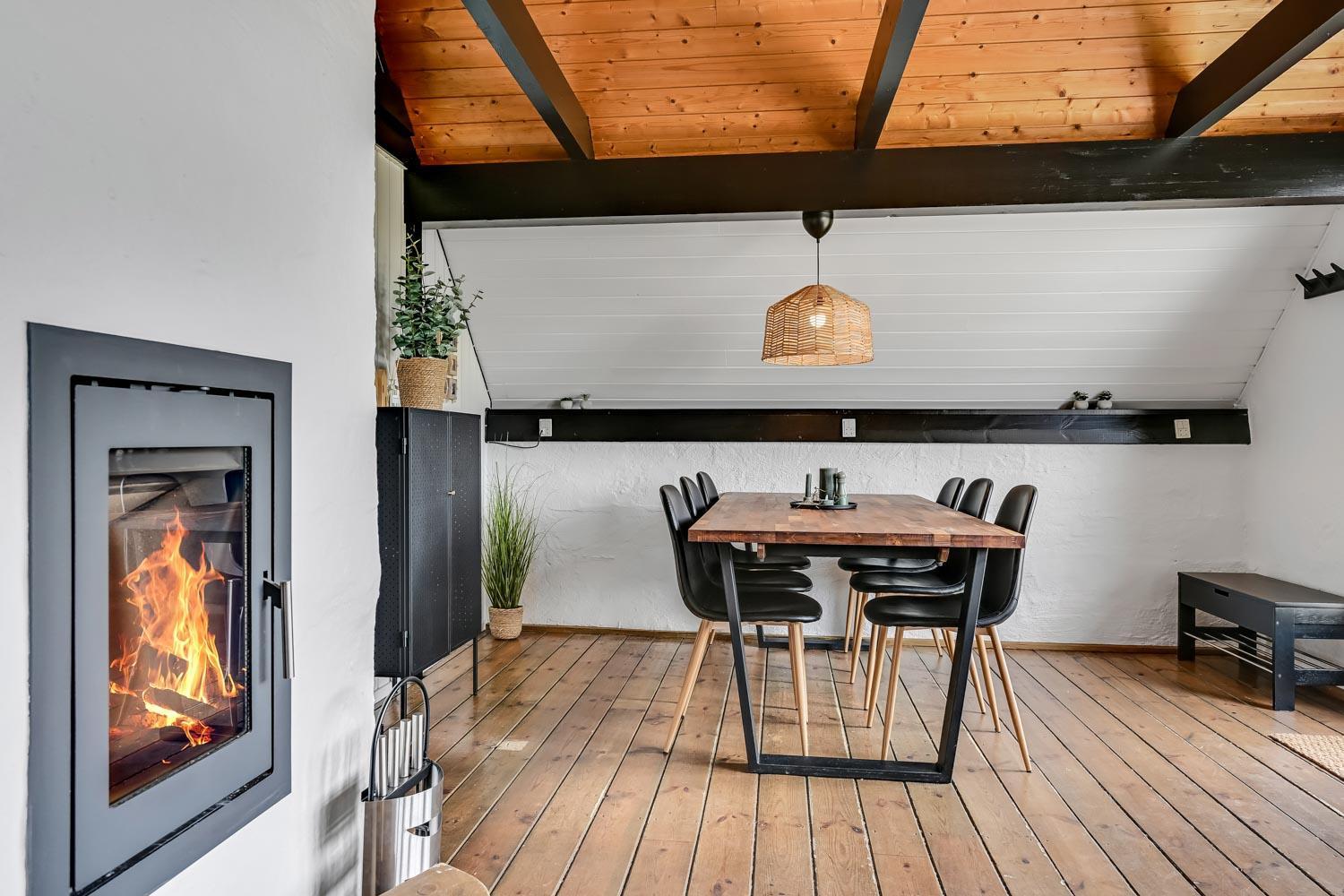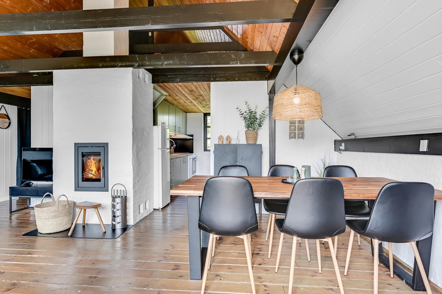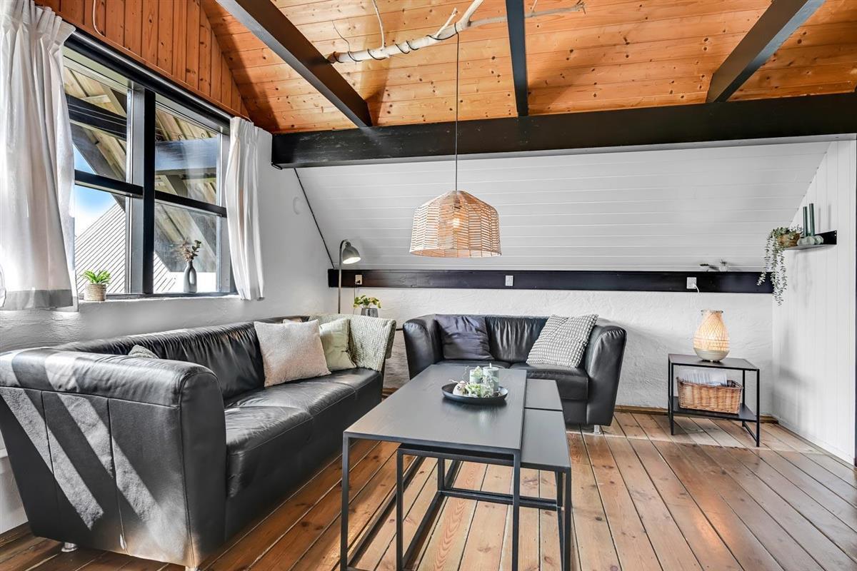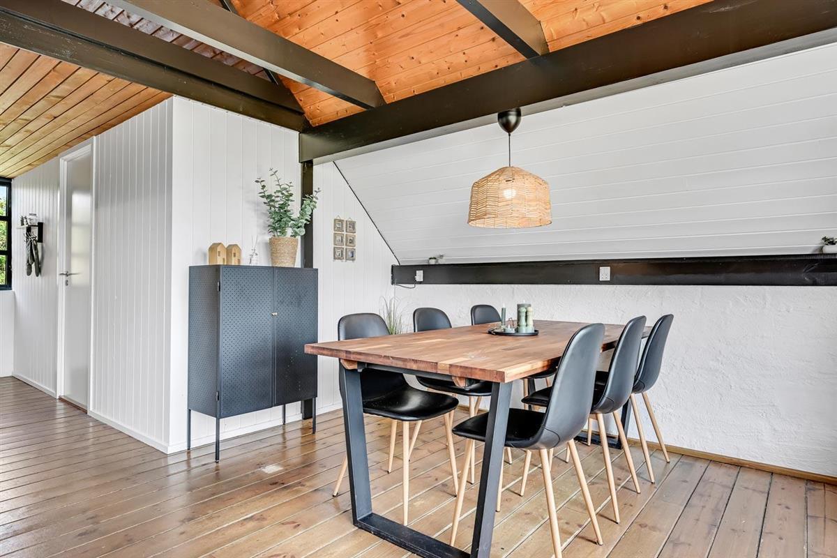 Vom Wohnraum ist ein Ausgang zur kleinen überdachten Terrasse mit Gartenmöbeln, 2 Sonnenliegen und einem Grill. Das Haus ist ein Teil von Fjaltring Ferieby , welches aus 25 ungefähr gleichen A-Häusern, die in 5 Zirkeln aufgeteilt sind. Die ganze Feriensiedlung liegt in einem schönen “Topf” im geschützen Dünenbereich, nur etwa 200 m von der Nordsee entfernt. Beim Gemeinschaftshaus ist Elektro-Auto-Auflader zur Verfügung. Geniessen Sie einen ökonomischen Urlaub in einem ganz einfachen Haus in einer einmaligen Lage. Parken Sie das Auto und Sie können den Urlaub geniessen. Den Strand erreichen Sie unter 5 Minuten zu Fuss. Erleben Sie die tosende Nordsee, die jeden Tag ganz neue Erlebnisse anbietet. Laufen Sie am Strand entlang , oder erkunden Sie die vielen anderen Möglichkeiten der Gegend.