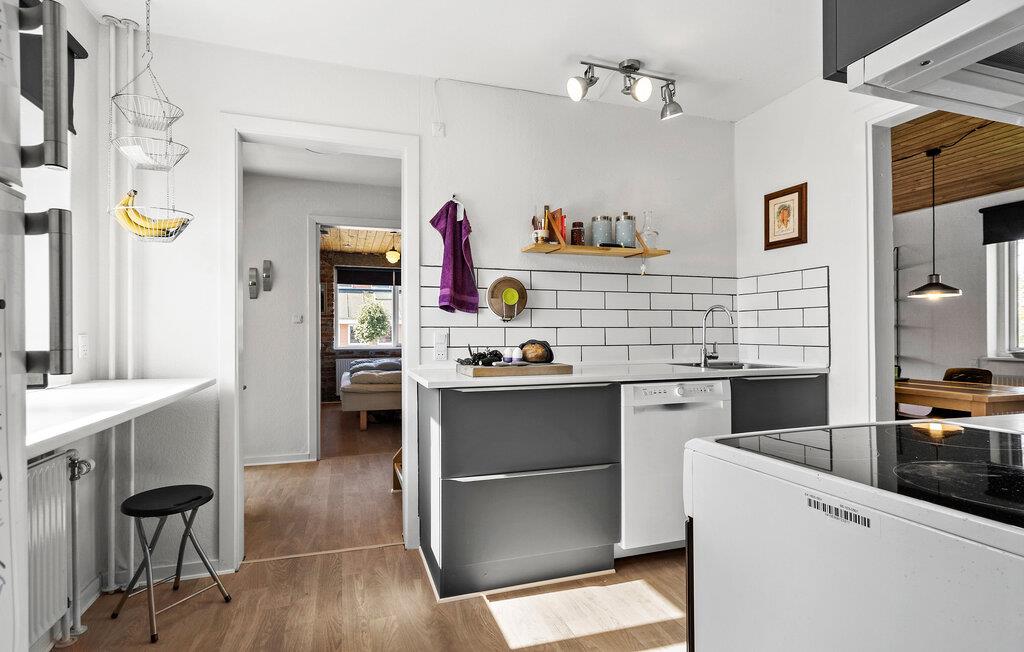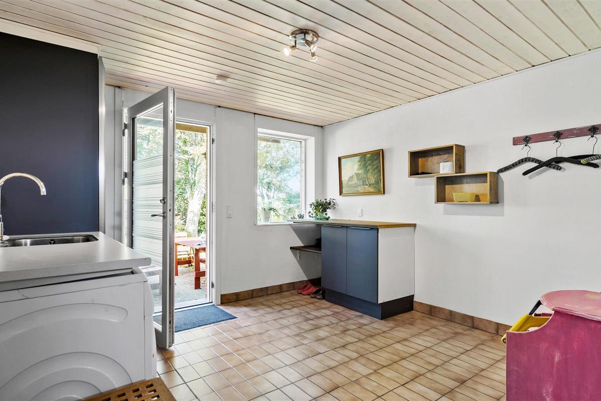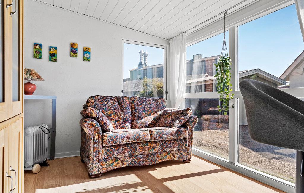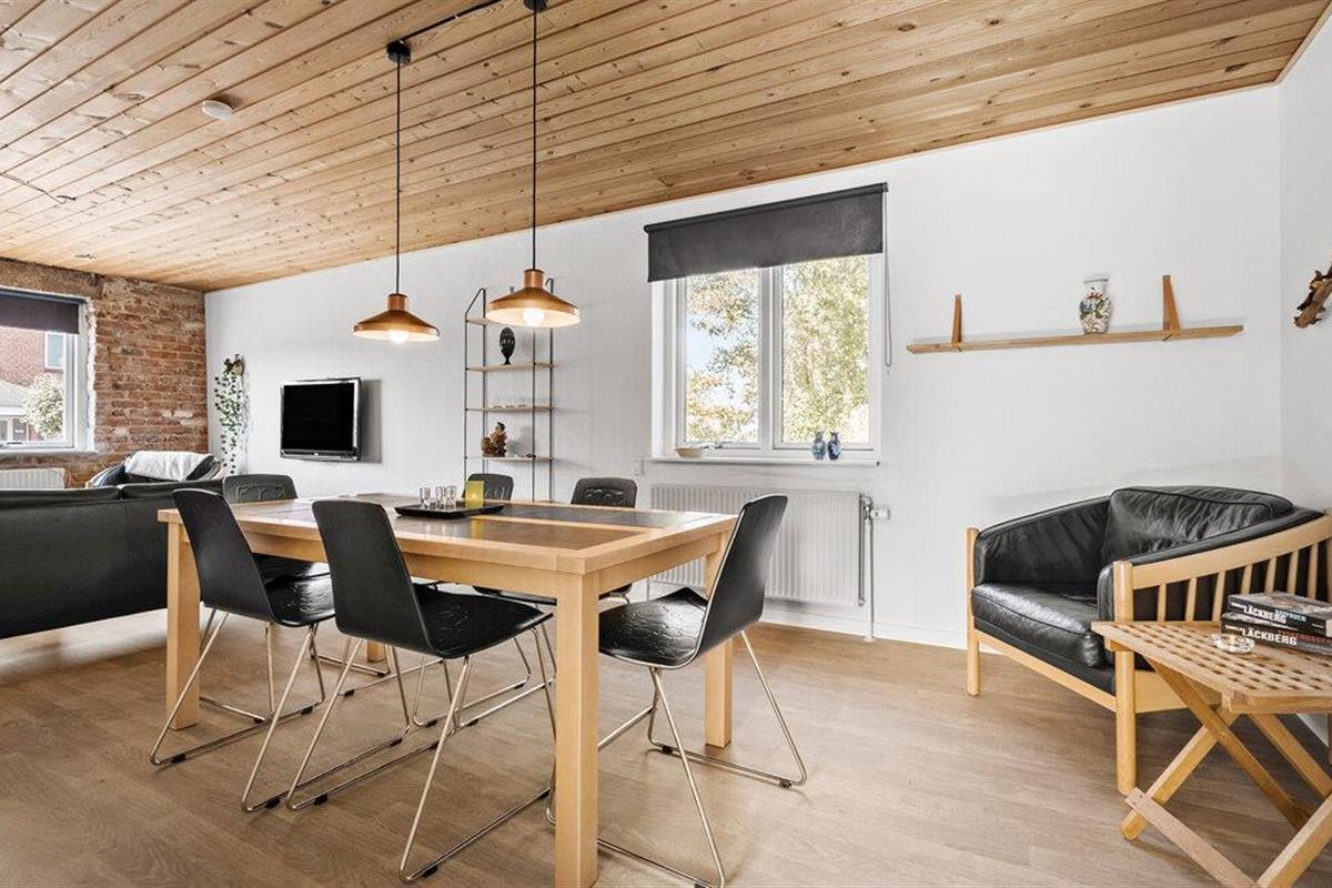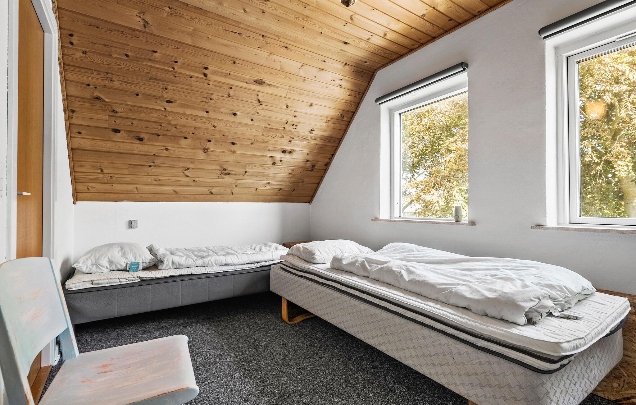 In je vakantiehuis in Bøvlingbjerg vind je een stijlvol ingerichte woonkamer met een comfortabele bank en een rustiek houten ontwerp en bakstenen elementen die een echte feel-good sfeer creëren. Gebruik de gezellige ruimte om een goed boek te lezen of leuke bordspellen te spelen. In de moderne eethoek kun je samen eten. Voor entertainment is er een aparte ruimte met een dartbord en een kleine bar waar je 's avonds een toernooitje kunt spelen.
