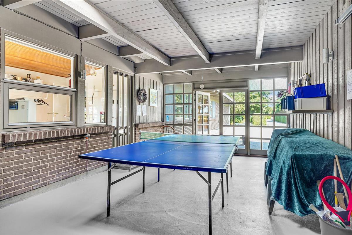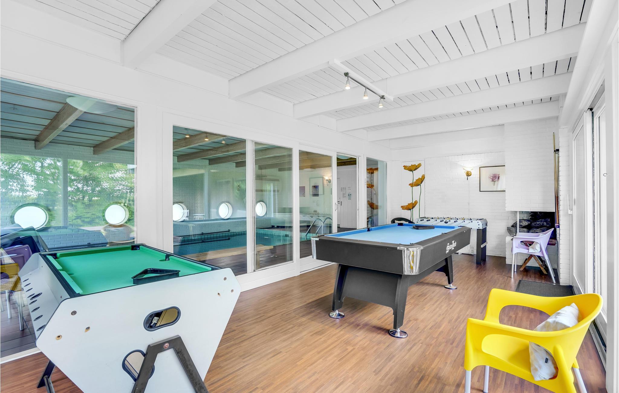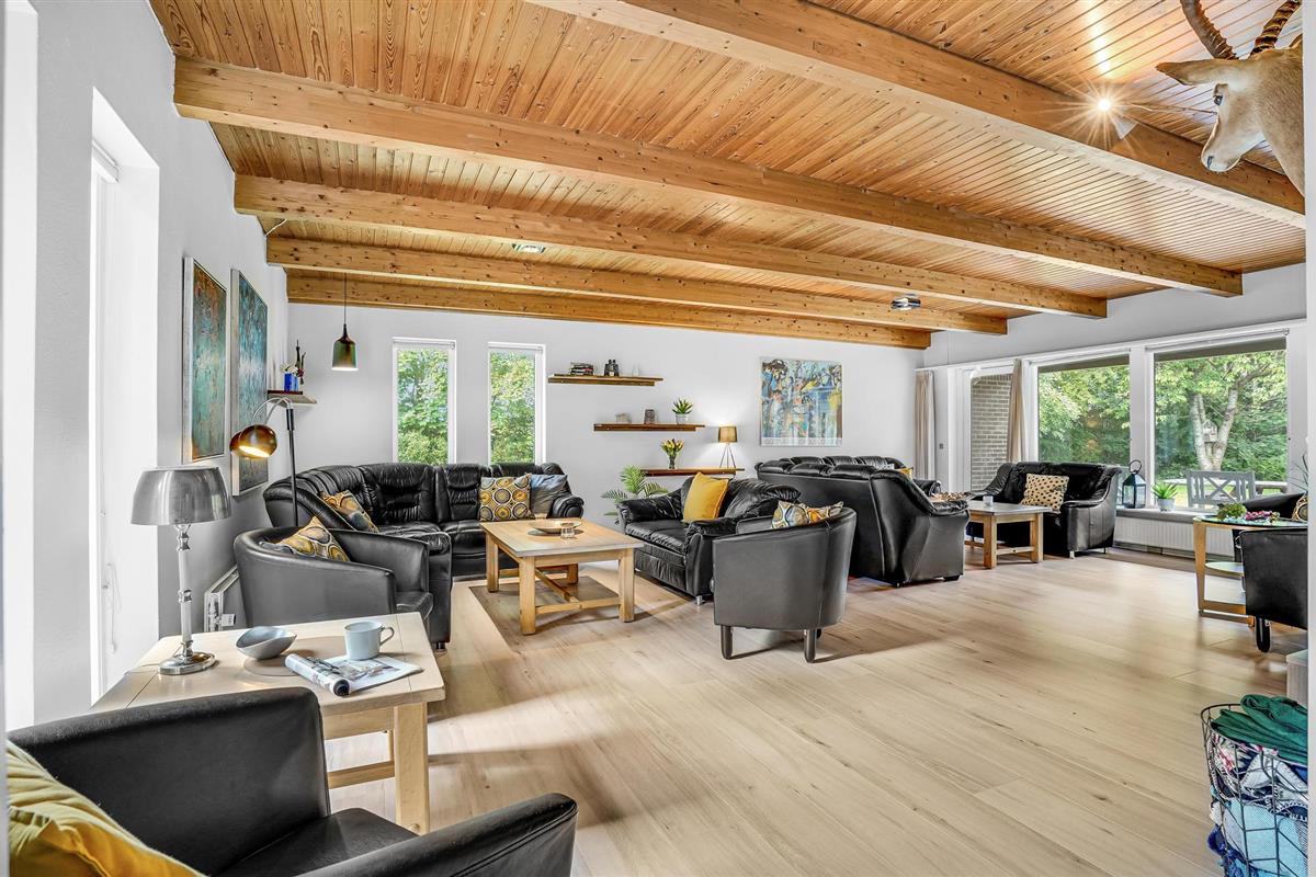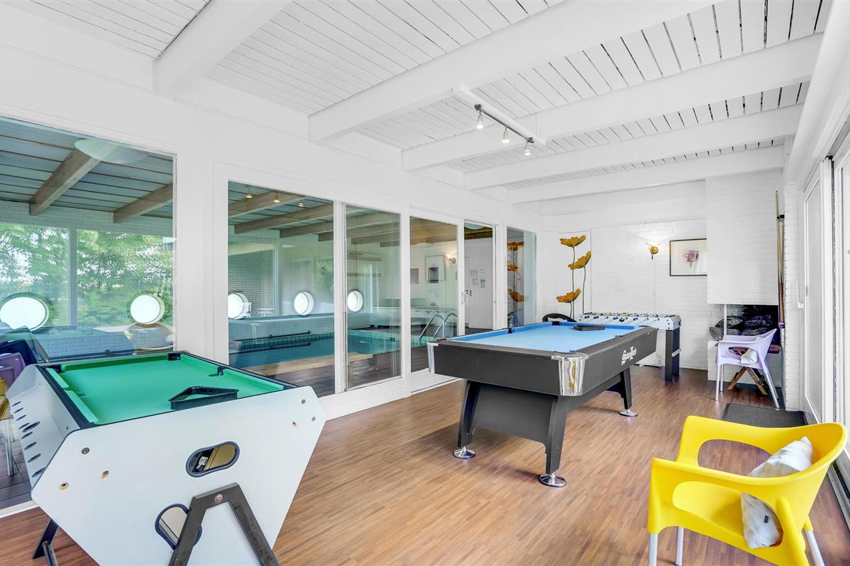 Op de begane grond is de ruime keuken, die ideaal is uitgerust om voor veel mensen te koken: Er zijn twee fornuizen met in totaal acht kookplaten, twee ovens, een koelkast met rand en nog veel meer. Ook op de begane grond zijn de twee smaakvol ingerichte woonkamers met flatscreentelevisie met Chromecast. Neem je eigen iPad of computer mee. In de serre met glazen pui naar de biljartkamer vind je een pooltafel en tafelvoetbal.