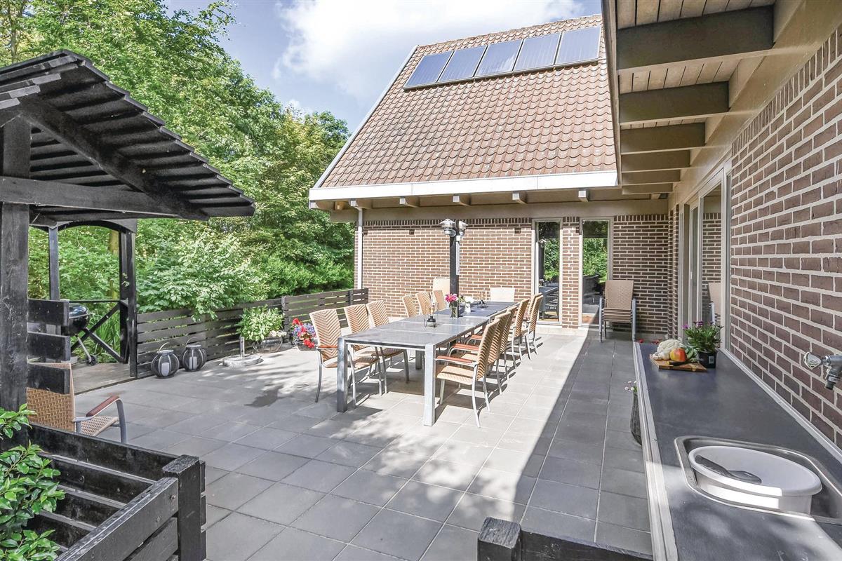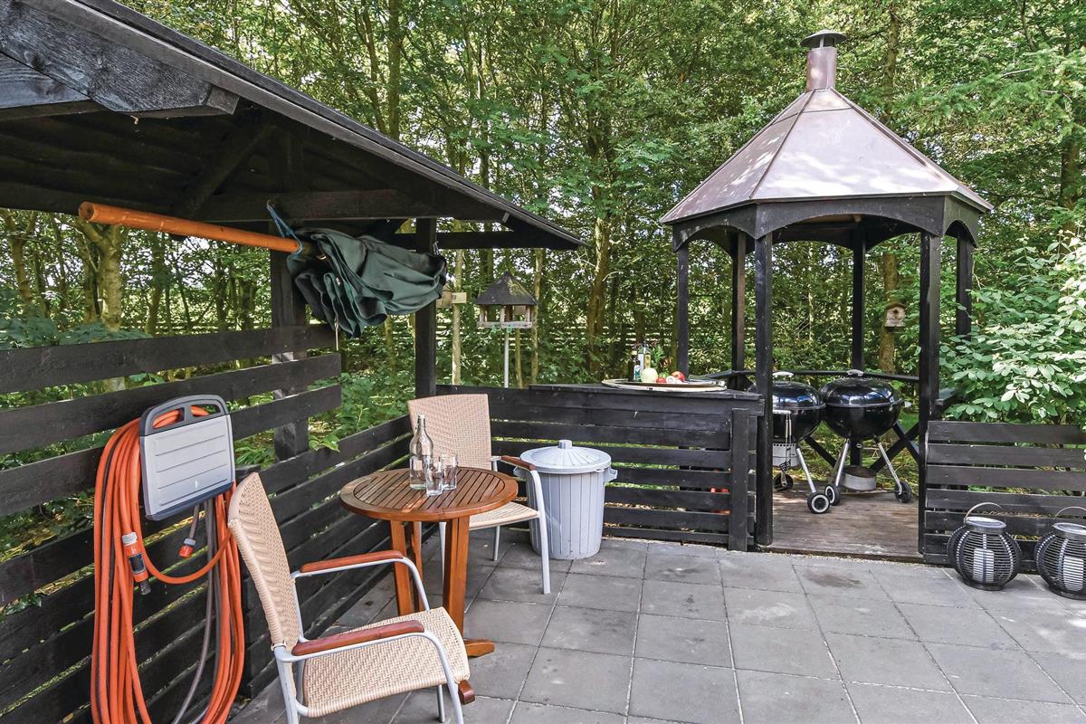Buiten zijn er drie mooie terrassen, een met een overdekte barbecueplaats, middagzon en een buitenkeuken, een ander met ochtendzon en uitzicht op de tuin en de speeltoestellen voor de kinderen.